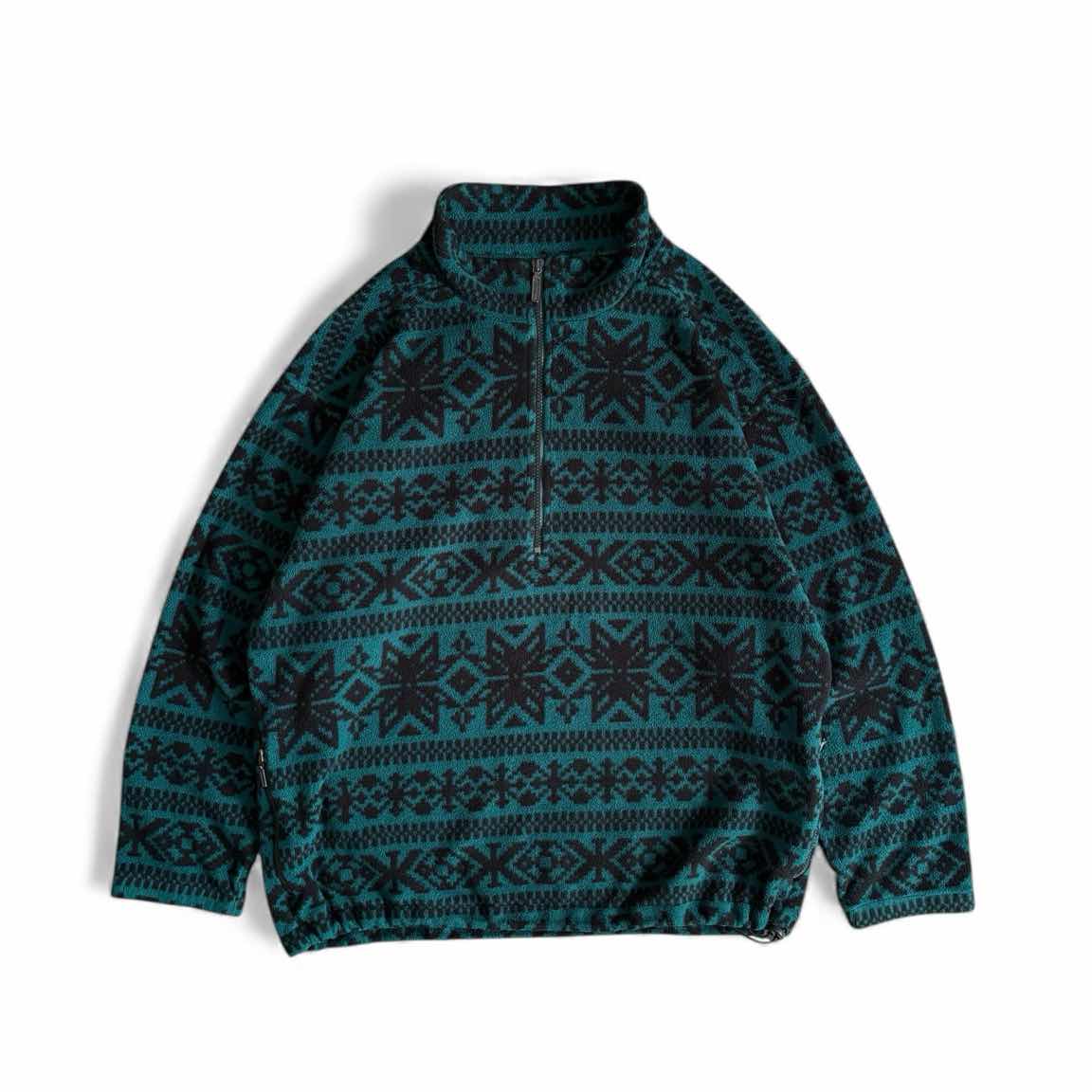 ○商品説明 90s Eddie Bauer ブラックとダークグリーンのツートンで構成された ノルディック柄、幾何学模様の一枚。 フロントの両サイドにはポケットが付いております。 ドローコードも付いておりますので絞って お好みのシルエットで着用していただけます。 是非。 ○サイズ 表記M(L相当) 平置き ・肩幅53cm ・身幅60cm ・袖丈56cm ・着丈68cm ○商品の状態 B A:使用感がほとんどなく、汚れやシミもなし B:多少使用感はあるが、汚れやシミも少ない C:使用感があり、汚れやシミがある D:使用感があり、大きな汚れや破れあり ○色 ブラック ダークグリーン #90s#EddieBauer#エディバウワー #ノルディック柄#ハーフジップ#フリースジャケット