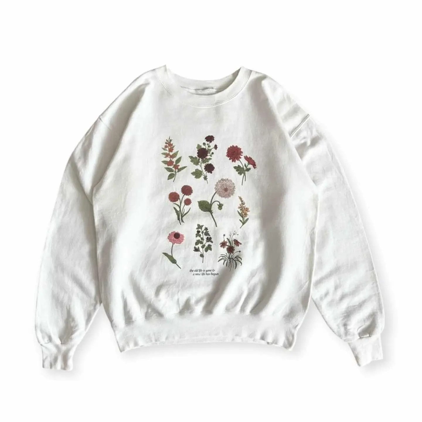 ○商品説明 FLOWER 可愛らしい一枚。 9種類の花が染み込みプリントでデザイン されています。 the old life is gone & a new life has begun 古い生活は過ぎ去り、新しい生活が始まった 気になった方は是非。 ○サイズ 表記M相当 平置き ・肩幅53cm ・身幅54cm ・袖丈59cm ・着丈59cm ○商品の状態 B A:使用感がほとんどなく、汚れやシミもなし B:多少使用感はあるが、汚れやシミも少ない C:使用感があり、汚れやシミがある D:使用感があり、大きな汚れや破れあり ○色 ホワイト #Flower#フラワー#スウェット
