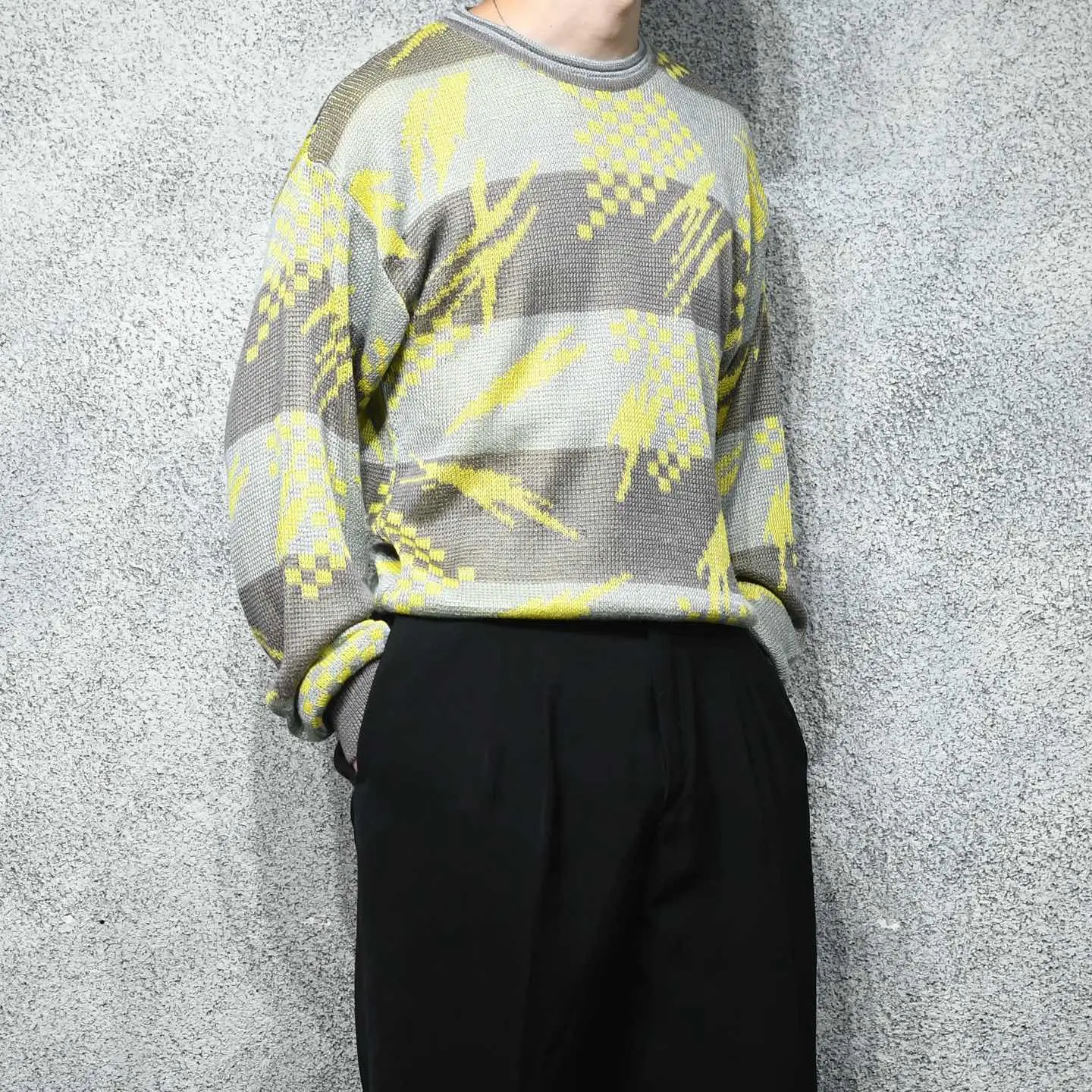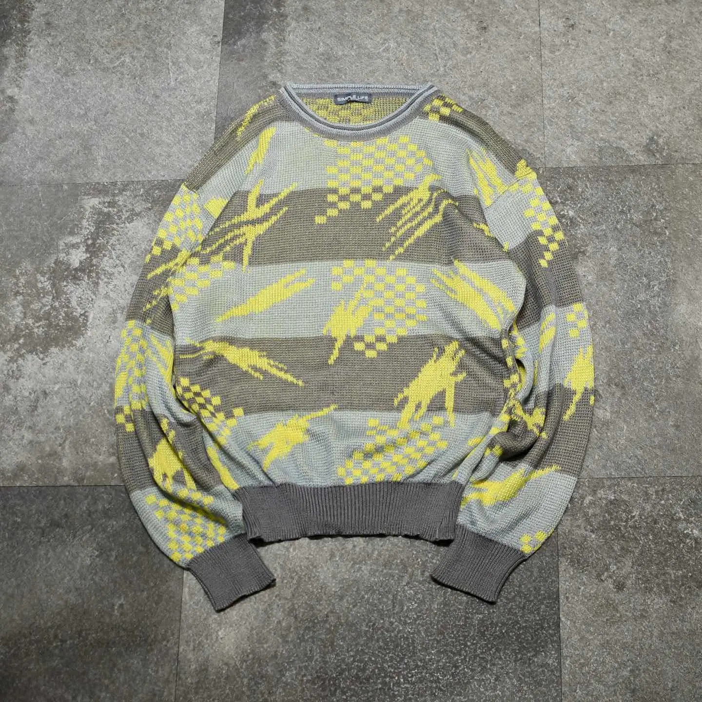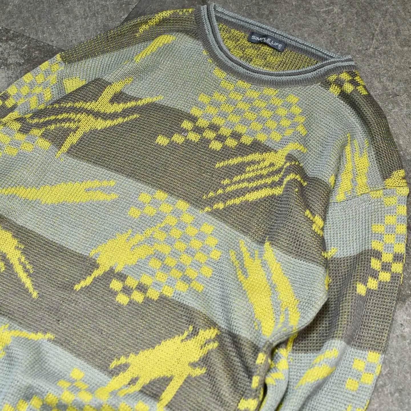 SIZE:- 着丈71cm 肩幅58cm 身幅60cm 袖丈69cm fabric/質感よりacrylic 着用画像 177cm/64kg 初見な柄、そして色使いまで独特で。 それでいて角の無い印象を感じたニットです。 厚みの無いニット生地で、インナーとして アウターの中に仕込んでも着膨れする事なく、 そして裾のリブがしっかりしているからこそ、 丸みのあるシルエットで着れるアイテムです。 馴染みのある色使いをしたアイテムの方が 安心ですが、個人的にはこんな個性ある 色使いに惹かれますし、進んで取り入れたいなと。 ※撮影状況により、実物と多少色が異なる場合が ございます。 ※古着を取り扱っているため、気づかない汚れや ほつれ等がある場合がございます。 予めご了承ください。 ※サイズは着用感で選んでおり、 表記サイズではございません。 表記サイズは説明欄の最初に記載しております。 old vintage ヴィンテージ used 80's 90's アメリカ古着 ユーロ古着 POLO RALPH LAUREN Eddie Bauer OLD GAP LANDS' END ランズエンド LLBean エルエルビーン オールドギャップ エディーバウアー ラルフローレン ブルックスブラザーズ Brooks Brothers グレー 灰色 イエロー 黄色 などがお好きな方 #vintage #オーバーサイズ #old #used #90s #80s #古着 #ヴィンテージ #アメリカ古着 #ユーロ古着 #LLBean #エルエルビーン #EddieBauer #エディーバウアー #oldgap #オールドギャップ #LANDSEND #ランズエンド #NAUTICA #ノーティカ #ラルフローレン #POLORALPHLAUREN #ブルックスブラザーズ #BrooksBrothers #デザインニット #ニット #セーター #アクリルニット