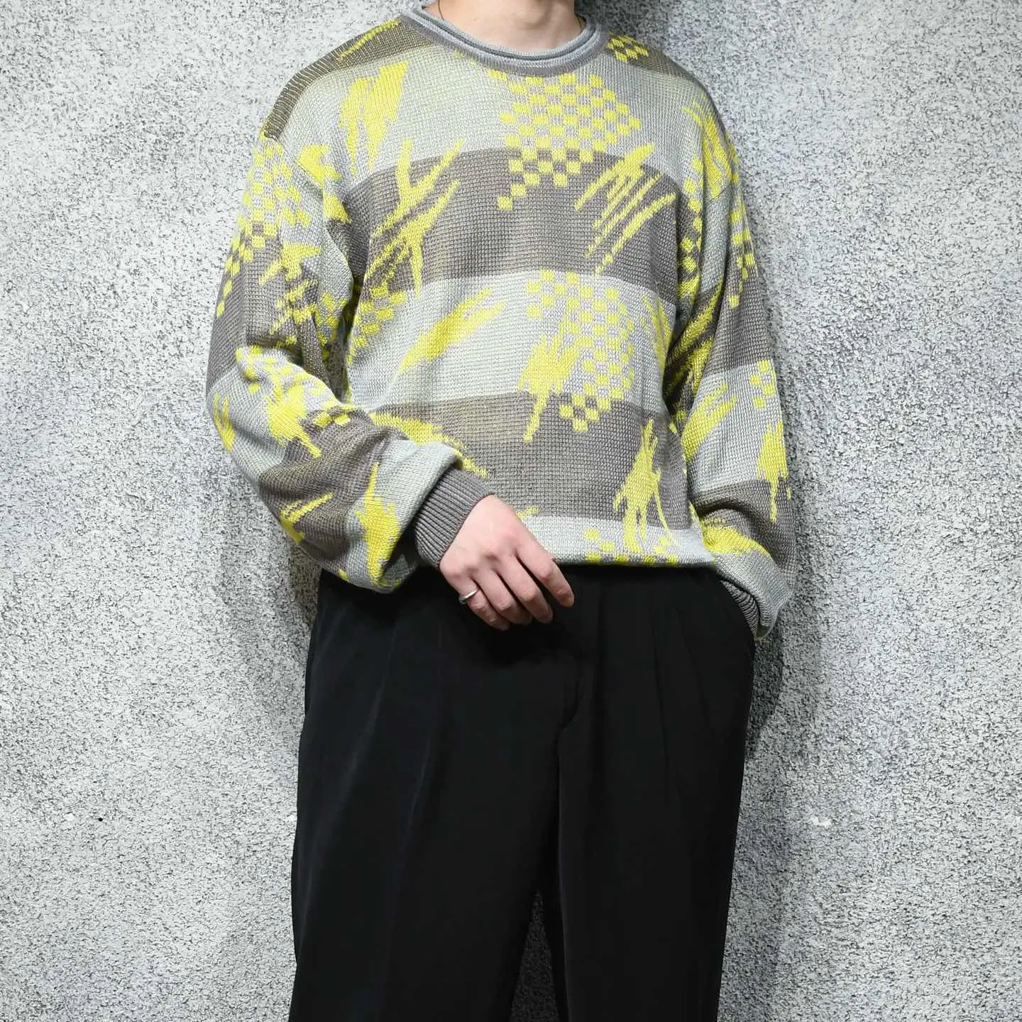 古着 ローゲージ デザインニット ニット セーター ウールニット ボーダー