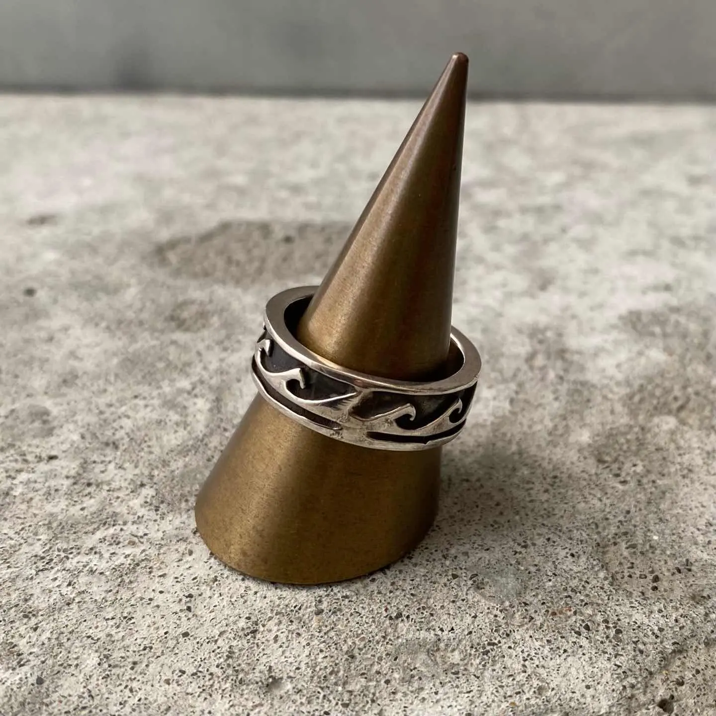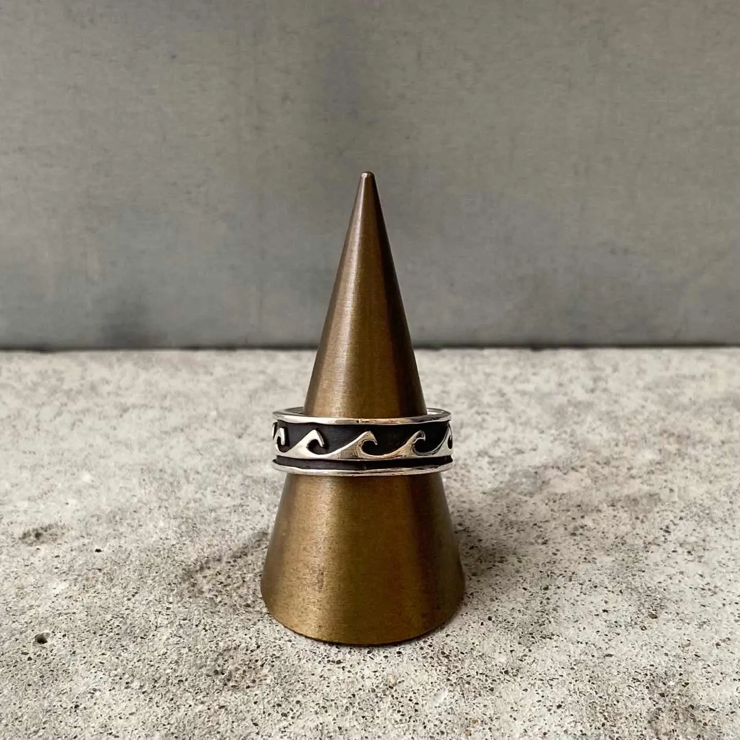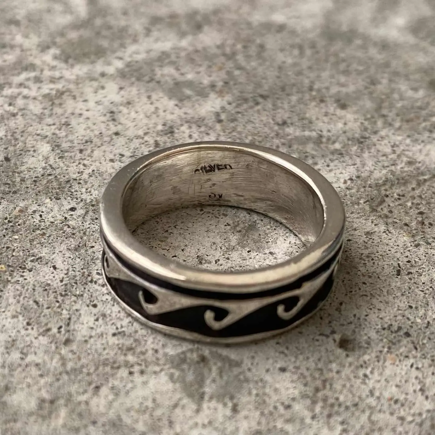 ナバホスタイルのUSAヴィンテージリング。オーバーレイにより表現された波の模様が魅力的です。波は、「生命のサイクルと再生」を意味し自然の周期性を表現しています。スタイリングに取り入れやすい幅感もポイント。シルバー925製ですのでお手入れをすることで長くお使い頂けます。 □Materials シルバー925 (SILVER/925刻印入り) □Size 13号 幅 約7㎜ 6g □Condition【S】 デッドストック(未使用品)です。元々の作りですが、SILVER刻印にカスレや内側に小傷がみられます。中古品であることをご理解のうえお買い求めください。ご購入前にショッピングガイドをご確認お願い致します。 【S】未使用 【A】未使用に近い 【B】やや使用感あり 【C】使用感あり Item No.3528