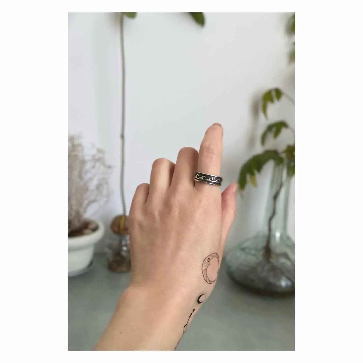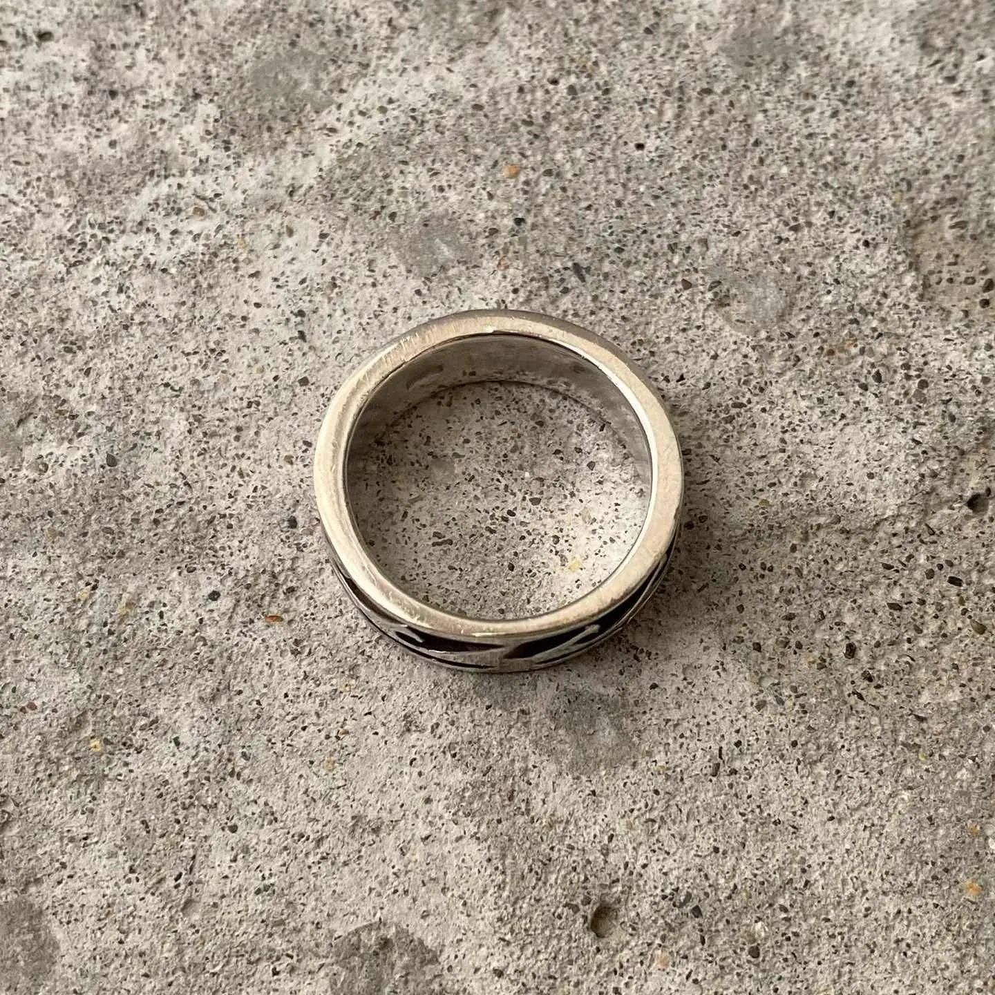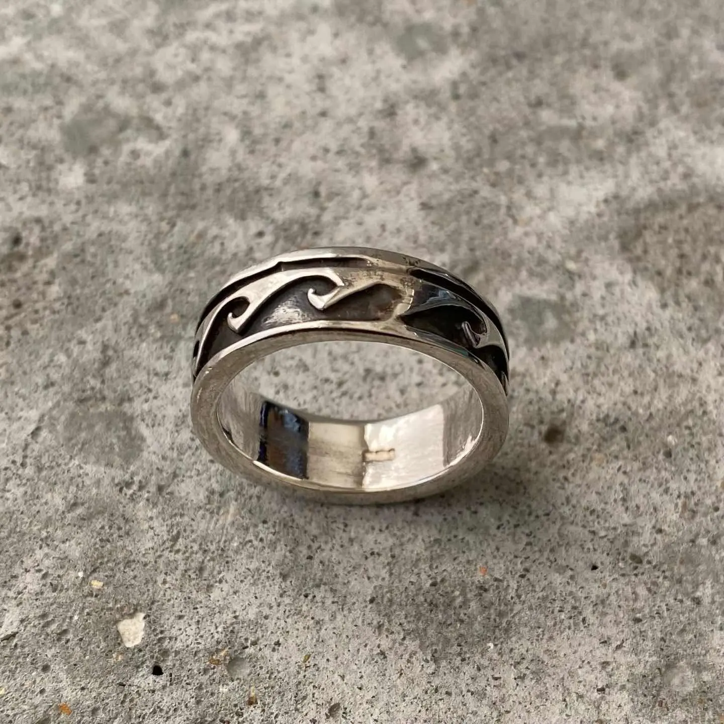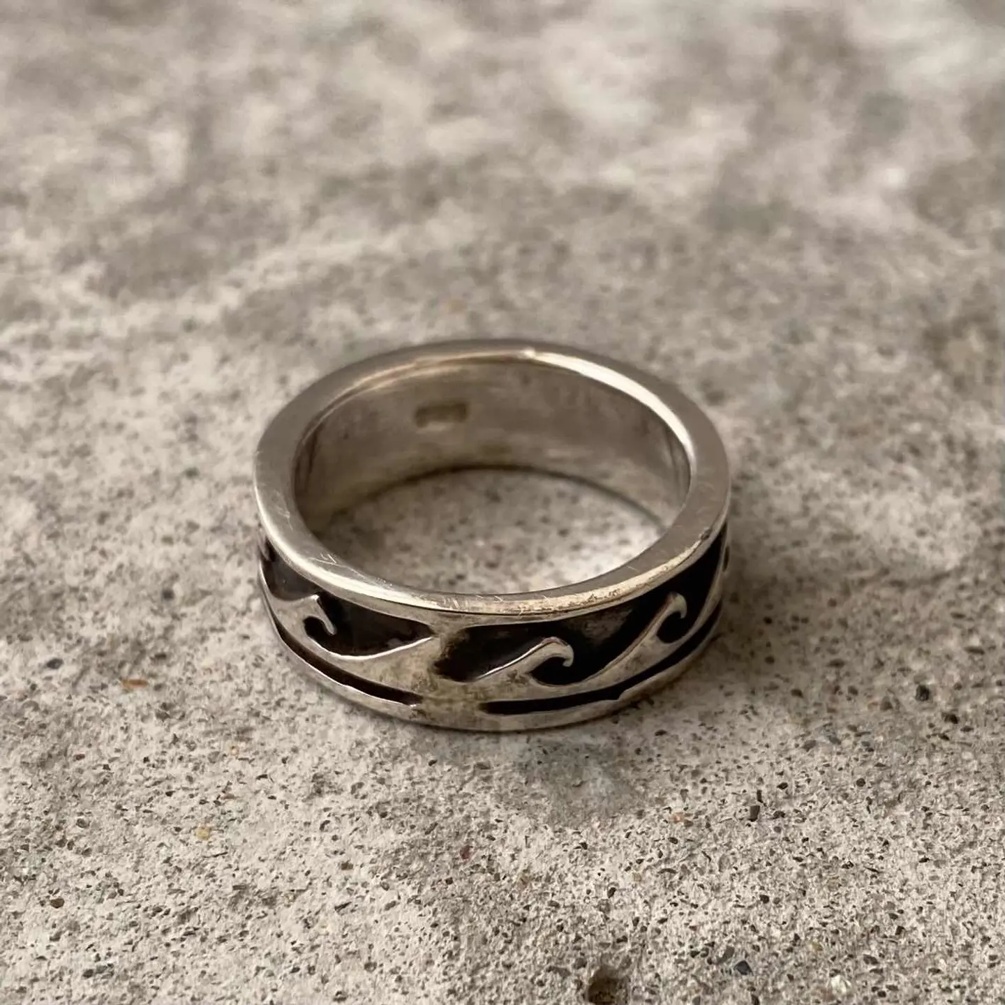 ナバホスタイルのUSAヴィンテージリング。オーバーレイにより表現された波の模様が魅力的です。波は、「生命のサイクルと再生」を意味し自然の周期性を表現しています。スタイリングに取り入れやすい幅感もポイント。シルバー925製ですのでお手入れをすることで長くお使い頂けます。 □Materials シルバー925 (SILVER/925刻印入り) □Size 13号 幅 約7㎜ 6g □Condition【S】 デッドストック(未使用品)です。元々の作りですが、SILVER刻印にカスレや内側に小傷がみられます。中古品であることをご理解のうえお買い求めください。ご購入前にショッピングガイドをご確認お願い致します。 【S】未使用 【A】未使用に近い 【B】やや使用感あり 【C】使用感あり Item No.3528