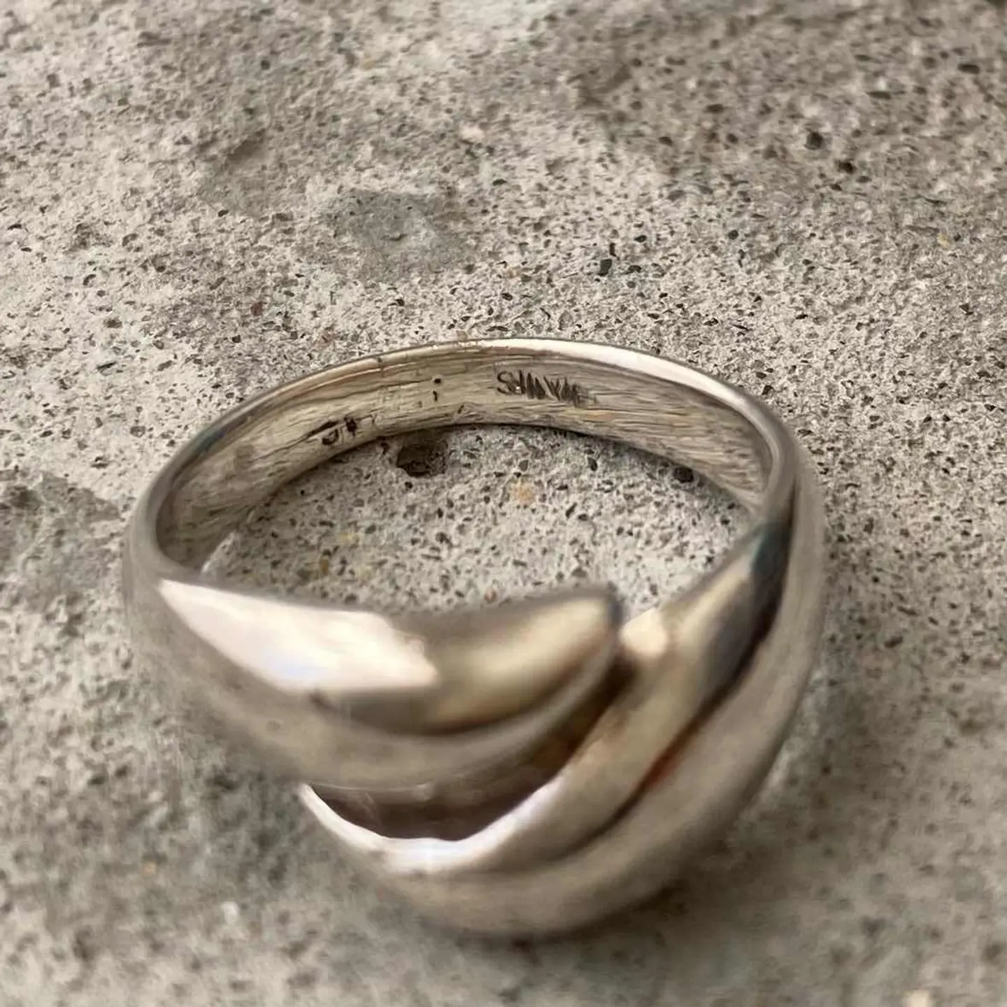 レトロな雰囲気のUSAヴィンテージリング。指を包み込むような柔らかなカーブが魅力的なデザイン。身につけやすい幅感で、シルバー925製ですのでお手入れをすることで長くお使い頂けます。 □Materials シルバー925 (925刻印入り) □Size 13号 幅 約3〜10㎜ 5g □Condition【S】 デッドストック(未使用品)です。元々の作りですが、内側に細かな傷やSILVER刻印にカスレがみられます。画像をご確認ください。中古品であることをご理解のうえお買い求めください。ご購入前にショッピングガイドをご確認お願い致します。 【S】未使用 【A】未使用に近い 【B】やや使用感あり 【C】使用感あり Item No.3527