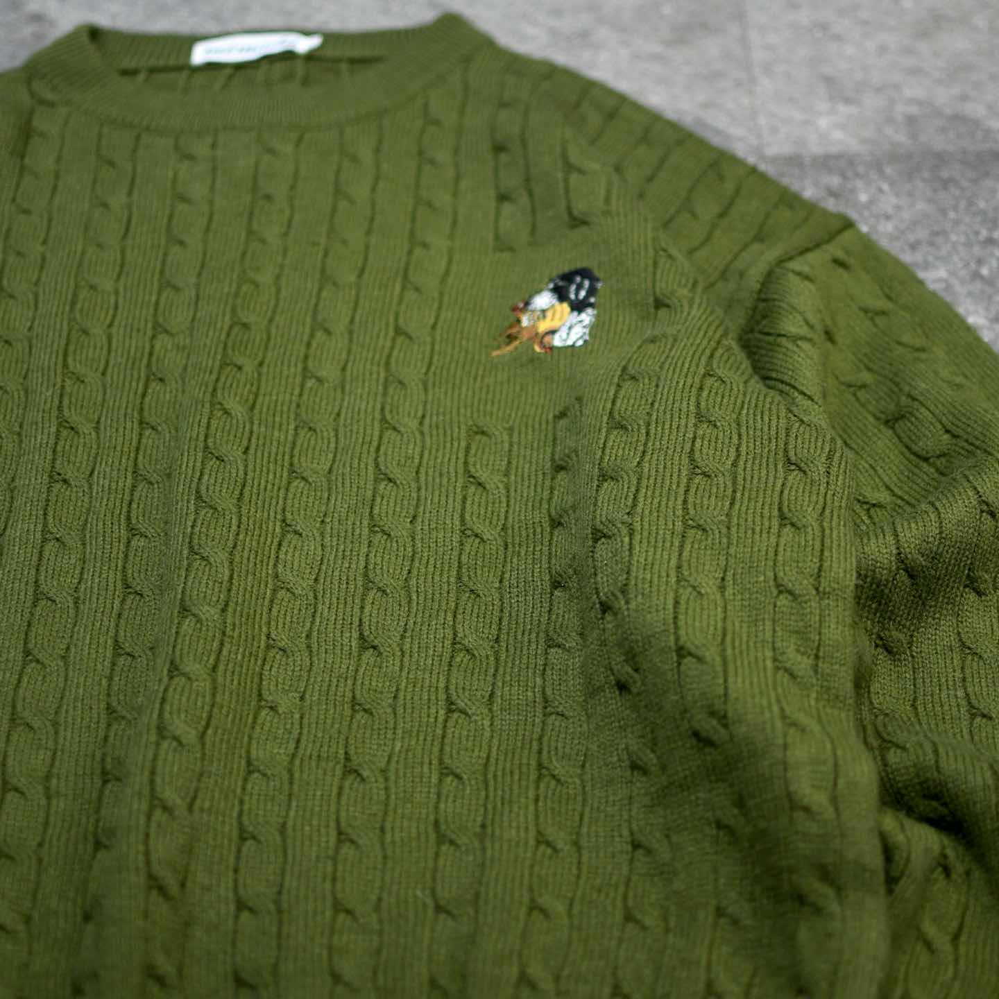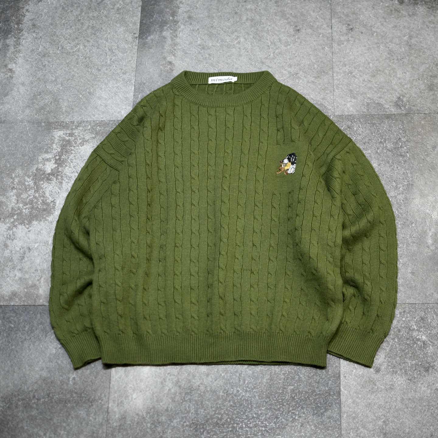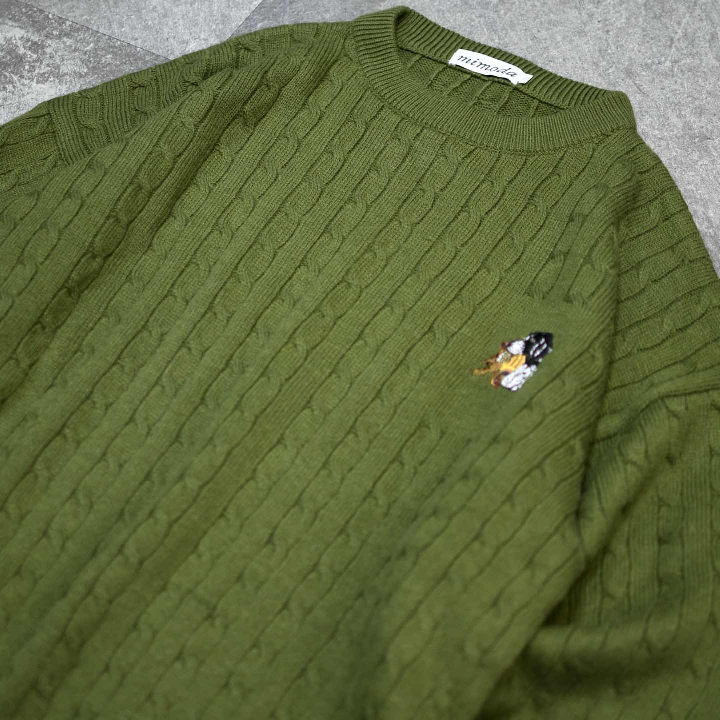 古着 ワンポイント アニマル 刺繍 デザインニット ニット セーター グリーン