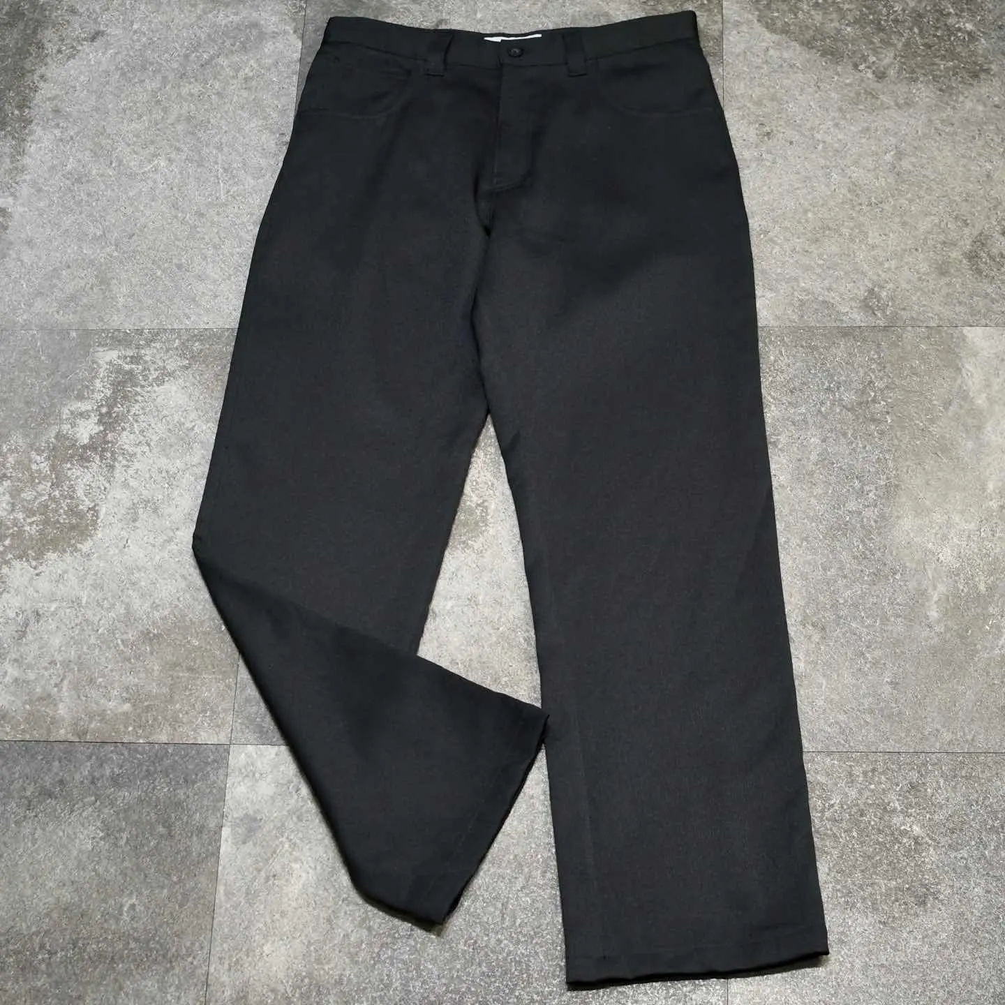SIZE:32x32 ウエスト82cm 総丈104cm 股下79cm わたり34cm 裾幅24cm fabric/poly 着用画像 177cm/64kg オランダ発のブランドC&Aのラインのひとつ、 "clock house"から。 "スラックスだと雑に履けないし、 チノやデニムじゃカジュアル過ぎる" こちらはそんな贅沢な悩みを解決してくれる 1本ではないでしょうか。 シワになりにくいポリエステル生地と、 裾まですとんと落ちるストレートなシルエットで 様々なトップスと合わせられて、 尚且つ雑にも履けるパンツです。 カーキやベージュ、ブルーなどカジュアルな パンツで見掛ける頻度の高いカラーでは 困りませんが、何気に"黒で雑に履けるパンツ"って 数少ない気がします。 チープな印象を持たれやすいポリ生地ですが、 タフさやシワのなりにくさから、個人的には 好きな生地のひとつ。 改めて、そんなパンツを手元に置きたいなと 感じさせてくれた逸品です。 ※裾上げ等のレングス直しにつきましては、 購入前に、必ずご連絡お願い致します。 ※撮影状況により、実物と多少色が異なる 場合がございます。 ※サイズは着用感で選んでおり、 表記サイズは説明欄の最初に記載しております。 vintage ヴィンテージ used 80's 90's POLO RALPH LAUREN Eddie Bauer OLD GAP LANDS' END ランズエンド LLBean エルエルビーン オールドギャップ エディーバウアー ラルフローレン ブルックスブラザーズ Brooks Brothers などがお好きな方 #vintage #old #used #90s #80s #古着 #ヴィンテージ #LLBean #EddieBauer #oldgap #LANDSEND #ラルフローレン #POLORALPHLAUREN #ブルックスブラザーズ #BrooksBrothers