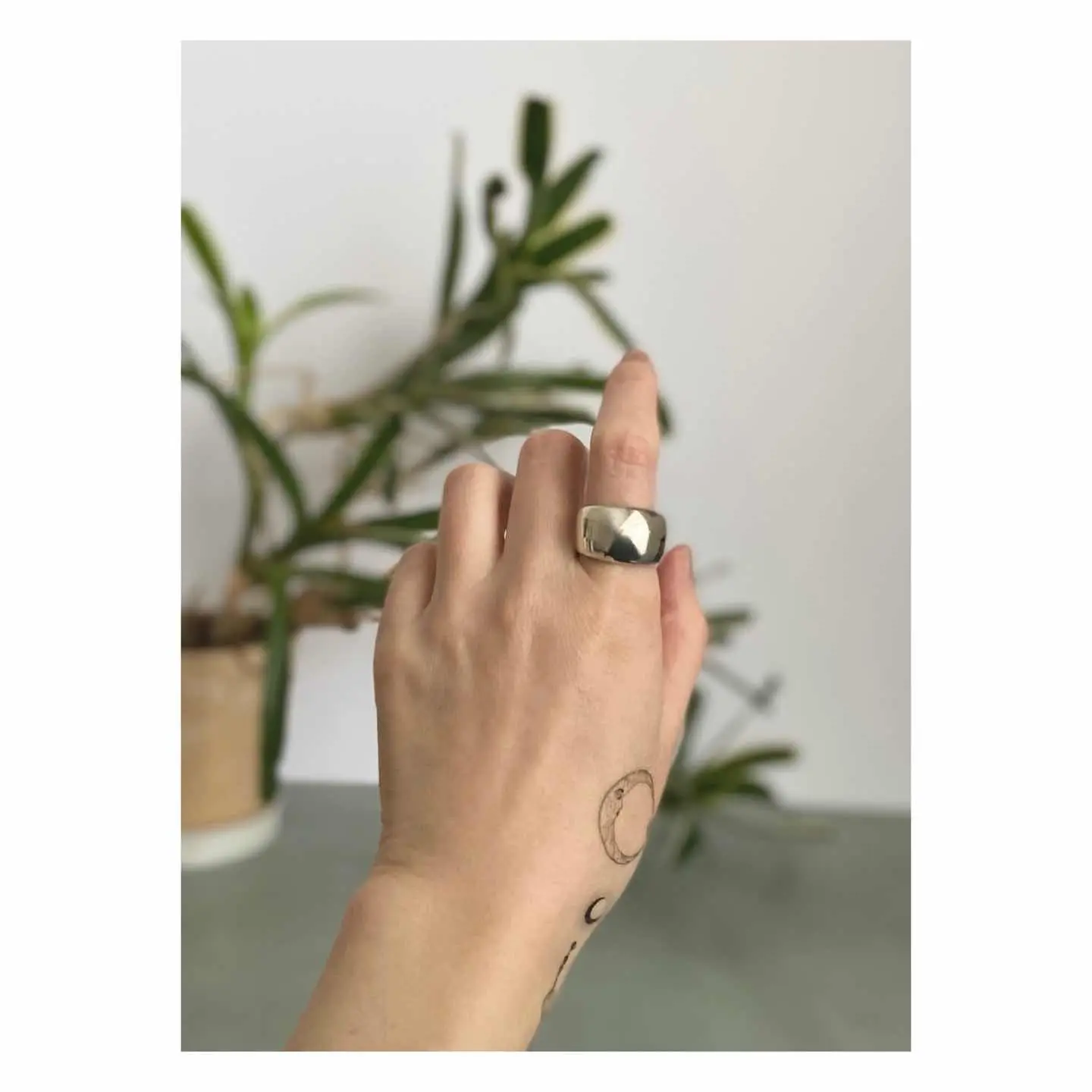 レトロな雰囲気のUSAヴィンテージリング。ぷっくりとしたフォルムが印象的なデザイン。指に馴染む軽やかな着け心地もポイント。シンプルながら存在感があり、シルバー925製ですのでお手入れをすることで長くお使い頂けます。 □Materials シルバー925 (925刻印入り) □Size 12.5号 幅 約7〜12㎜ 4g □Condition【S】 デッドストック(未使用品)です。元々の作りですが、細かな傷や凹み、刻印部分にカスレがみられます。画像をご確認ください。中古品であることをご理解のうえお買い求めください。ご購入前にショッピングガイドをご確認お願い致します。 【S】未使用 【A】未使用に近い 【B】やや使用感あり 【C】使用感あり Item No.3541