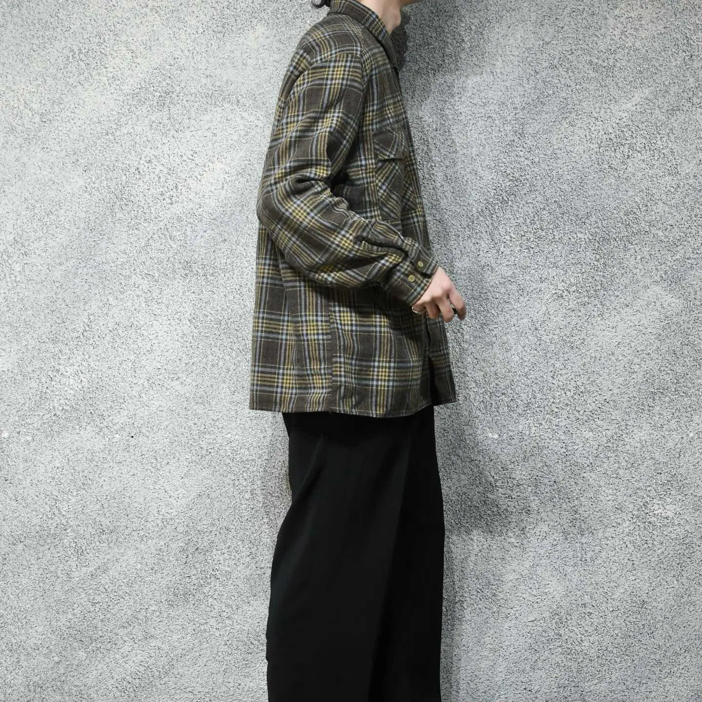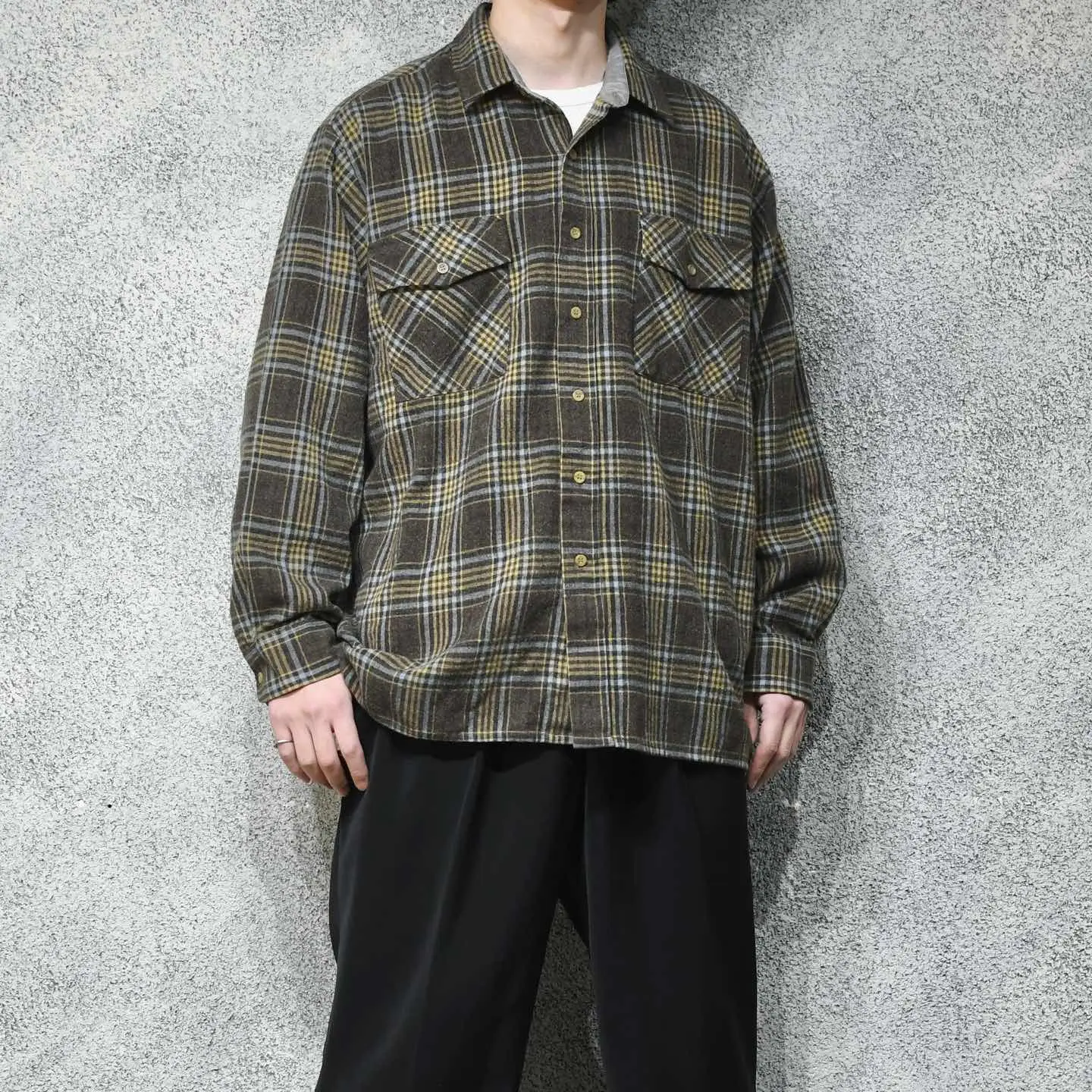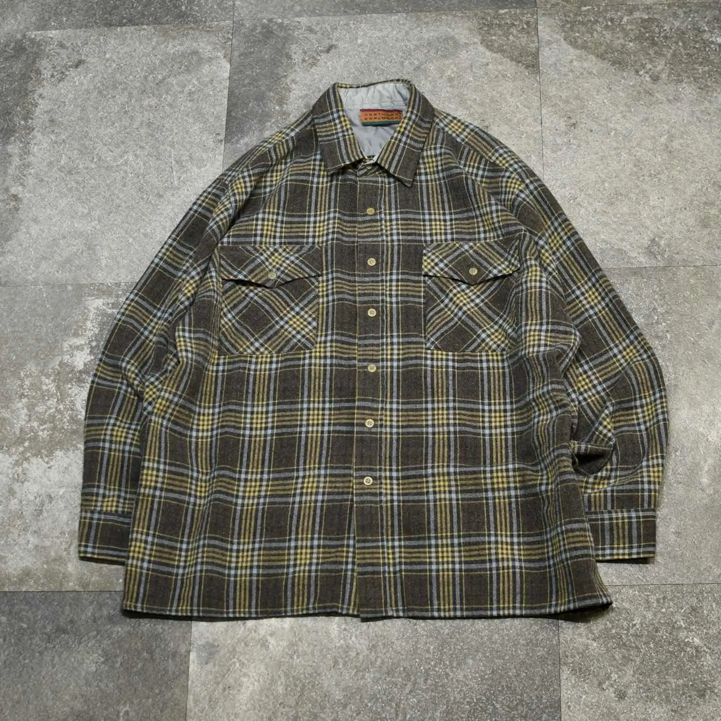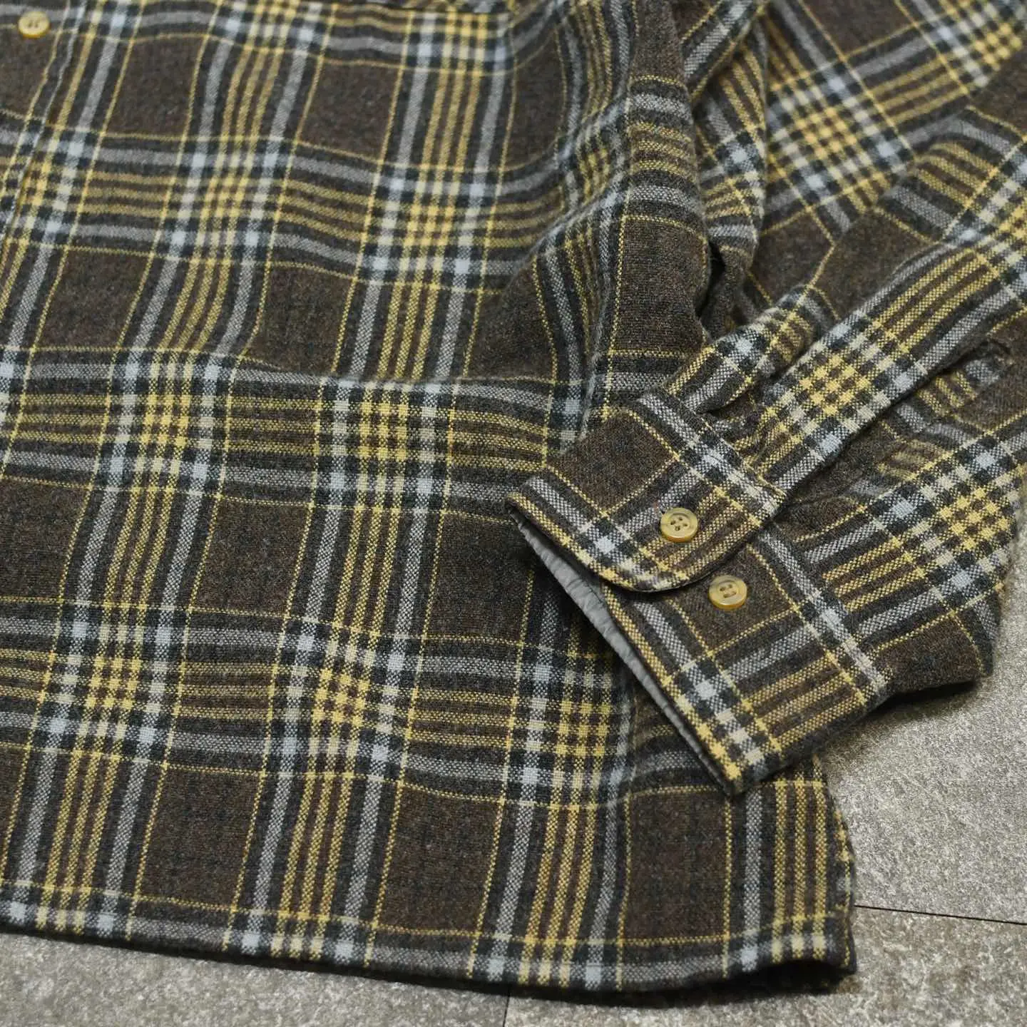 SIZE:- 着丈77cm 肩幅54cm 身幅70cm 袖丈61cm fabric/質感よりacrylic 着用画像 177cm/64kg ブラウン、ベージュそしてブラック。 アースカラーをベースとした色使いに入る ライトブルー色のライン。 ありそうでない色使いと、汎用性、 この2つを同時に持ち合わせる個体って そうそう無い気がしますし、 そのバランスが絶妙で惹かれたチェックシャツ。 ゆったりとしたサイジングから、 いくつかボタンを開けて着崩しても、 羽織っても様になる逸品です。 ふわっとしたアクリル生地、 首周りは裏地が付き、チクチクしないのが嬉しい... ※撮影状況により、実物と多少色が異なる場合が ございます。 ※古着を取り扱っているため、気づかない汚れや ほつれ等がある場合がございます。 予めご了承ください。 ※サイズは着用感で選んでおり、 表記サイズではございません。 表記サイズは説明欄の最初に記載しております。 オーバーサイズ old vintage ヴィンテージ used 80's 90's POLO RALPH LAUREN Eddie Bauer OLD GAP LANDS' END ランズエンド LLBean エルエルビーン オールドギャップ エディーバウアー ラルフローレン ブルックスブラザーズ Brooks Brothers ネルシャツ フランネルシャツ などがお好きな方 #vintage #old #used #90s #80s #古着 #ヴィンテージ #LLBean #エルエルビーン #EddieBauer #エディーバウアー #oldgap #オールドギャップ #LANDSEND #ランズエンド #NAUTICA #ノーティカ #ラルフローレン #POLORALPHLAUREN #ブルックスブラザーズ #BrooksBrothers #チェックシャツ #長袖シャツ #シャツ #ネルシャツ #フランネルシャツ