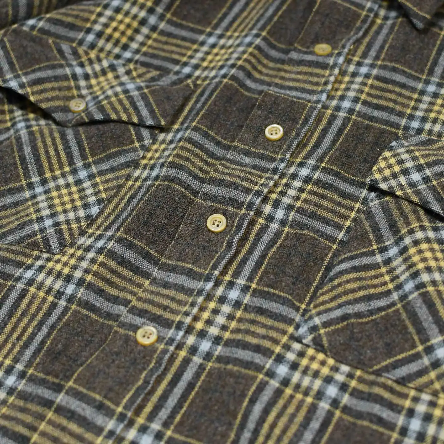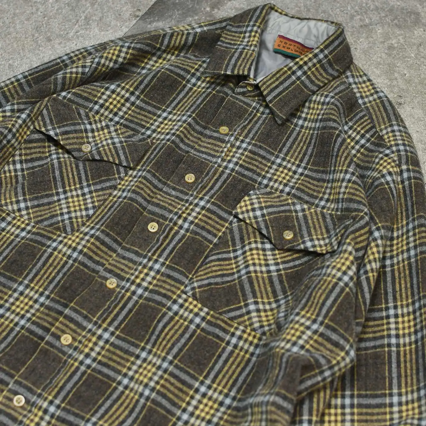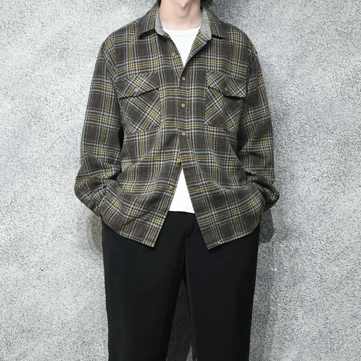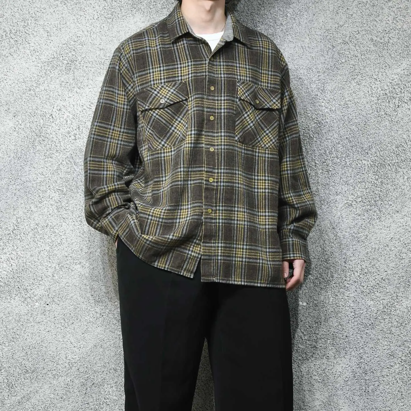SIZE:- 着丈77cm 肩幅54cm 身幅70cm 袖丈61cm fabric/質感よりacrylic 着用画像 177cm/64kg ブラウン、ベージュそしてブラック。 アースカラーをベースとした色使いに入る ライトブルー色のライン。 ありそうでない色使いと、汎用性、 この2つを同時に持ち合わせる個体って そうそう無い気がしますし、 そのバランスが絶妙で惹かれたチェックシャツ。 ゆったりとしたサイジングから、 いくつかボタンを開けて着崩しても、 羽織っても様になる逸品です。 ふわっとしたアクリル生地、 首周りは裏地が付き、チクチクしないのが嬉しい... ※撮影状況により、実物と多少色が異なる場合が ございます。 ※古着を取り扱っているため、気づかない汚れや ほつれ等がある場合がございます。 予めご了承ください。 ※サイズは着用感で選んでおり、 表記サイズではございません。 表記サイズは説明欄の最初に記載しております。 オーバーサイズ old vintage ヴィンテージ used 80's 90's POLO RALPH LAUREN Eddie Bauer OLD GAP LANDS' END ランズエンド LLBean エルエルビーン オールドギャップ エディーバウアー ラルフローレン ブルックスブラザーズ Brooks Brothers ネルシャツ フランネルシャツ などがお好きな方 #vintage #old #used #90s #80s #古着 #ヴィンテージ #LLBean #エルエルビーン #EddieBauer #エディーバウアー #oldgap #オールドギャップ #LANDSEND #ランズエンド #NAUTICA #ノーティカ #ラルフローレン #POLORALPHLAUREN #ブルックスブラザーズ #BrooksBrothers #チェックシャツ #長袖シャツ #シャツ #ネルシャツ #フランネルシャツ