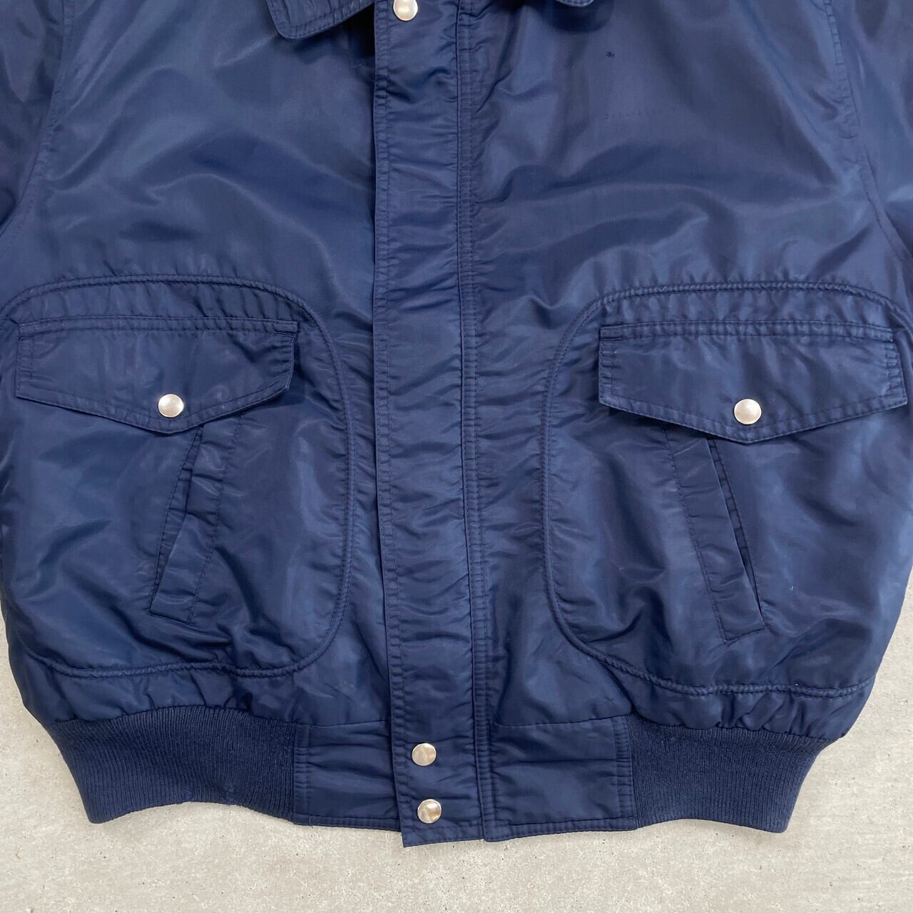 ■ユーロ Lee リー A-2タイプ ミリタリー フライトジャケット メンズM相当 古着 ヴィンテージ VINTAGE キルティングライナー ネイビー 紺色【ミリタリージャケット】/ネイビー 【ブランド】Lee リー 【サイズ】表記 S(着用感メンズM相当) モデル身長172cm 計測値をご確認ください。 着丈…61.5 身幅…66 肩幅…51.5 袖丈…64.5 【素材】ナイロン100% 中綿 ポリエステル100% 【状態】首元・右袖に小穴、全体的に数カ所小傷、フロント右裾に薄汚れ、リペア等の使用感がございます。 画像にてご確認ください。 【c241027003】 ※古着は洗濯、検品などのケアを行っております。(新品・デッドストックは洗濯していません。) ※モニターの発色により実物と異なる場合がございます。予めご了承ください。 ※ 海外直輸入USED品になります。