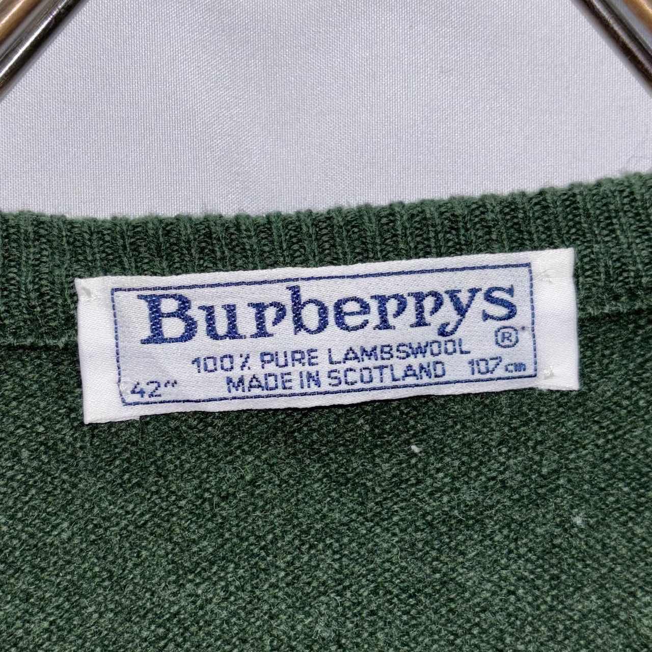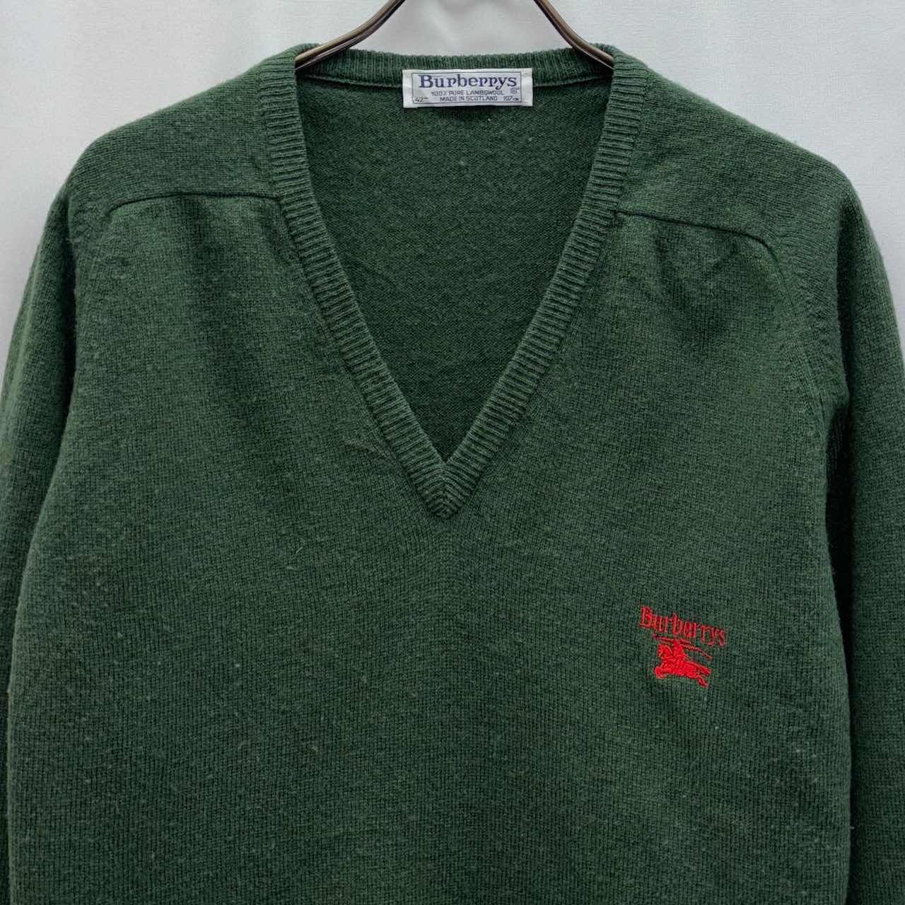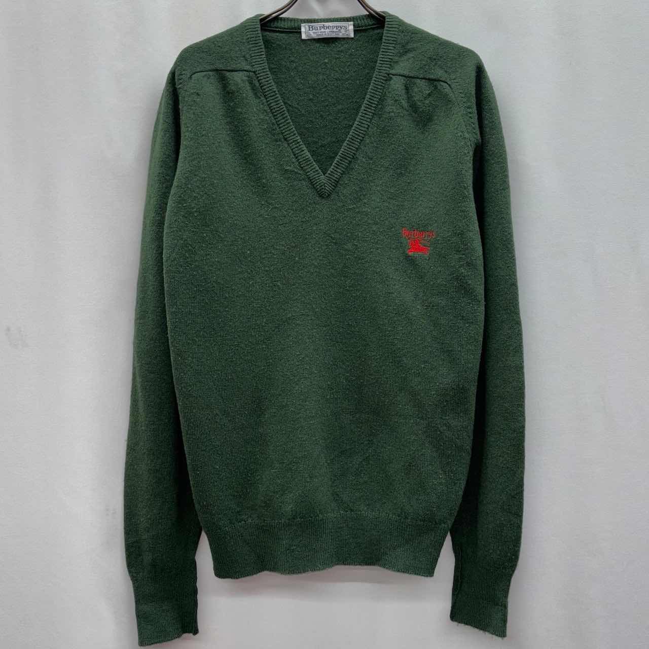90s vintage burberrys knit ニット/セーター Vネック 緑 ワンポイント