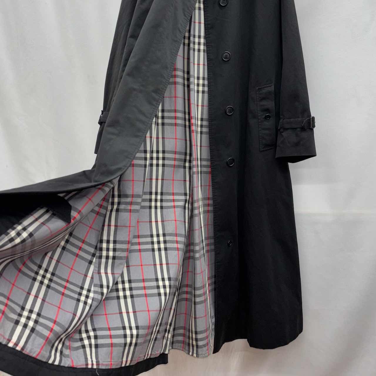 【サイズ表記】 14 EX LONG (156cm、170cm着用画像あり) 【サイズ(cm)】 肩幅ラグランスリーブ 袖丈ラグランスリーブ 裄丈80 袖口(平置)16 腕周(平置)24 着丈114 身幅(脇下)56 【商品詳細】 生産国 :England ブランド: Burberrys カラー :Black 素材 :100% cotton 【コンディション】 B 【S】新品、展示品、デットストックなど 【A】使用感少なく、状態の良いUSED 【B】使用感あるが、目立つダメージや大きな汚れは無い。 【C】使用感と部分的にダメージや汚れ有り。 【D】使用感があり、大きなダメージや汚れ有り。 ※古着故、多少の着用感や細かい汚れがございます。古着に理解のない方のご購入はお控えいただけると幸いです。 また、撮影状況により色味に若干の差異が生じる事がございます。 【ジャンル】 ユーロヴィンテージ/EURO VINTAGE 【その他】 こちらの商品は古着商品となります。 全て1点のみの在庫となります、ご注意ください。