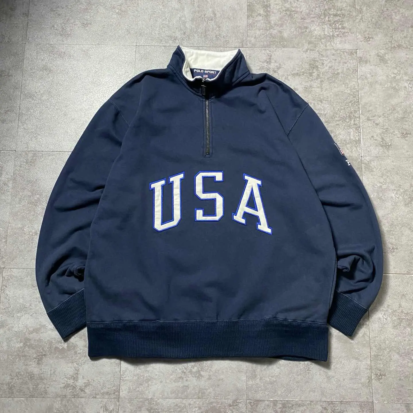 ノーティカ ハーフジップ 刺繍ワンポイント ネイビー スウェット トレーナー