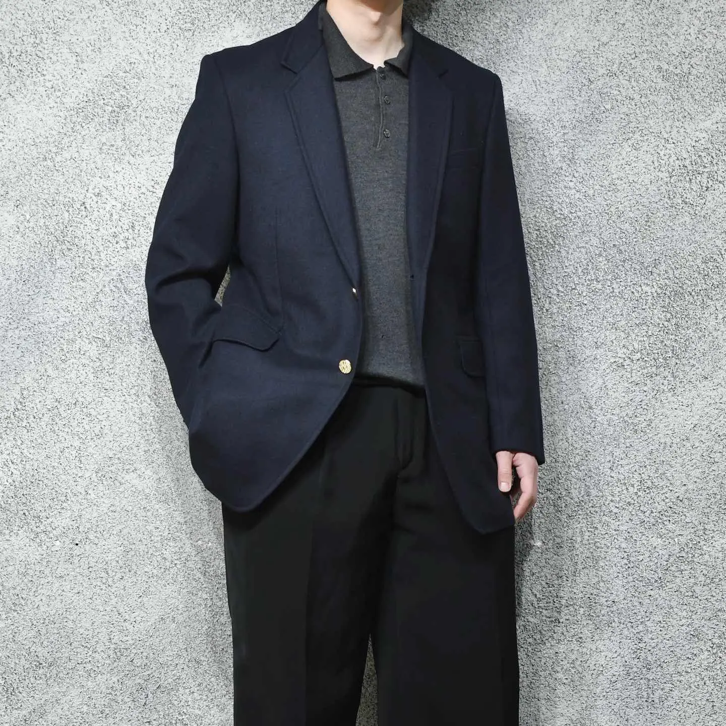 SIZE:- 着丈84cm 肩幅46cm 身幅55cm 袖丈63cm fabric/wool 着用画像 177cm/64kg カジュアルな服装や動きやすさを重視しがちですが、やっぱりこんな元々好きなカテゴリーや、 アイテムには惹かれるものですし、時折訪れる ”今日は...”そんな日用にも探していた紺ブレ。 シンプルなアイテムほど、サイズやシルエットに 重きを置きますが、こちらはその点 優れているように感じました。 肩が張らない程度のゆとりと、雰囲気を崩さない キレイなシルエット。 そして個人的には、さり気なく”和”を感じた 裏地の花や蝶の刺繍に惹かれました。 この季節には、ニットポロなどのハイゲージニットをインナーに、いつもより背筋を伸ばした スタイリングを組んでみてはどうでしょう。 ※撮影状況により、実物と多少色が異なる場合が ございます。 ※古着を取り扱っているため、気づかない汚れや ほつれ等がある場合がございます。 ※サイズは着用感で選んでおり、 表記サイズは説明欄の最初に記載しております。 古着 old vintage ヴィンテージ used 80's 90's アメリカ古着 ユーロ古着 POLO RALPH LAUREN Eddie Bauer OLD GAP LANDS' END ランズエンド LLBean エルエルビーン オールドギャップ エディーバウアー ラルフローレン ブルックスブラザーズ Brooks Brothers などがお好きな方 #vintage #old #used #90s #80s #古着 #ヴィンテージ #LLBean #エルエルビーン #EddieBauer #エディーバウアー #oldgap #LANDSEND #NAUTICA #ラルフローレン #POLORALPHLAUREN #ブルックスブラザーズ #BrooksBrothers #テーラードジャケット #紺ブレ #ブレザー #ジャケット