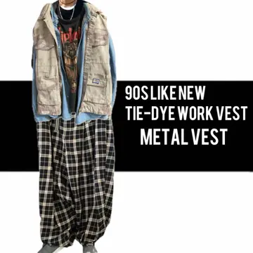 90s デザイナーズ後染めタイダイ ワークベスト、メタルベスト 新品