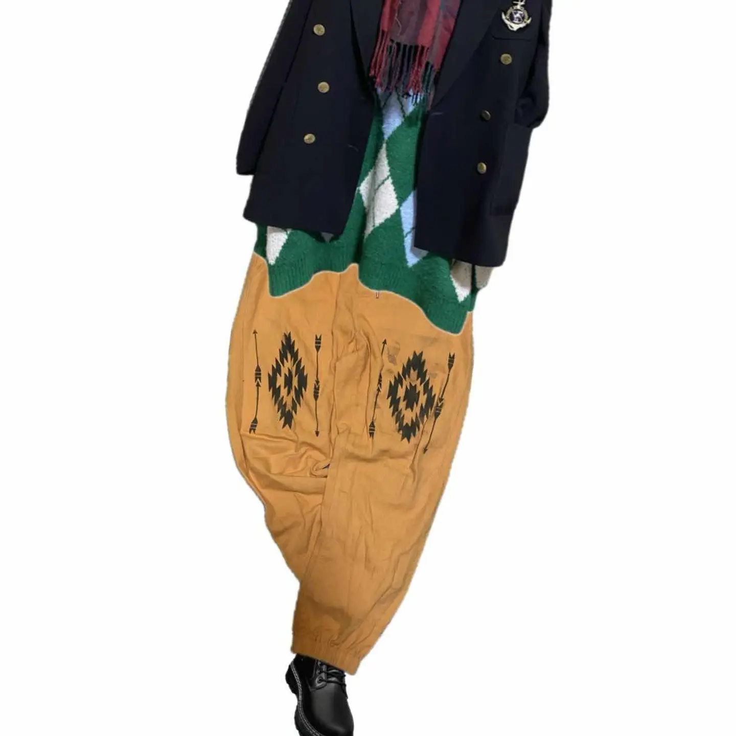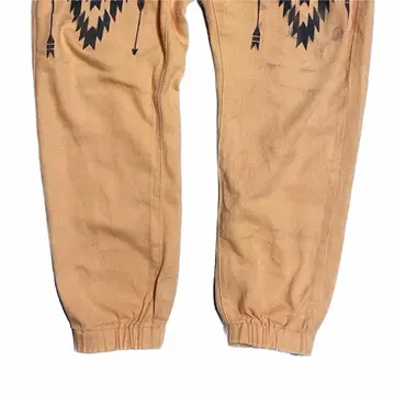80s リメイク オルテガ チマヨ20番drillコットンcarrot ボトム 伝統と現代の融合!! 1.80s最高級ボトム使用、 ゆるっとした、シルエットがお洒落!! 2.ワイテパ→カーブ→ carrotと、名前が、どんどん変わる人気のシルエットの、結局1st.は、80sですよ、なら、originalが いいと、思います。 3.デメリットなんて一切ない、流行りに左右されないどころか、こんな、長年流行ってる鉄板なら。世界に一つが、楽しいと思います^_^ それを、↓ オルテガ柄の中でも、圧倒的人気【チマヨ】を、手作業で、施しました。洗濯しても、落ちません^_^ また、このタイプは、 裾踏みする心配ないので、アクティブに、トップと 足元を、フォーマルに決めてもフットワークかるいから、沢山お洒落が、たのしめるんですね!! セーター。エンブレムジャケット、 なんたら、 doubleコートで、現代人気ビックフォーマルに、80sを、リメイクした、伝統チマヨ bottomなら。パーフェクトです。 【カラー】 マスタード系写真参照 ▷size◁平置き片面採寸【㎝表記】表記sizeLになるかもですですが、M-XLは、確実対応です、 【※ウエストのみ、メジャーで一周採寸】 ウエスト79-100まで、ラバー対応スリムな方は、ウエスト紐あります、絞ったらOK 股上29 股下71 腿渡り幅34 裾幅ラバー絞りなんで、関係ない、 モデル170㎝/普通体型、30インチジャストな体型のわたしが、快適にゆったり、 ▷material◁ 斜織drillコットン20番 ↑?って方、デニムの、裾上げ、ステッチいとが、30番、20は、それよりタフ!!それを、ななめにする、動きやすくなる、最高級技法、20番drillバイアス ▷condition◁ 最強、かっこいい!!不具合あるわけない! ※入念にチェックは、しておりますが、vintage/usedの特性ご理解下さい #オルテガ #チマヨ #アメカジ #ネイティブ #リメイク #80sリメイク #ペンデルトン #ネペンテス