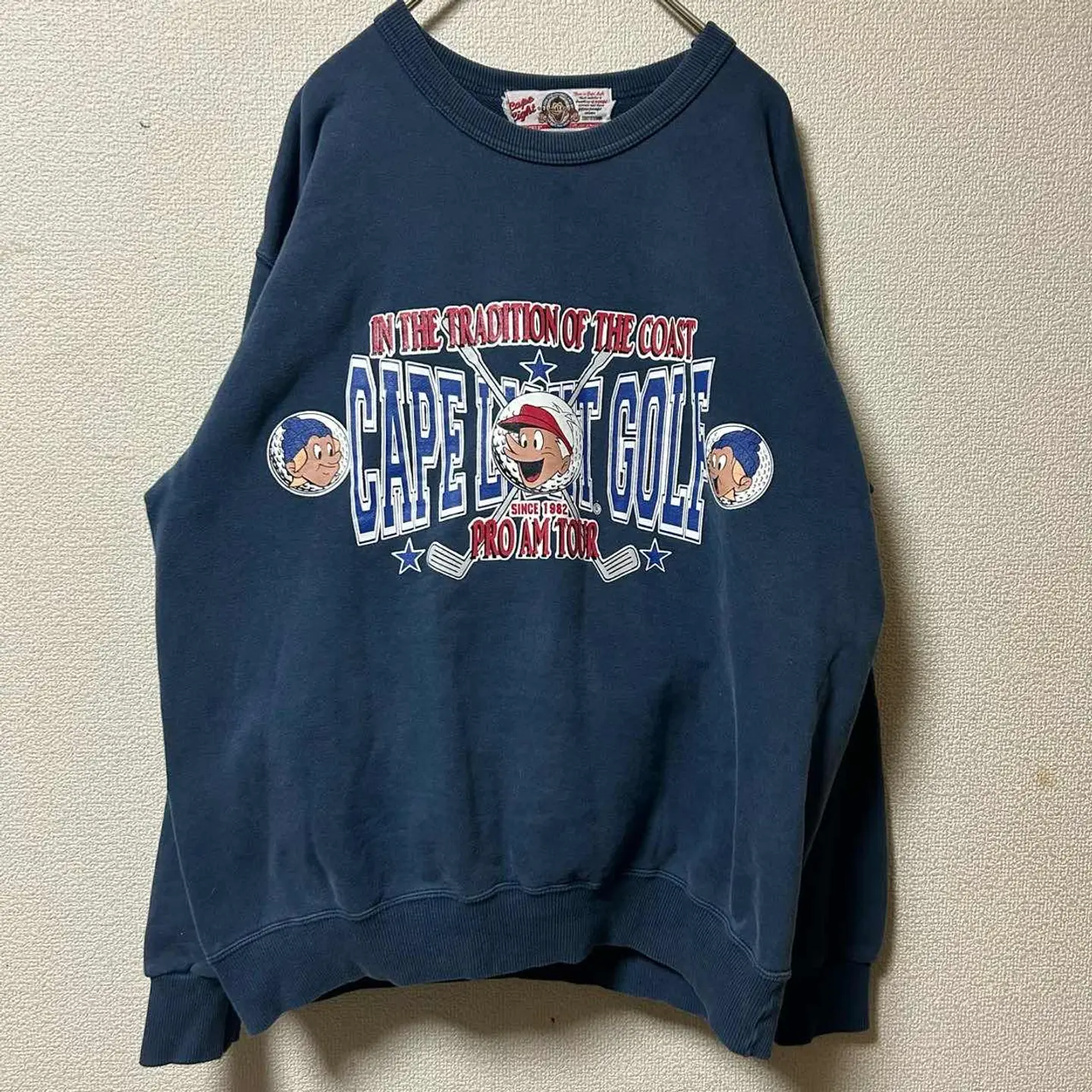 【フォロー割&まとめ買い割あります】 フォローで1点100円OFF、 2点同時購入で合計500円OFF、 3点同時購入で合計1,000円OFFにお値引きします。 購入前に「フォロー割希望」とコメントください。 キャプテンサンタ好きにも人気のCape Lightシリーズ、 キャラクター×ゴルフモチーフの両面プリントスウェットです。 フロントの大きなロゴとキャラプリントがインパクト抜群で、 90s〜2000sアメカジの雰囲気たっぷりの一枚です。 ネイビー系ボディにカレッジロゴ風プリントで、 デニムやチノパンとの相性も良く、1枚で主役になるデザイン。 古着らしい多少のフェード・使用感はありますが、 大きく目立つ汚れやダメージは見当たりません。 サイズ感はゆったりめで、古着らしいルーズシルエット。 詳しい実寸が必要な場合はコメントいただければ採寸してお伝えします。 キャプテンサンタや90sスウェット、アメカジ・USカジュアルが好きな方におすすめです。 #キャプテンサンタ #CapeLight #スウェット #トレーナー #両面プリント #キャラクタープリント #アメカジ #90s #ヴィンテージライク #古着 #古着男子 #古着女子