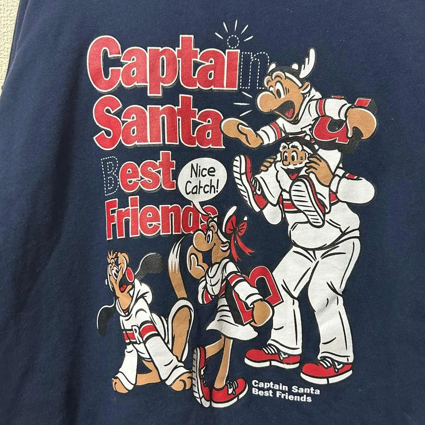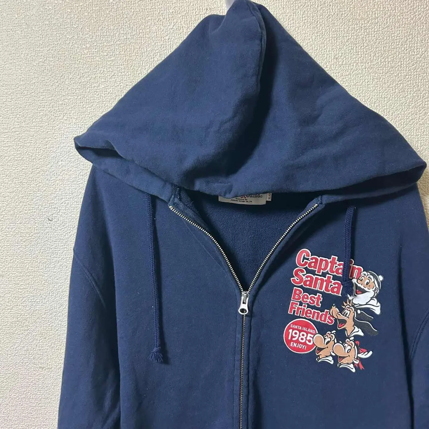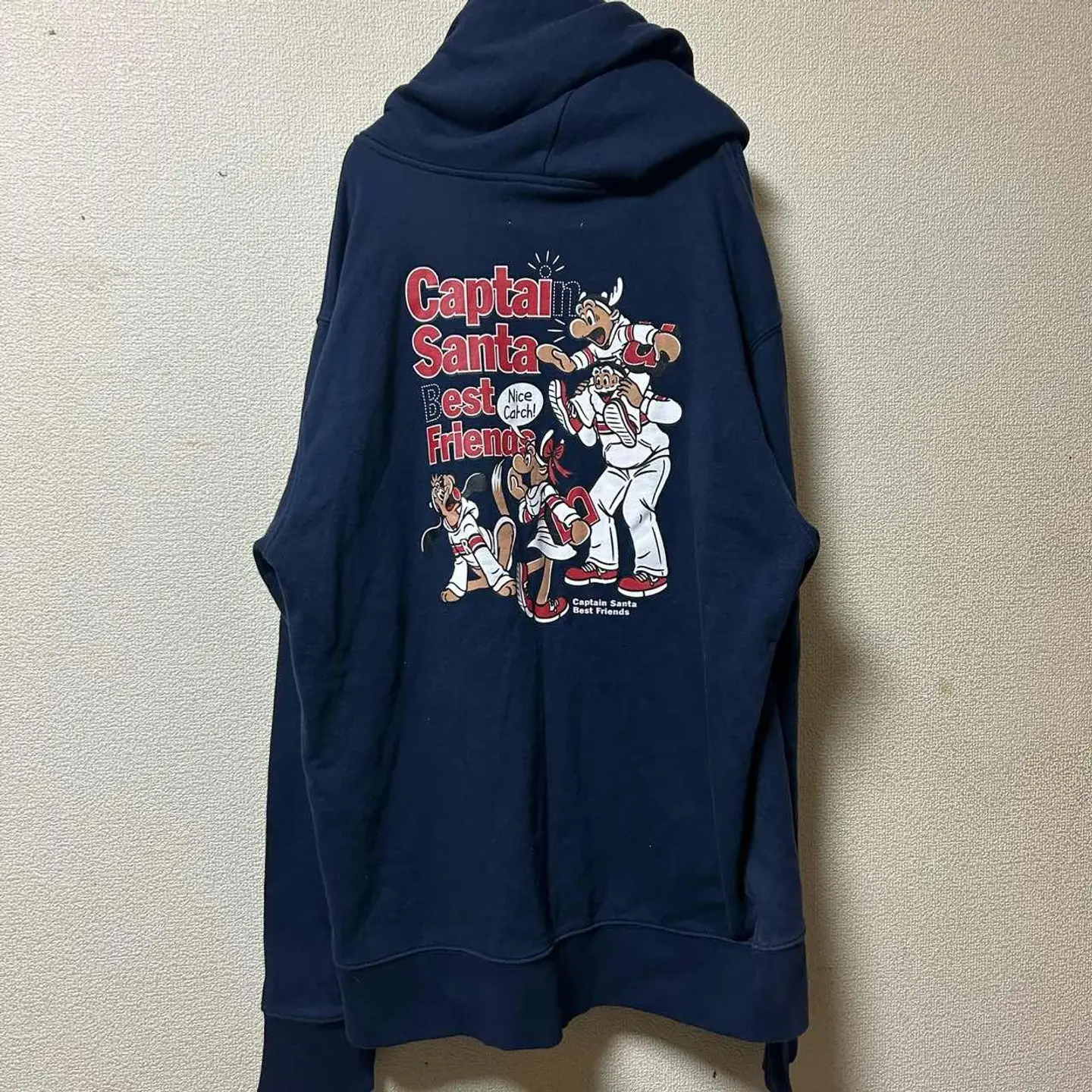 【フォロー割&まとめ買い割あります】 フォローで1点100円OFF、 2点同時購入で合計500円OFF、 3点同時購入で合計1,000円OFFにお値引きします。 購入前に「フォロー割希望」とコメントください。 キャプテンサンタのジップパーカーです。 胸元ワンポイントプリントと、背面いっぱいのビッグプリントで インパクトのある両面デザインになっています。 ネイビーボディにレトロなキャラクターが映える、 90s〜2000sアメカジ好きにはたまらない雰囲気。 ジップパーカーなので羽織りとしても使いやすく、 春秋はアウター、冬はインナーとして長いシーズン活躍します。 古着ならではの軽い使用感はありますが、 大きく目立つ汚れやダメージは見当たりません。 まだまだ問題なく着ていただけるコンディションです。 サイズは表記XLARGEで、ゆったり着られるオーバーサイズ感。 詳しい実寸が必要な場合はコメントいただければ採寸してお伝えします。 キャプテンサンタやカレッジスウェット、キャラ物パーカー、 アメカジ・マリンテイストがお好きな方にぜひ。 #キャプテンサンタ #ジップパーカー #スウェットパーカー #両面プリント #ビッグプリント #アメカジ #90s #ヴィンテージライク #古着 #古着男子 #古着女子