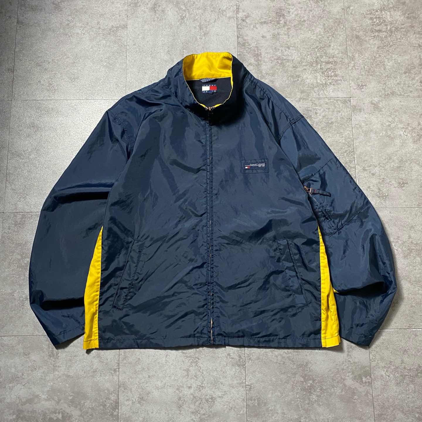 90s Tommy Hilfigerトミージーンズ ワンポイント ネイビー 薄手 ナイロンジャケット
