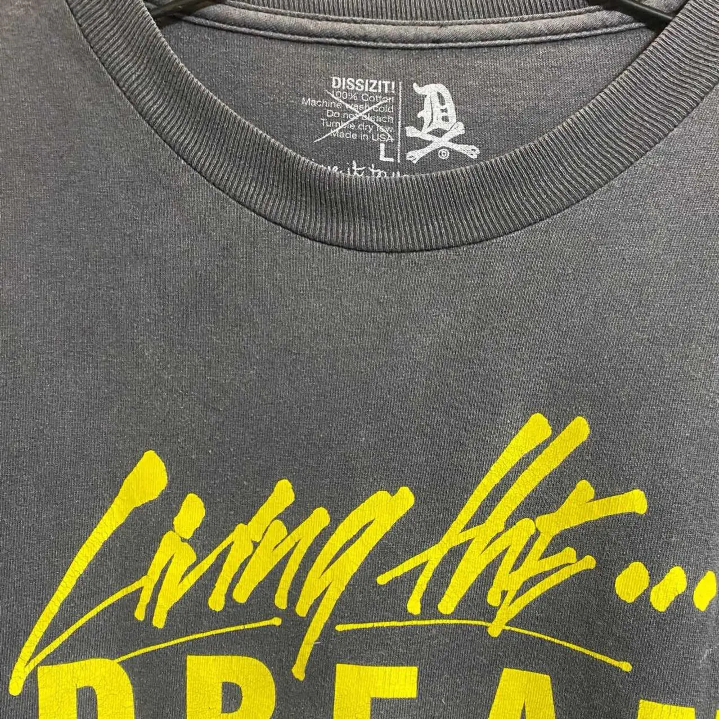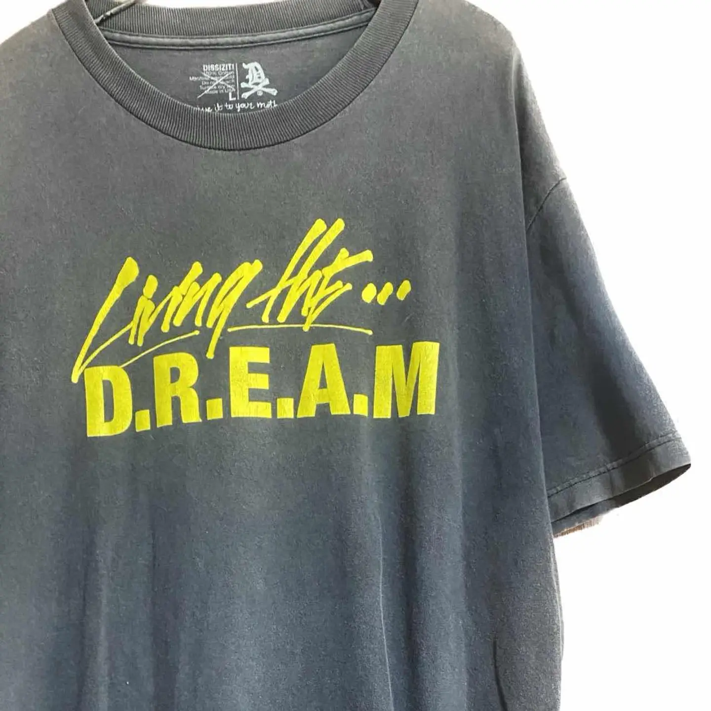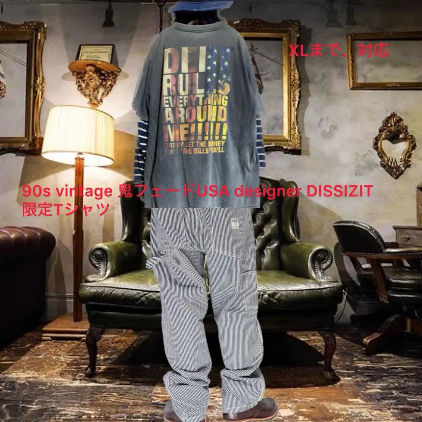 90s 鬼フェード DISSIZIT 1st USA Tシャツ LAグラフィティ界の奇才Slick(スリック)がLAで主宰する ハンドグラフィックを中心としたウエアブランド DISSIZIT の、1st start UP pigmentTです、 スリックは、90年代からアパレルの世界に進出し、FUCTで一躍有名に。 後にShaolinを起こし、今はAdopeDistributionを立ち上げDISSIZSLIX、 SHAOLIN WORLDWIDE、STRIPTEASE、DUMORと云った多数のブランドを抱えています。 また、StussyやX-Large等のブランドにもデザインを提供しており StussyのWorld Tour Teeのデザインに参加した事も記憶に新しいです。 ゆるっとした!サイズに、圧倒的なデザインは、 どなた様でも、すぐ着こなせます、 また、Tシャツは、価値が上がるポイントがあります、着込んで、育てば、激レアTは、フェード感出れば出るほど価値上がります、ましてや、1stなら、今が、お買い時となります。 古着好きには、たまらないですね、 【カラー】 ピグメントブラック、かなり、カッコいいです、鬼フェードがクール!! 表記size L表記ですが、/XLくらいあるので XLとします、 着丈/80 身幅/61重ね着最強のサイズ 肩幅/60DSbox 袖丈 /40 DSは袖はハンガー採寸 ※多少の誤差は理解下さい 着画ある場合モデル170センチ普通体型M がジャストの私が、着用してかなり、ゆるだぼ、 【素材】 コットン100 【状態】 鬼フェードがかっこいすぎる。逆に価値が上がっています。ピグメントに近い感じなので申し訳ないですが、これをしようかなと思う人は、うそでしょ?笑です、。鬼フェードです。 #LAデザイナーズT #ピグメントT #ボロT #ステューシー #エクストララージ
