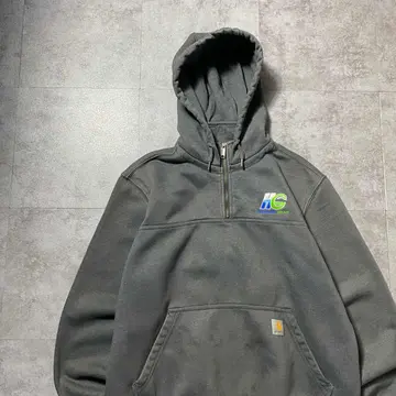 carhartt カーハート ハーフジップ 刺繍企業ロゴ ヘビーオンス ダメージ パーカー