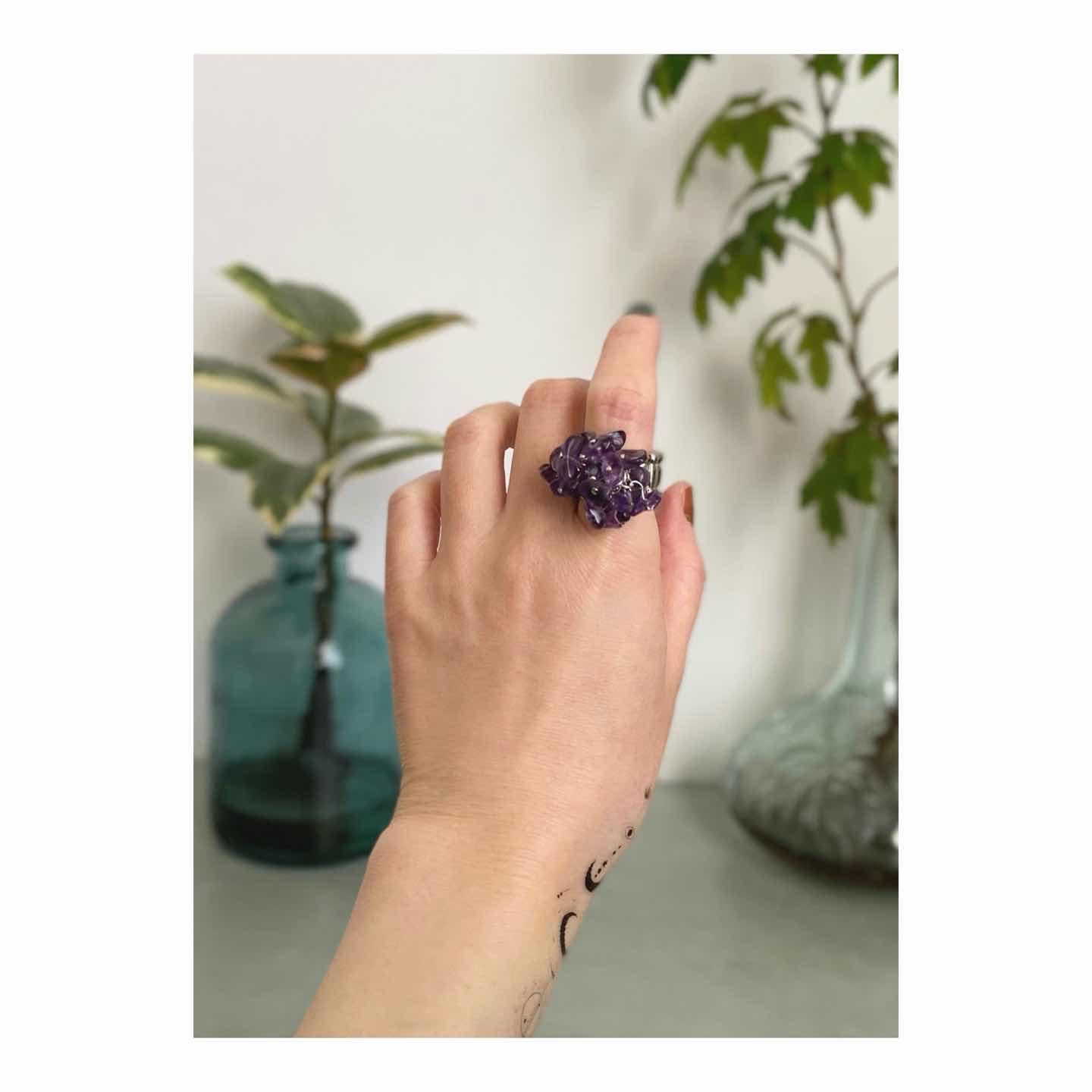 Vintage 90s-00s USA retro natural stone amethyst ring