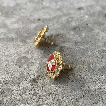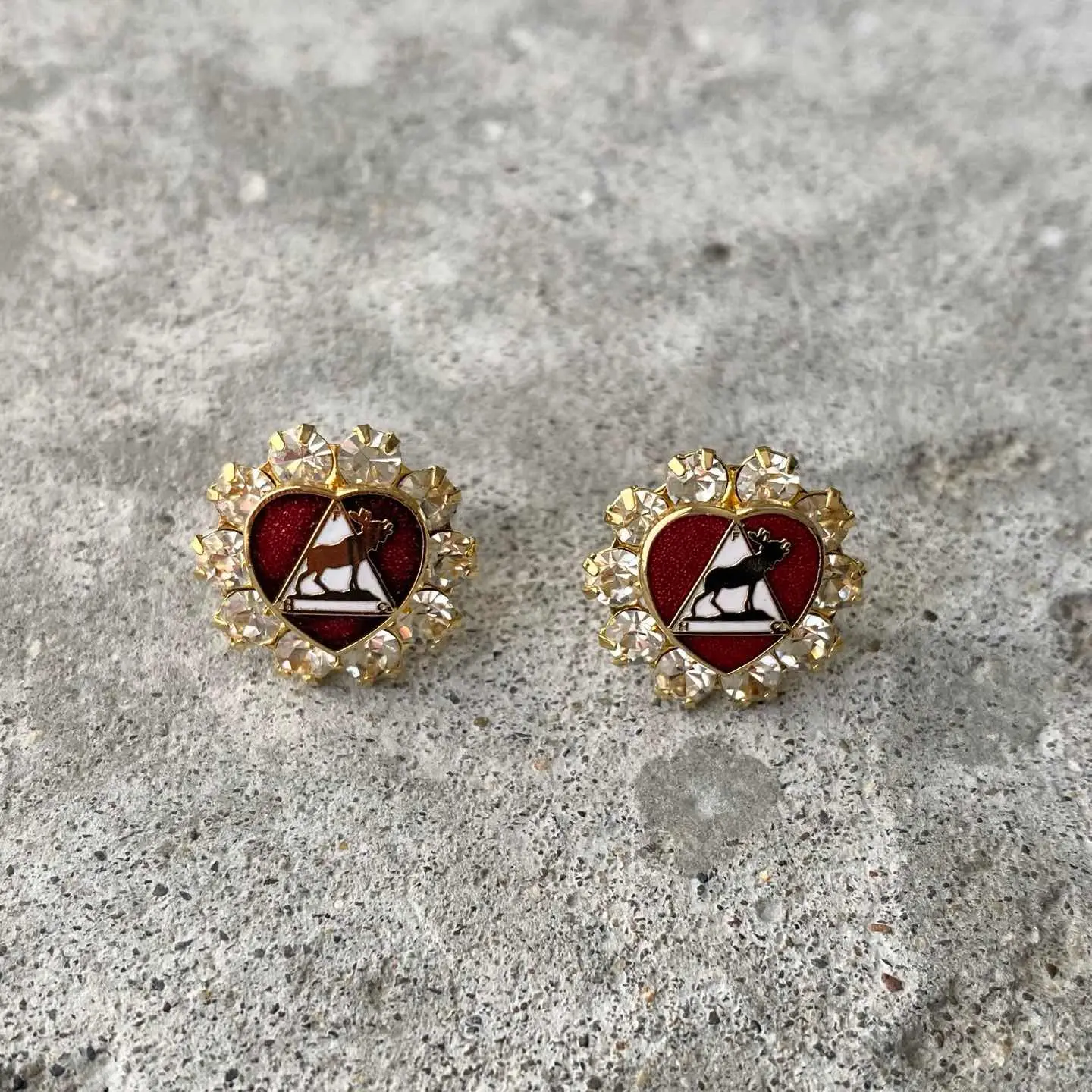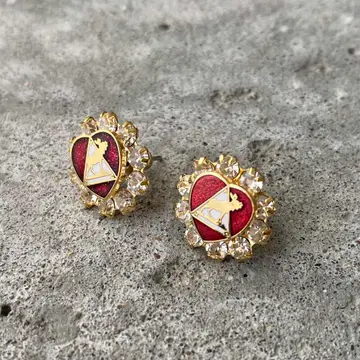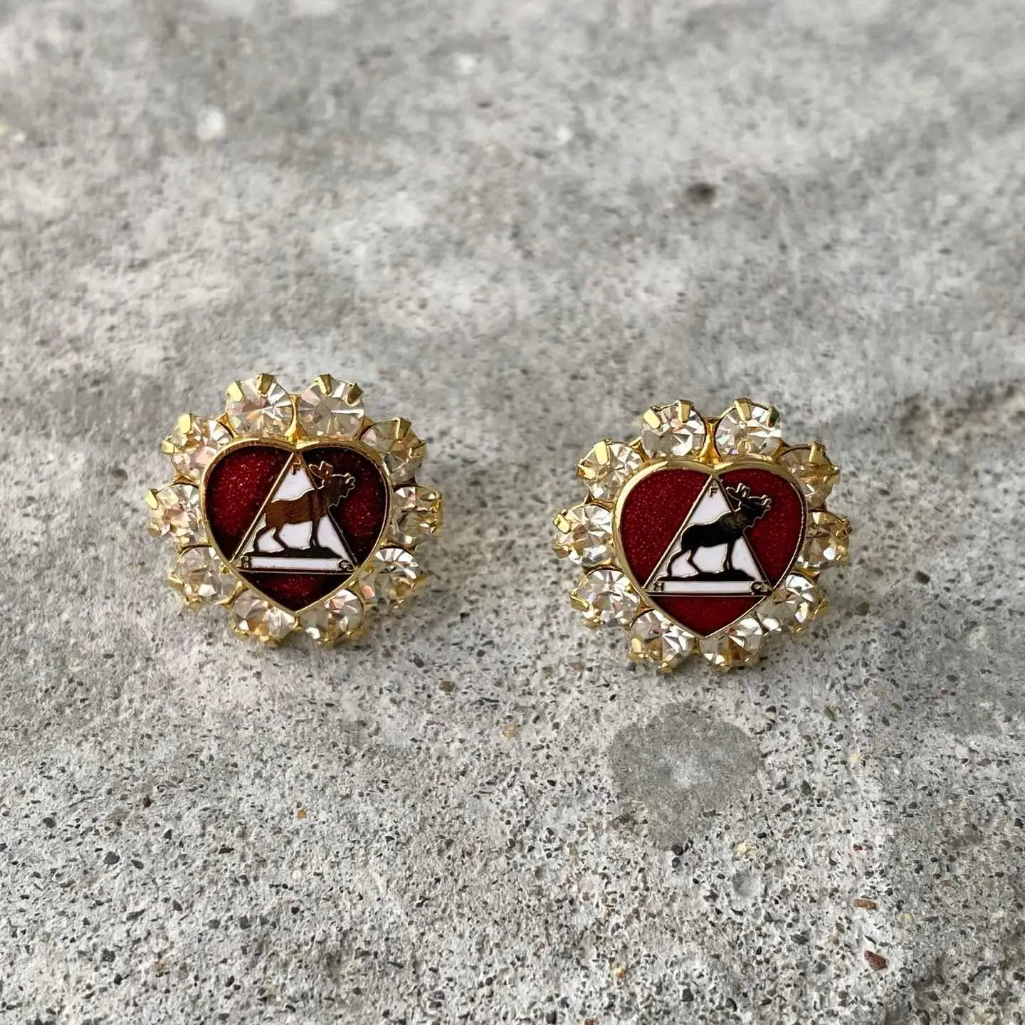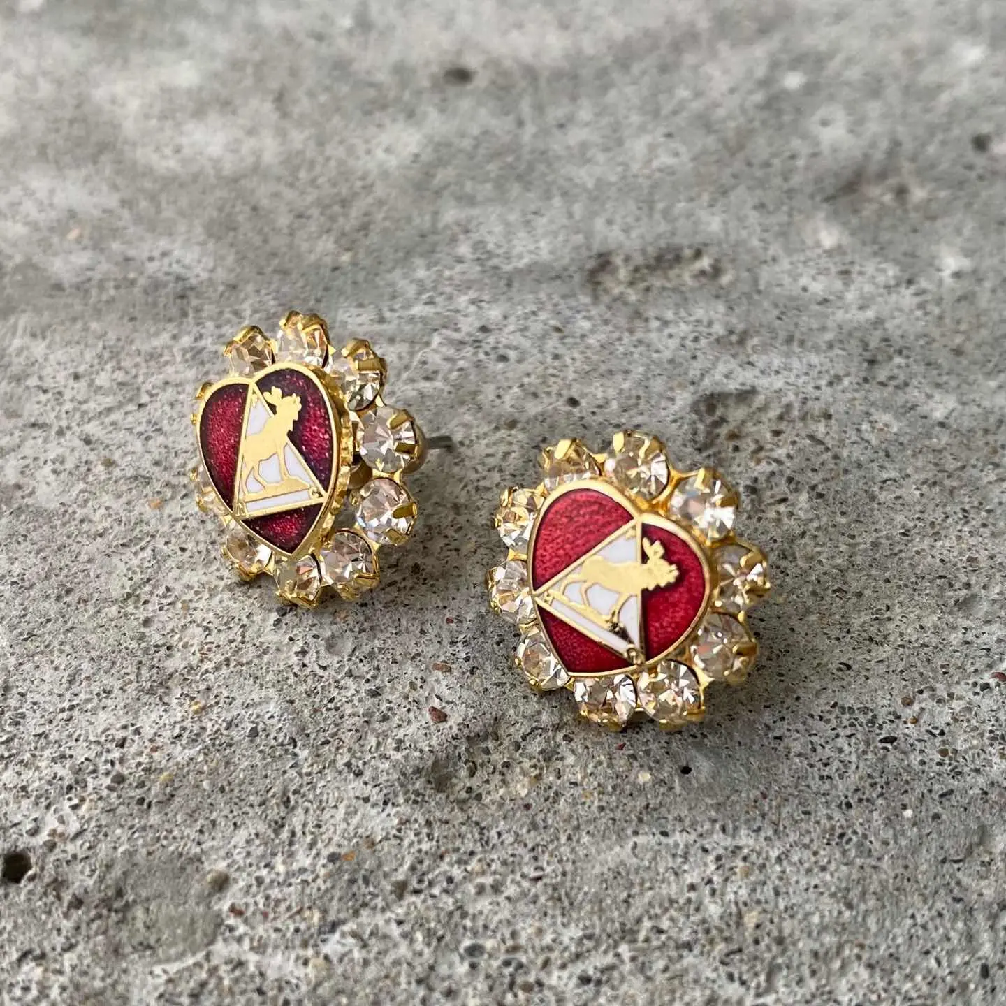 Vintage USA retro crystal bijou red enamel heart pierces