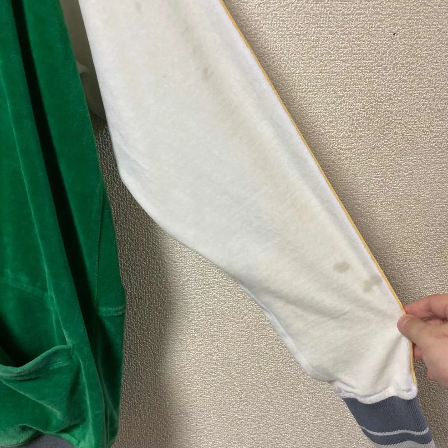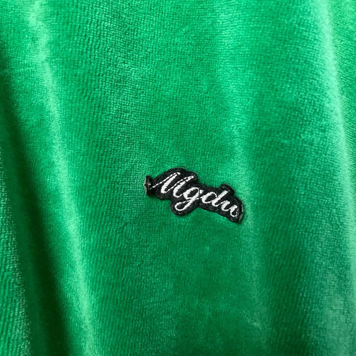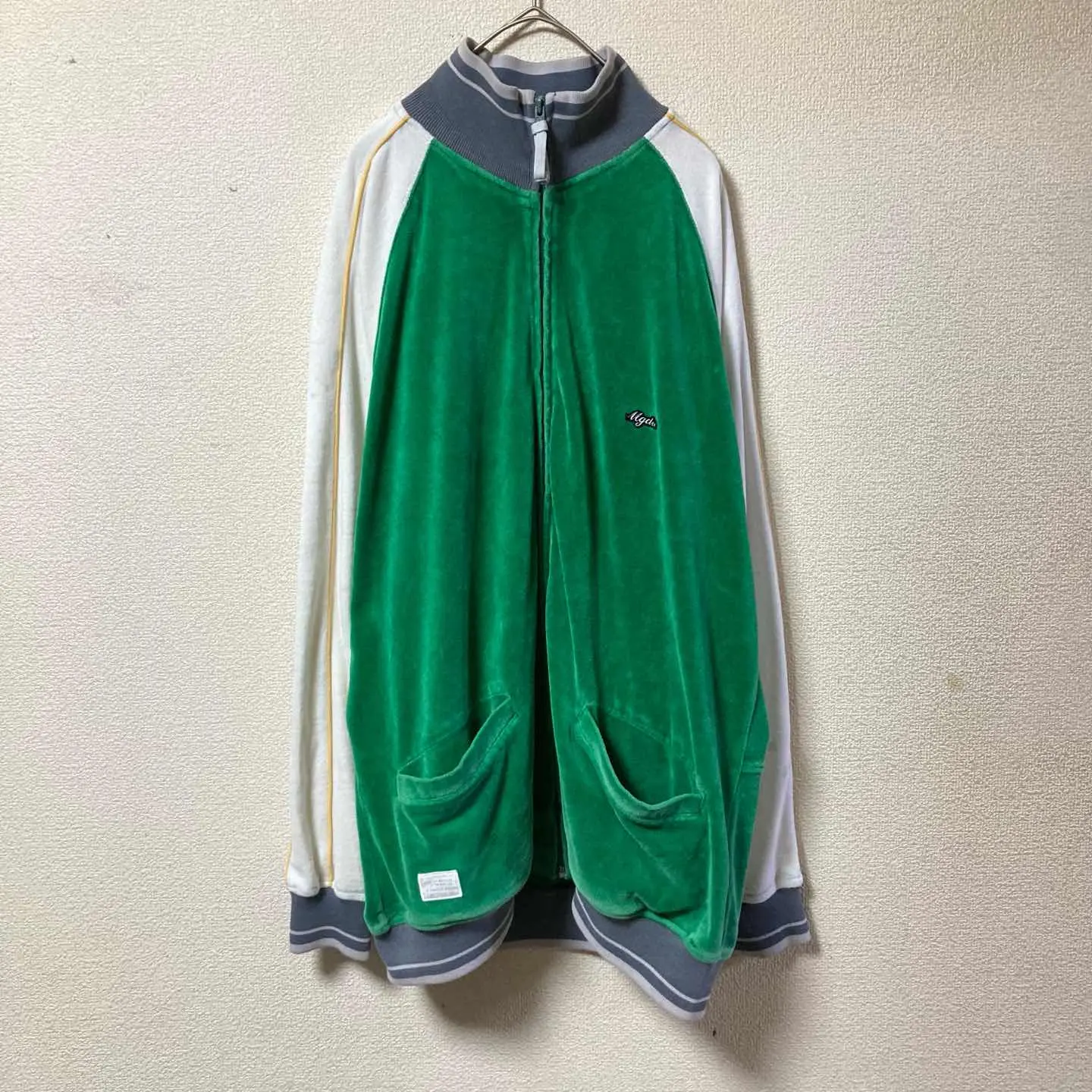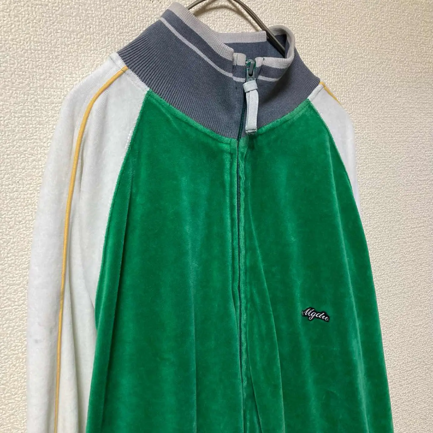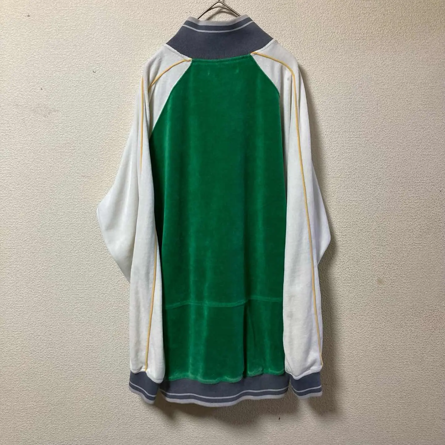 ベロア トラックジャケット 緑×白 ラグランスリーブ 古着 スポーツM相当