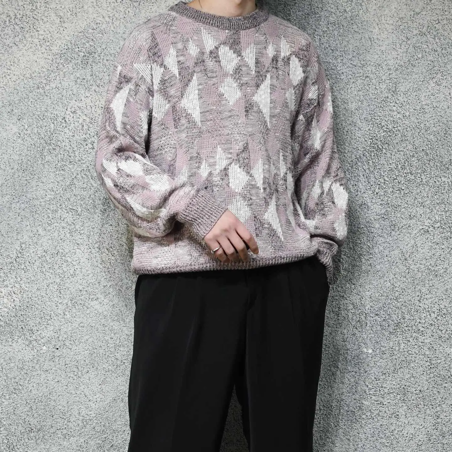 古着 HUGO BOSS デザインニット ニット セーター アクリルニット