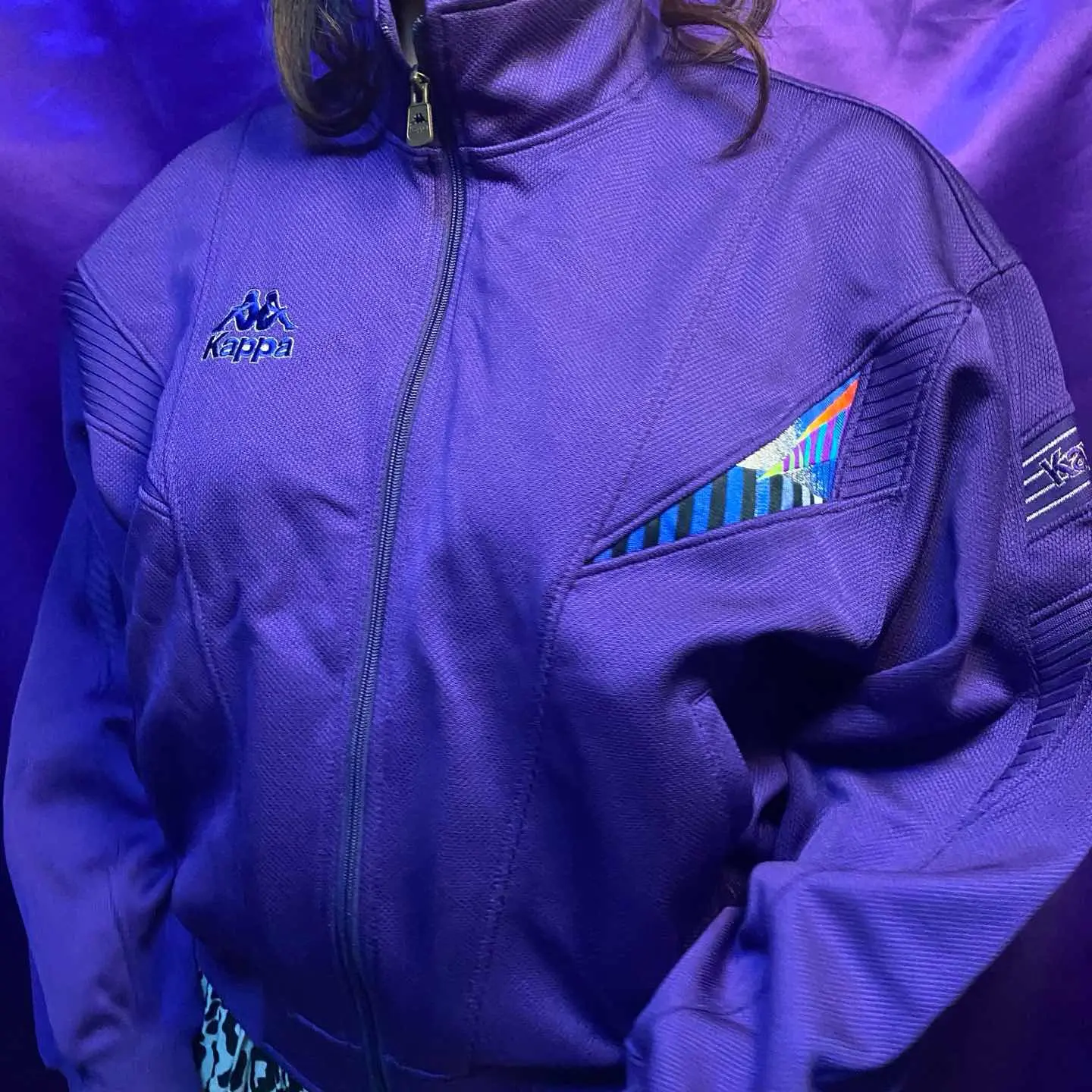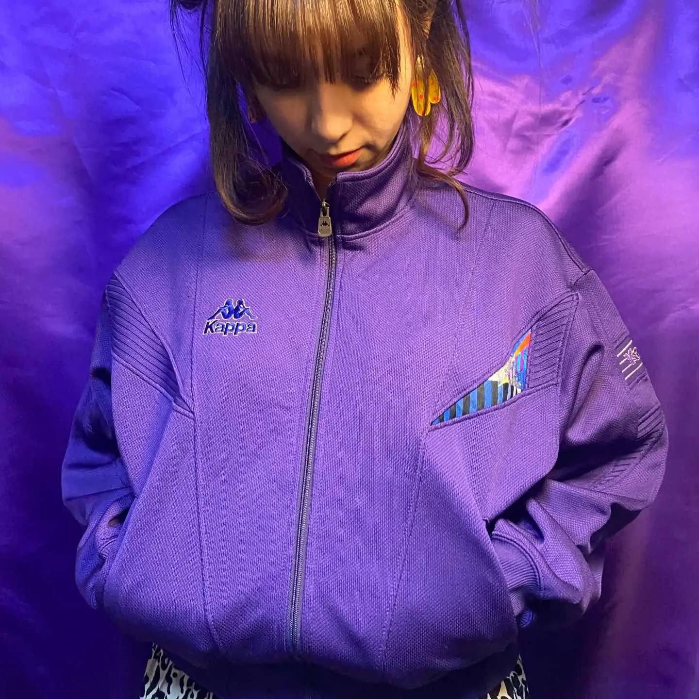 Kappaの紫トラックジャケット。 Vintage特有のボックスシルエットとデザインがたまりません。 デザインを見せたい気持ちを抑えてテーラード着てみるとそれはそれでめちゃくちゃいい。 うちのトラックジャケットの中で1.2位を争う可愛さです。 ランク:A *ランクの説明はコンディションについてをご覧ください。 肩幅52 身幅112 袖丈52 着丈59 model:174cm/164cm