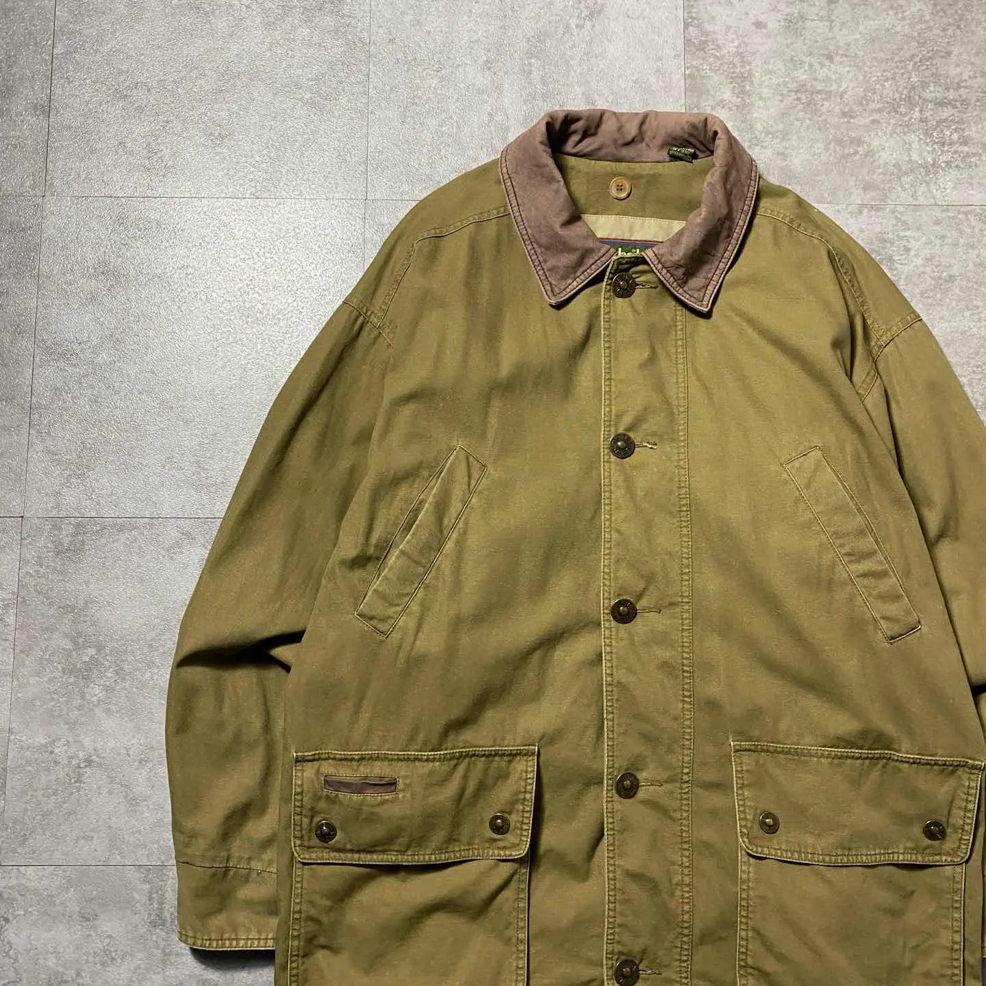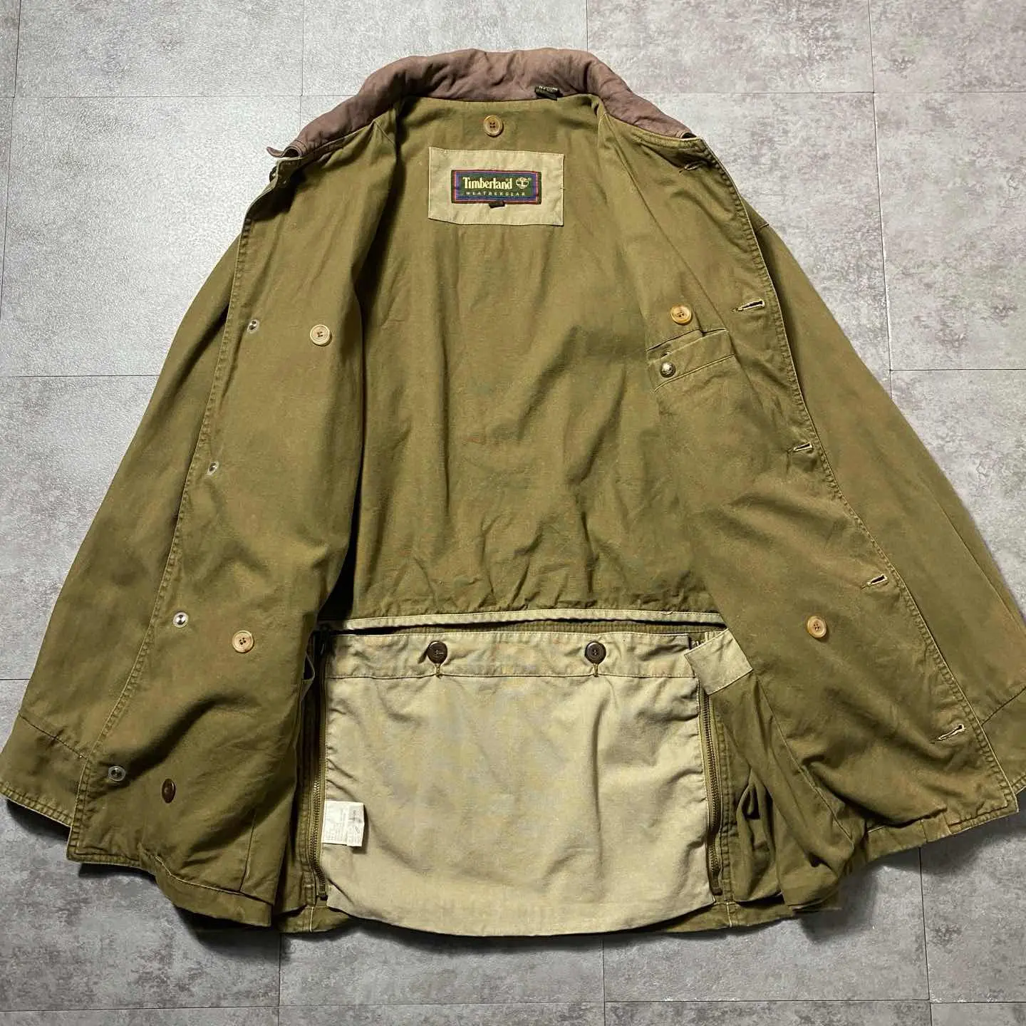90s ティンバーランド レザー襟 メタルボタン ミドル丈ハンティングジャケット