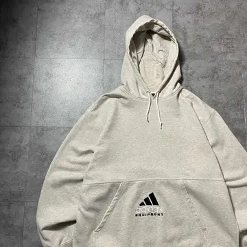 90s アディダスエキップメント センター刺繍ロゴ アイボリー パーカー