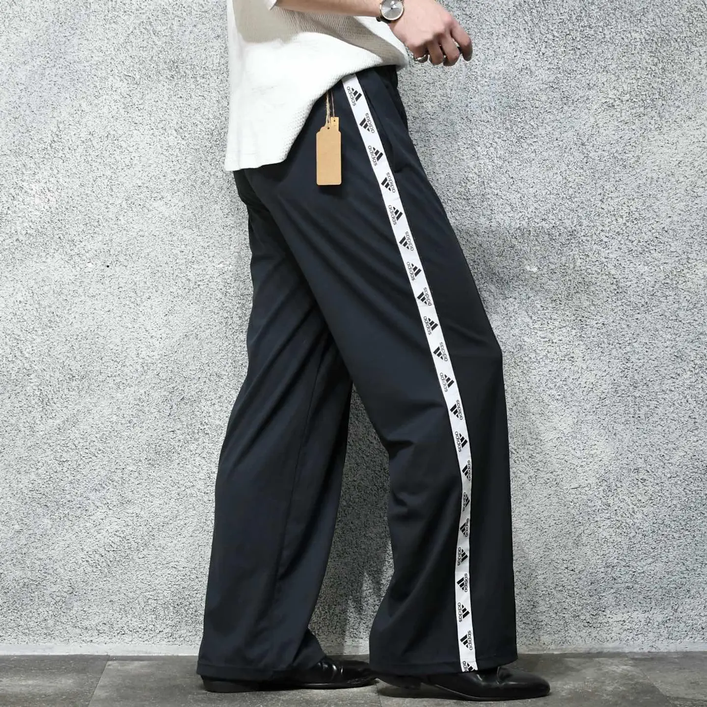 古着 adidas サイドライン ロゴ センタープリーツ トラックパンツ ワイド