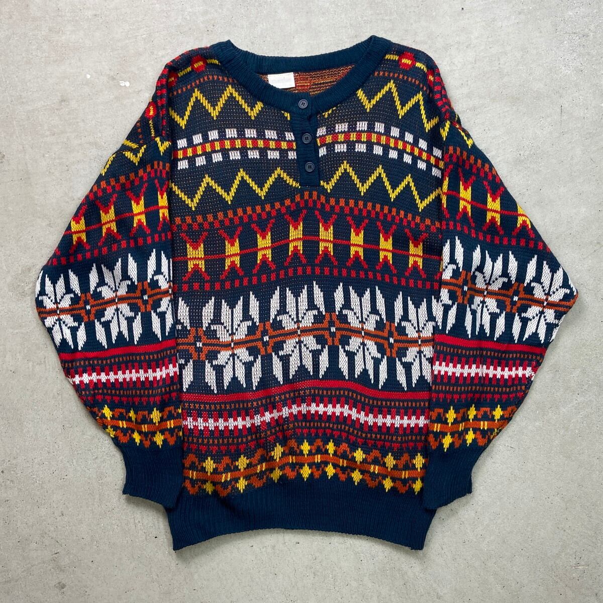 ■90年代 ENHANGE ノルディック柄 アクリルニットセーター メンズM 古着 90s ヴィンテージ VINTAGE ネイビー レッド イエロー オレンジ【ニットセーター】/マルチカラー 【ブランド】ENHANGE 【サイズ】表記 M ※計測値をご確認ください。 着丈…69.5 身幅…57 肩幅…60.5 袖下…55.5 【生産国】韓国製 【素材】アクリル100% 【状態】使用感はありますが、目立ったダメージやよごれはございません。 画像にてご確認ください。 【c251222106】 ※古着は洗濯、検品などのケアを行っております。(新品・デッドストックは洗濯していません。) ※モニターの発色により実物と異なる場合がございます。予めご了承ください。 ※ 海外直輸入USED品になります。