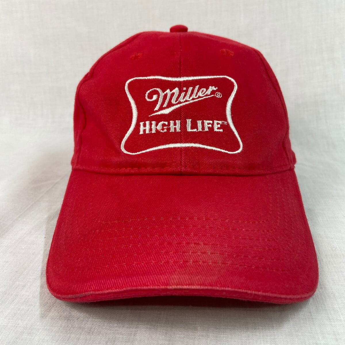 ■Miller HIGH LIFE ミラー ベースボールキャップ 企業ロゴ刺繍 メンズ レディース 古着 ビール 酒 ユニセックス 赤色【帽子】/レッド 【サイズ】表記 不明(フリーサイズ) ※計測値をご確認ください。 高さ…10.5 つば…7 頭周り(内径)…56~60.5 【生産国】中国製 【素材】コットン100% 【状態】ツバに若干の色褪せによる変色がございます。 画像にてご確認ください。 【c251216112】 ※古着は洗濯、検品などのケアを行っております。(新品・デッドストックは洗濯していません。)