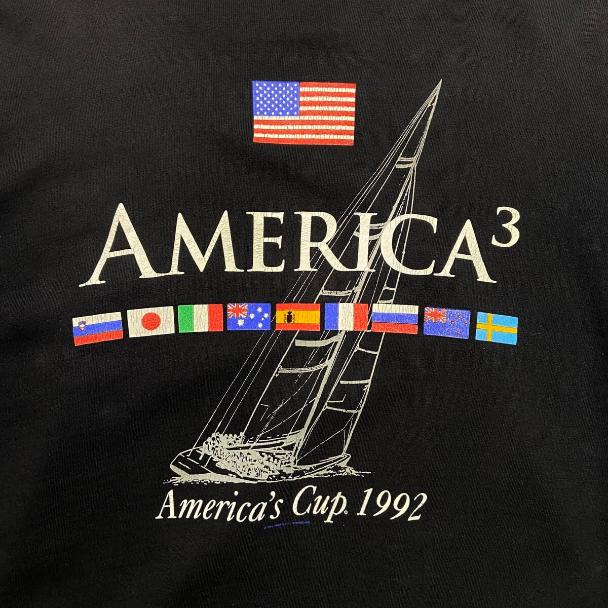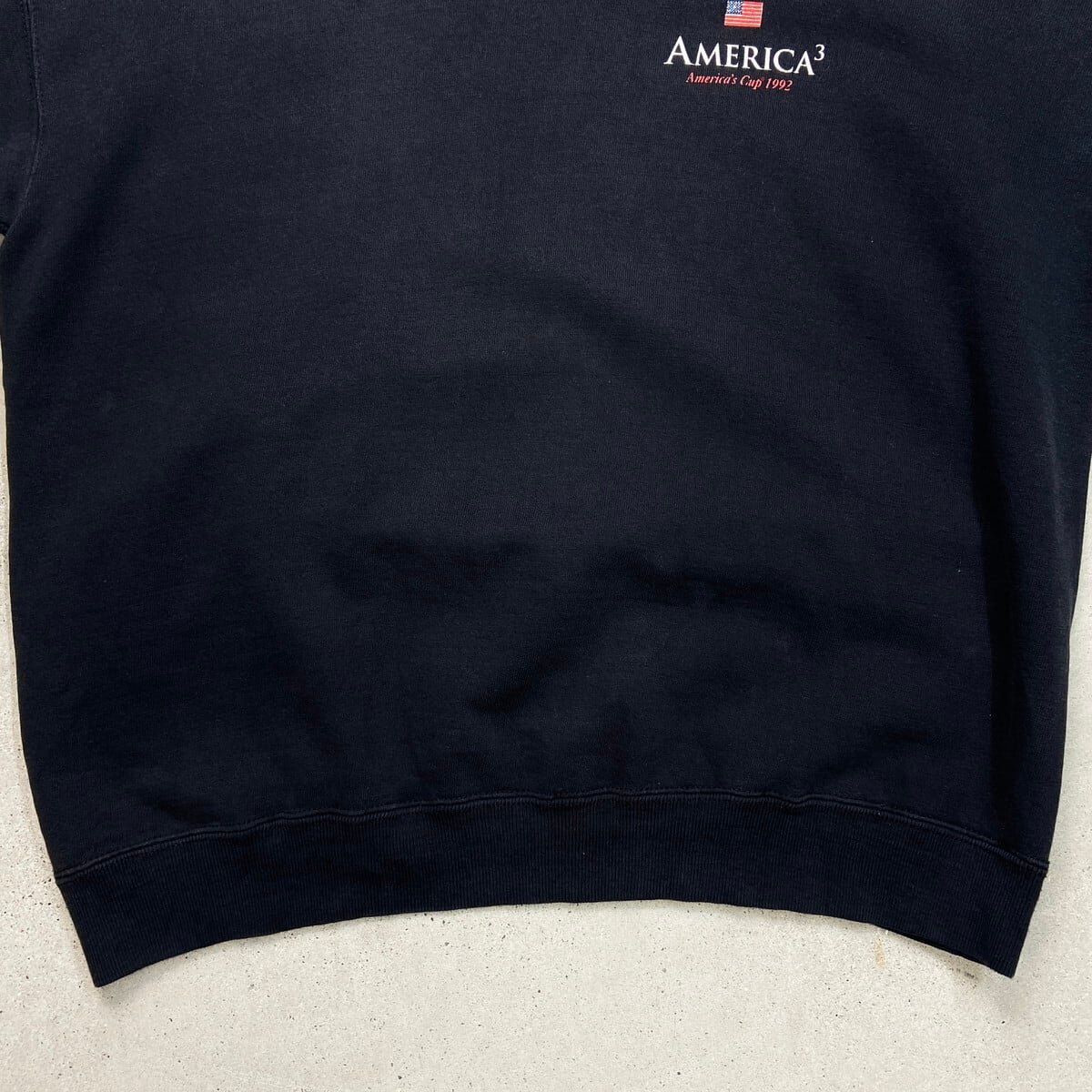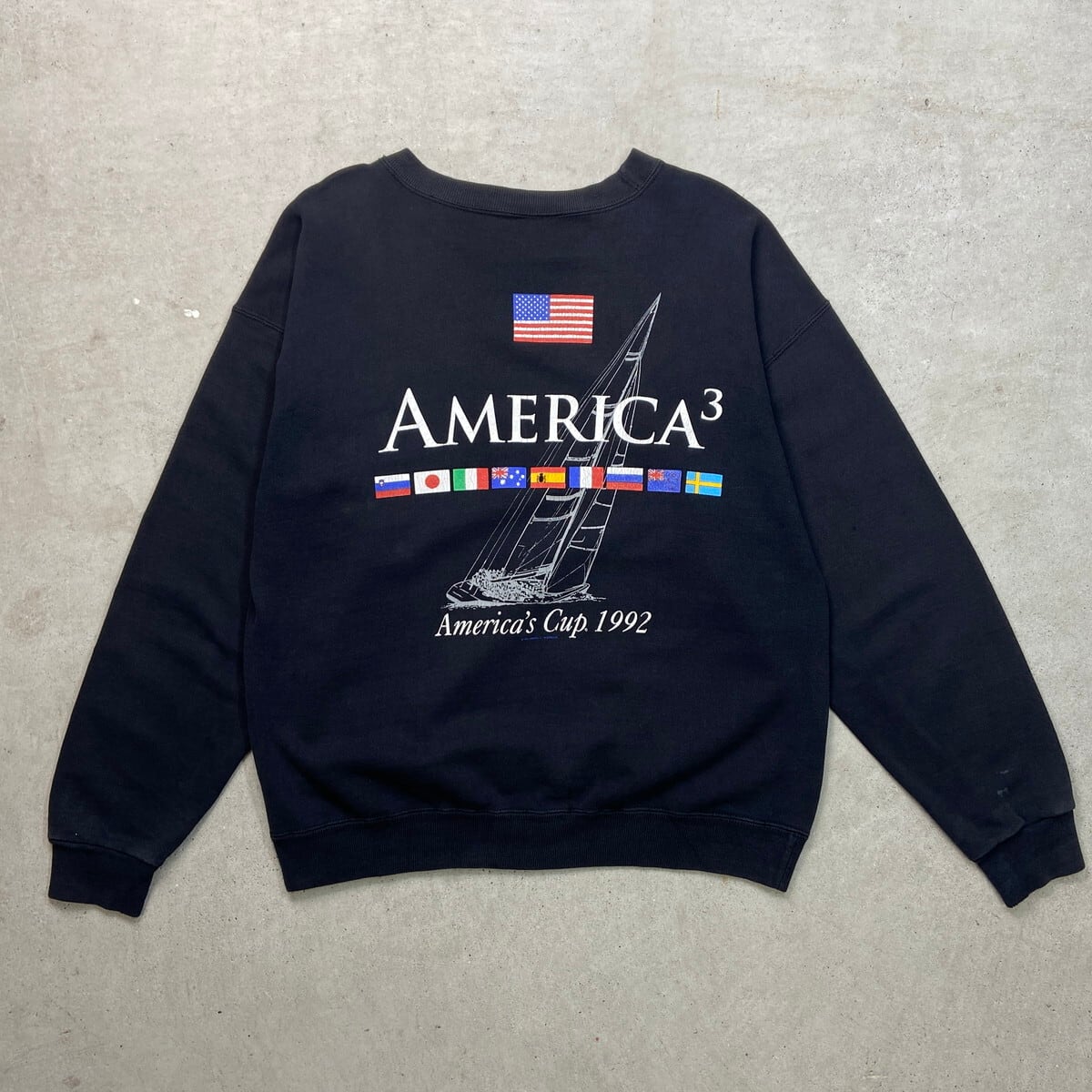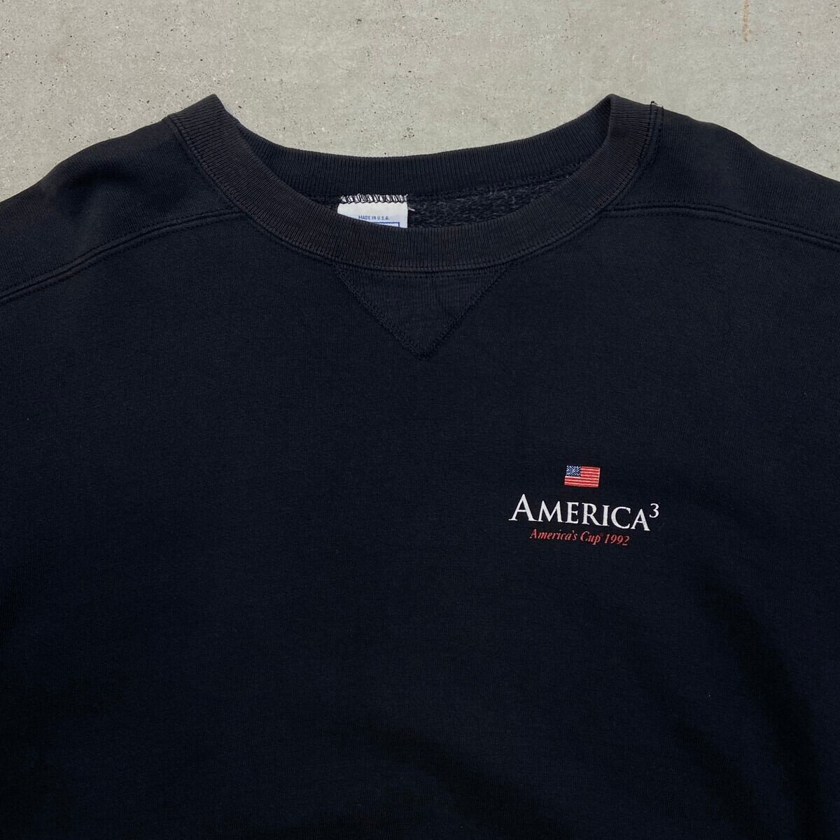■古着 AMERICA'S CUP 1992 プリント スウェットシャツ メンズL 90年代 90s VINTAGE ヴィンテージ USA製 USED 前Vガゼット 星条旗 ヨット バックプリント 黒色【スウェット】/ブラック 【ブランド】TULTEX 【サイズ】表記 L ※計測値をご確認ください。 着丈…65 身幅…62.5 肩幅…66.5 袖丈…58.5 【生産国】USA製 【素材】コットン95% ポリエステル5% 【状態】フロントや袖に色褪せや薄汚れがあります。 左袖に一部ダメージ穴がございます。 画像にてご確認ください。 【c251216104】 ※古着は洗濯、検品などのケアを行っております。(新品・デッドストックは洗濯していません。) ※モニターの発色により実物と異なる場合がございます。予めご了承ください。 ※ 海外直輸入USED品になります。