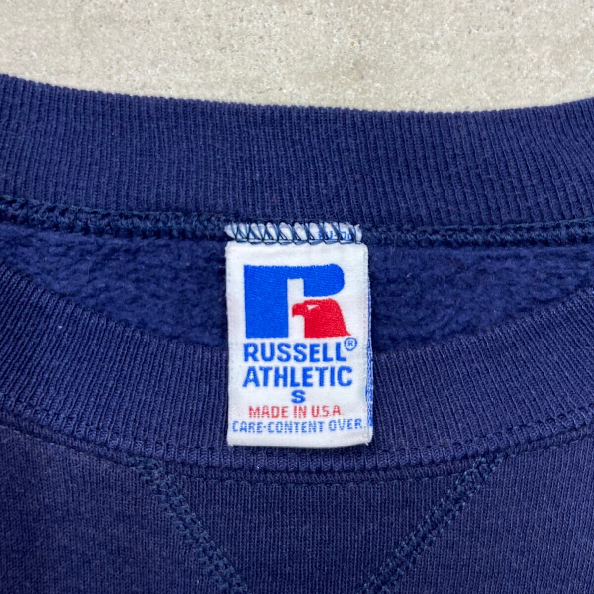 ■古着 RUSSELL ATHLETIC スウェットシャツ メンズXS相当 レディースS相当 90年代 90s ヴィンテージ VINTAGE USA製 ラッセルアスレチック 前Vガゼット アメカジ トレーナー 紺色【スウェット】/ネイビー 【ブランド】RUSSELL ATHLETIC ラッセルアスレチック 【サイズ】表記 S(実寸メンズXS相当) ※計測値をご確認ください。 着丈…57 身幅…47.5 肩幅…49 袖丈…59 【生産国】USA製 【素材】コットン50% ポリエステル50% 【状態】フロントのプリント付近に薄汚れがあります。 画像にてご確認ください。 【c251215119】 ※古着は洗濯、検品などのケアを行っております。(新品・デッドストックは洗濯していません。) ※モニターの発色により実物と異なる場合がございます。予めご了承ください。 ※ 海外直輸入USED品になります。