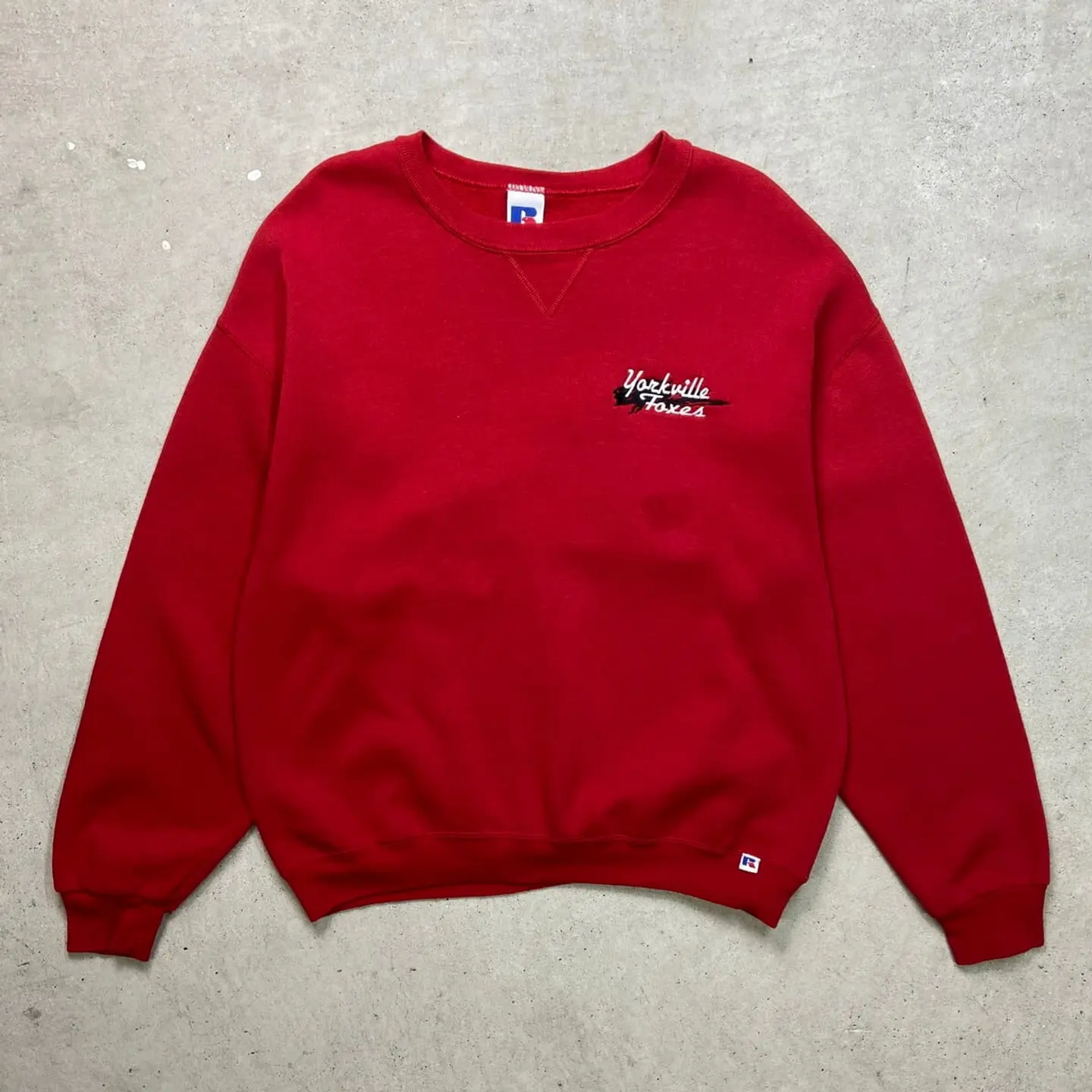 ■古着 RUSSELL ATHLETIC ラッセル ワンポイントロゴ刺? スウェットシャツ メンズL 古着 90年代~ 90s ヴィンテージ VINTAGE USED 前Vガゼット アメカジ Yorkville Foxes トレーナー 赤色【スウェット】/レッド 【ブランド】RUSSELL ATHLETIC ラッセルアスレチック 【サイズ】表記 L ※計測値をご確認ください。 着丈…64 身幅…60.5 肩幅…62 袖丈…58.5 【生産国】メキシコ製 【素材】コットン50% ポリエステル50% 【状態】フロントに2か所、バックサイド首付近に1か所ほどシミ汚れがあります。 画像にてご確認ください。 【c251215116】 ※古着は洗濯、検品などのケアを行っております。(新品・デッドストックは洗濯していません。) ※モニターの発色により実物と異なる場合がございます。予めご了承ください。 ※ 海外直輸入USED品になります。