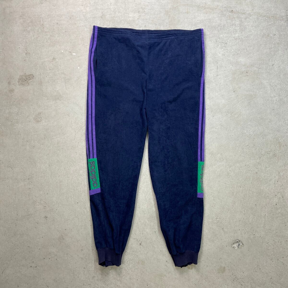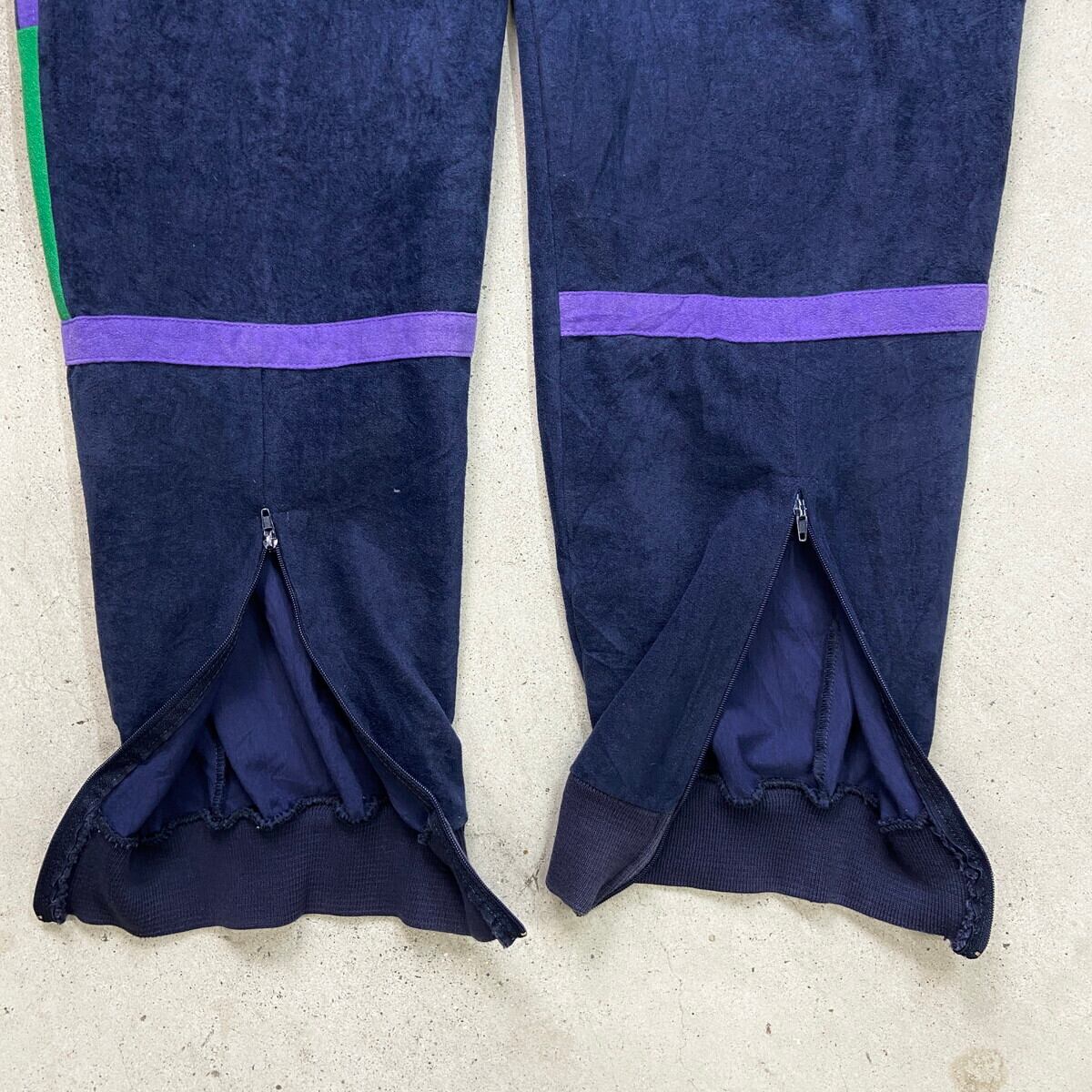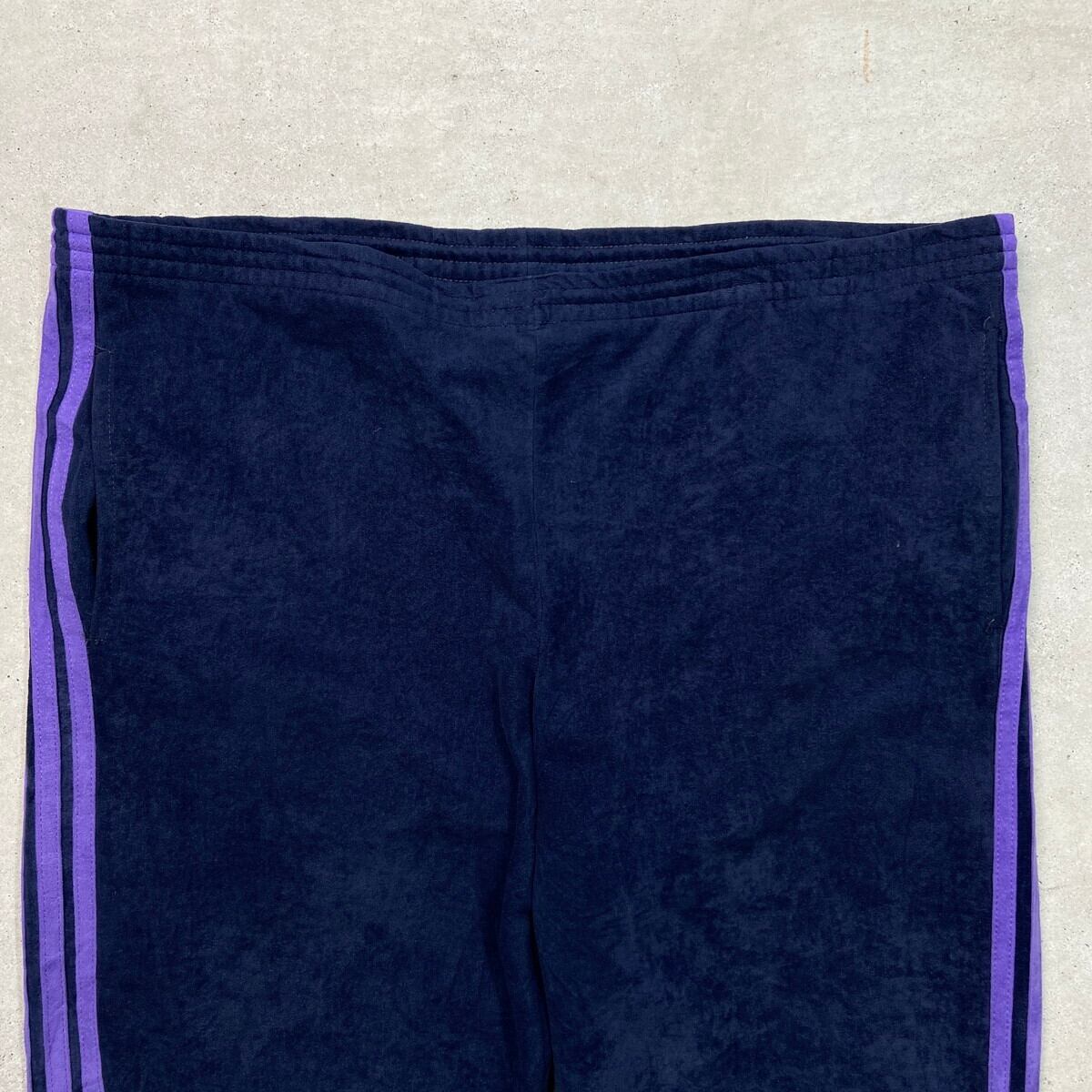 ■古着 adidas アディダス VENTEX社製 ベロアジャージパンツ メンズW40相当 70年代 70s VINTAGE ヴィンテージ フランス製 USED ビッグサイズ 大きいサイズ 紺色 パープル グリーン【ロングパンツ】/ネイビー 【ブランド】adidas アディダス 【サイズ】表記不明(計測値メンズW40 L31相当) ※計測値をご確認ください。 ウエスト…104(ドローコードで調節可) ワタリ幅…35 股上…29 股下…80 裾幅...13.5 【生産国】フランス製 【素材】ポリエステル80% コットン20% 【状態】フロント左もも付近に薄汚れがあります。 ロゴのフロッキープリントが若干?がれかかっております。 画像にてご確認ください。 【c251215114】 ※古着は洗濯、検品などのケアを行っております。(新品・デッドストックは洗濯していません。) ※モニターの発色により実物と異なる場合がございます。予めご了承ください。 ※ 海外直輸入USED品になります。