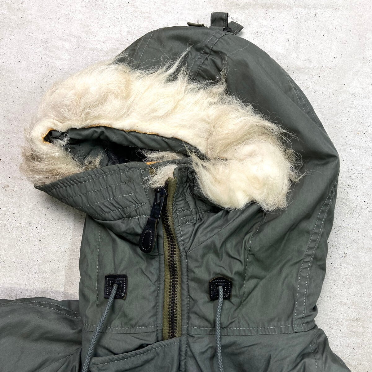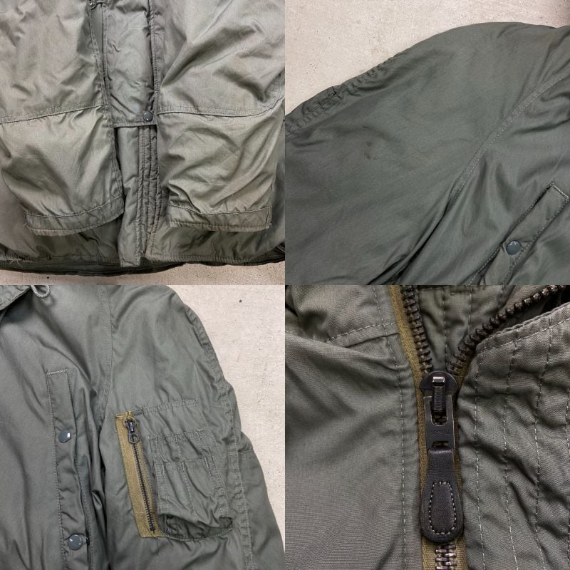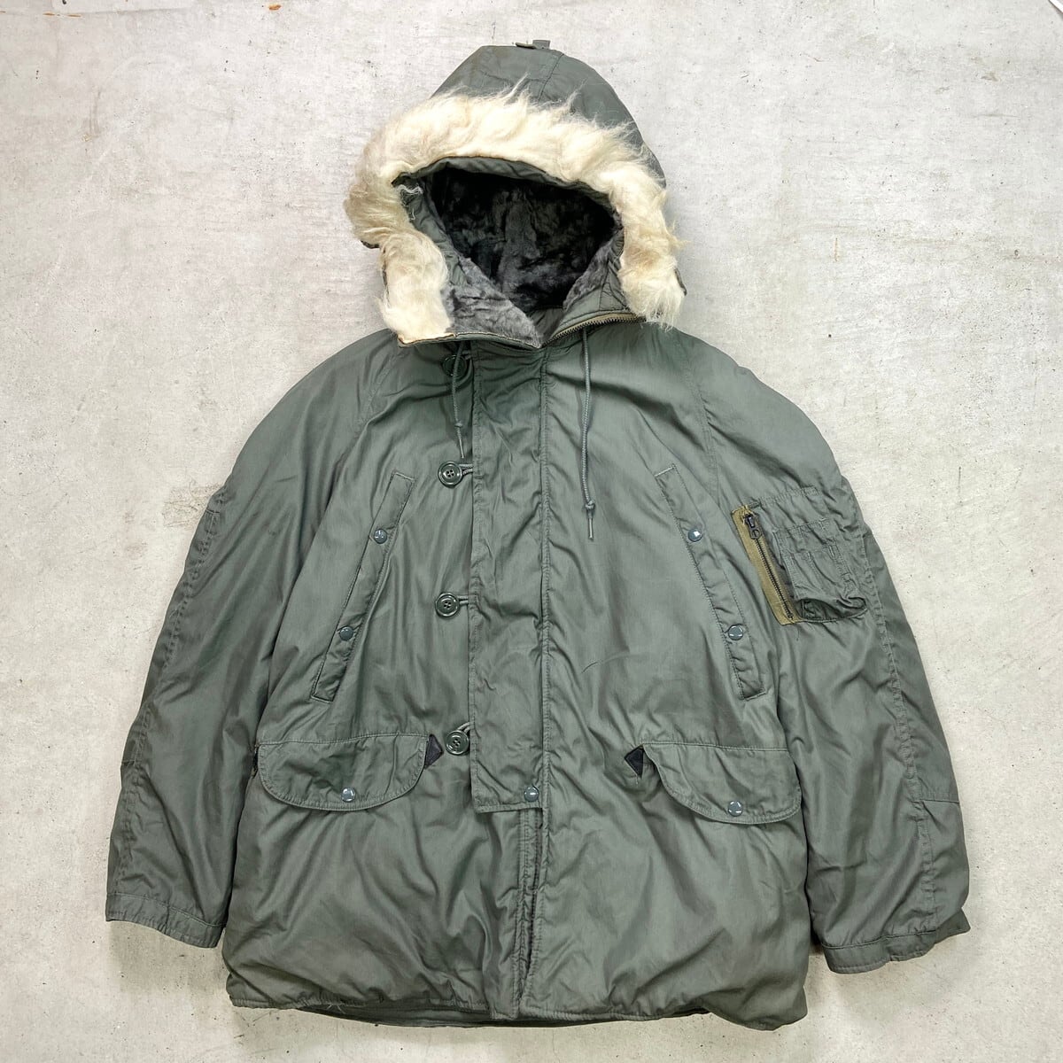 ■古着 USAF U.S.AIR FORCE 米軍実品 N-3B ミリタリー フライトジャケット メンズL相当 78年納品 70s VINTAGE ヴィンテージ USED SCOVILLジップ ライトカーキグリーン【ミリタリージャケット】/カーキグリーン ◎70年代USAF、N-3Bフライトジャケット。 中綿入り、フード部分のボアとファーでミリタリージャケットの中でも特に防寒性抜群なアイテム。 ボリュームのある独特なシルエットが特徴的でバイクウェアなどにも最適です。 【サイズ】表記 MEDIUM(実寸メンズL相当) モデル身長172cm 計測値をご確認ください。 着丈…82 身幅…68.5 裄丈…79.5 袖下…45.5 【素材】表地 コットン80%,ナイロン20% 中綿 ポリエステル100% 【状態】袖やフードトップ付近に薄汚れがございます。 画像にてご確認ください。 【c251215103】 ※古着は洗濯、検品などのケアを行っております。(新品・デッドストックは洗濯していません。) ※モニターの発色により実物と異なる場合がございます。予めご了承ください。 ※ 海外直輸入USED品になります。