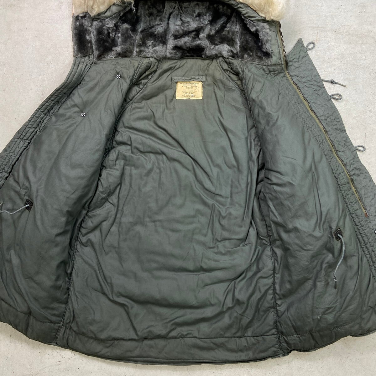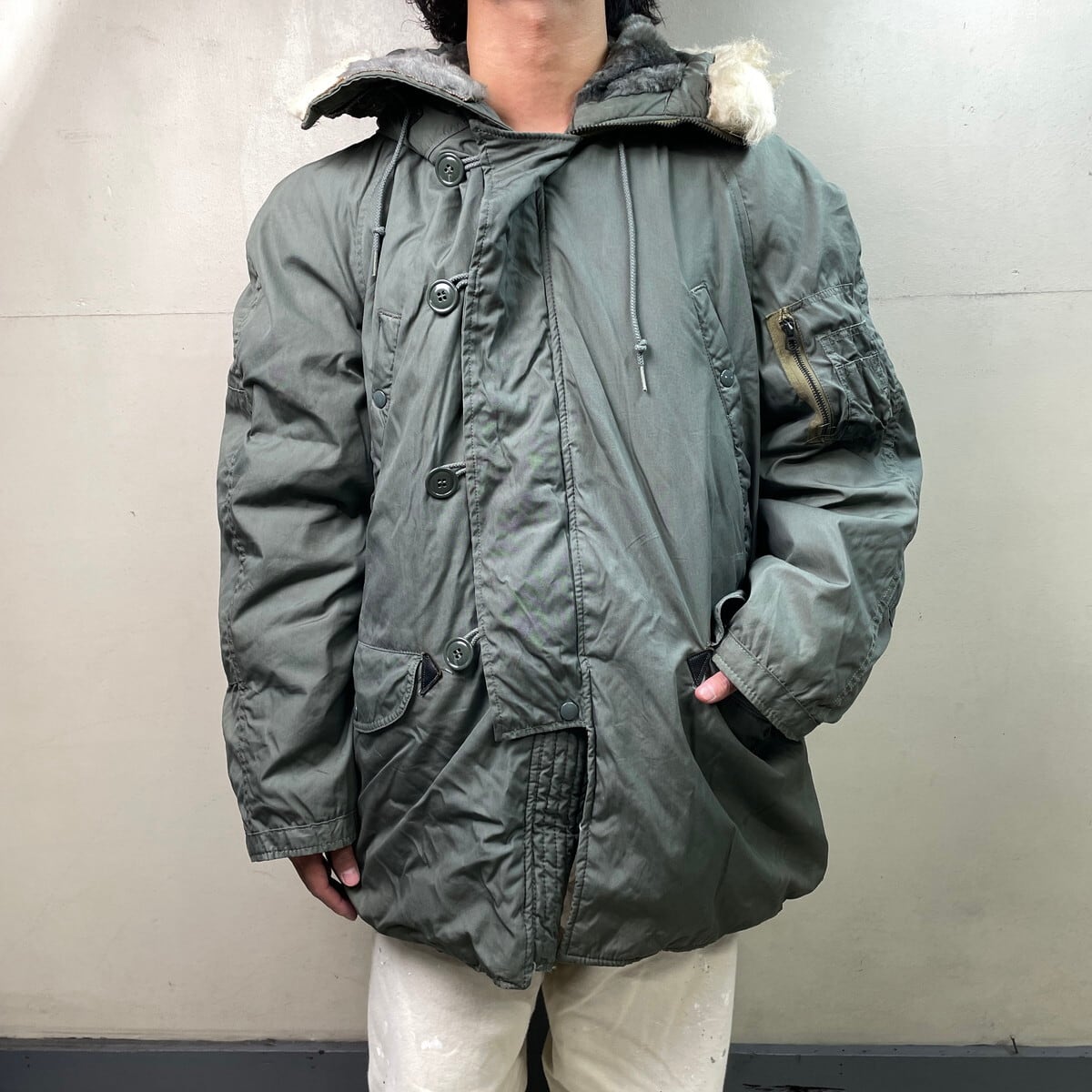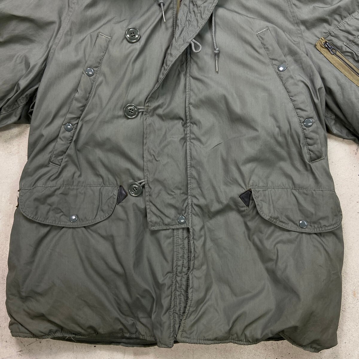 ■古着 USAF U.S.AIR FORCE 米軍実品 N-3B ミリタリー フライトジャケット メンズL相当 78年納品 70s VINTAGE ヴィンテージ USED SCOVILLジップ ライトカーキグリーン【ミリタリージャケット】/カーキグリーン ◎70年代USAF、N-3Bフライトジャケット。 中綿入り、フード部分のボアとファーでミリタリージャケットの中でも特に防寒性抜群なアイテム。 ボリュームのある独特なシルエットが特徴的でバイクウェアなどにも最適です。 【サイズ】表記 MEDIUM(実寸メンズL相当) モデル身長172cm 計測値をご確認ください。 着丈…82 身幅…68.5 裄丈…79.5 袖下…45.5 【素材】表地 コットン80%,ナイロン20% 中綿 ポリエステル100% 【状態】袖やフードトップ付近に薄汚れがございます。 画像にてご確認ください。 【c251215103】 ※古着は洗濯、検品などのケアを行っております。(新品・デッドストックは洗濯していません。) ※モニターの発色により実物と異なる場合がございます。予めご了承ください。 ※ 海外直輸入USED品になります。