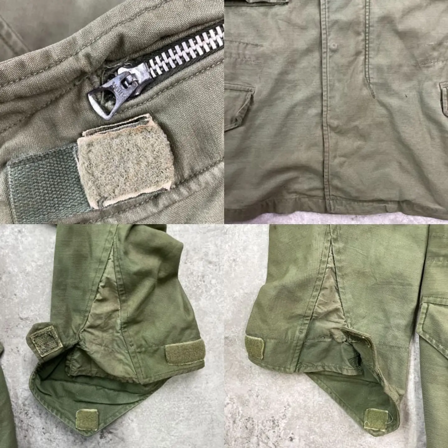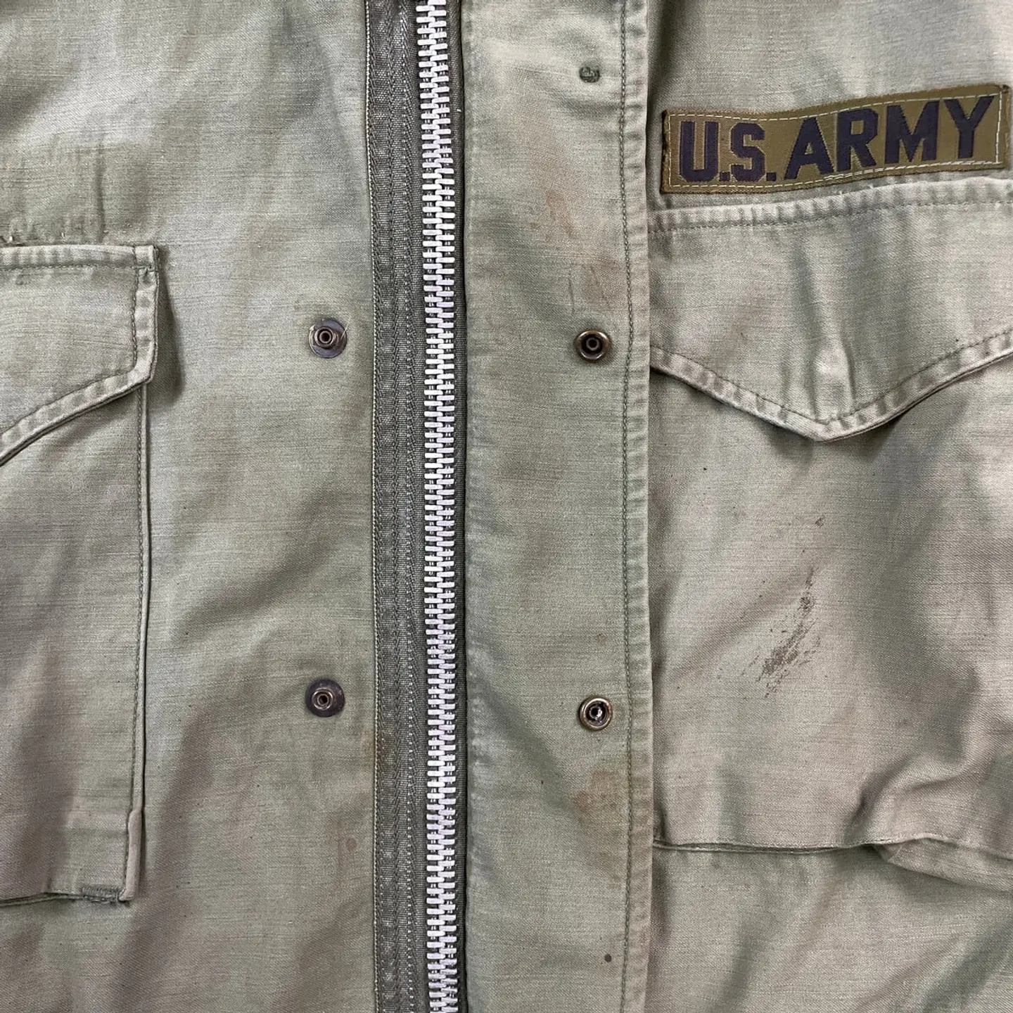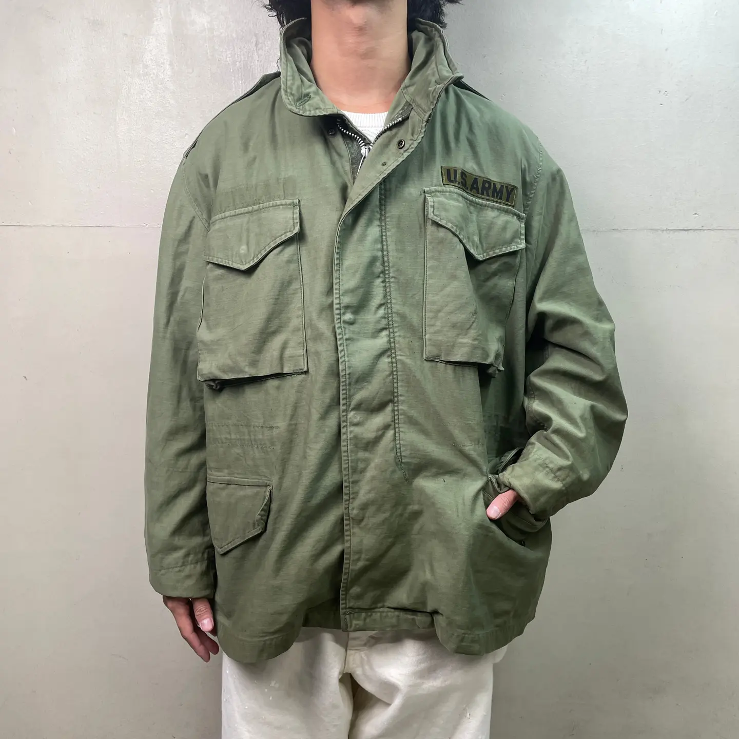 ■古着 U.S.ARMY 米軍実品 M-65 2nd フィールドジャケット メンズXL相当 60年代~ 60s 70s アルミジップ ヴィンテージ VINTAGE USED カーキグリーン【ミリタリージャケット】/カーキグリーン 【サイズ】表記不明(実寸メンズXL相当) モデル身長172cm ※計測値をご確認ください。 着丈…74 身幅…64 肩幅…55.5 袖丈…全長64.5(三角フラップ部分6.5cm) 【生産国】不明 【素材】ナイロン,コットン 【状態】全体的に使用感による薄汚れがあります。 ポケット裏にも汚れがございます。 右袖フラップ付近に小さなダメージがあります。 画像にてご確認ください。 【c251215102】 ※古着は洗濯、検品などのケアを行っております。(新品・デッドストックは洗濯していません。) ※モニターの発色により実物と異なる場合がございます。予めご了承ください。 ※ 海外直輸入USED品になります。