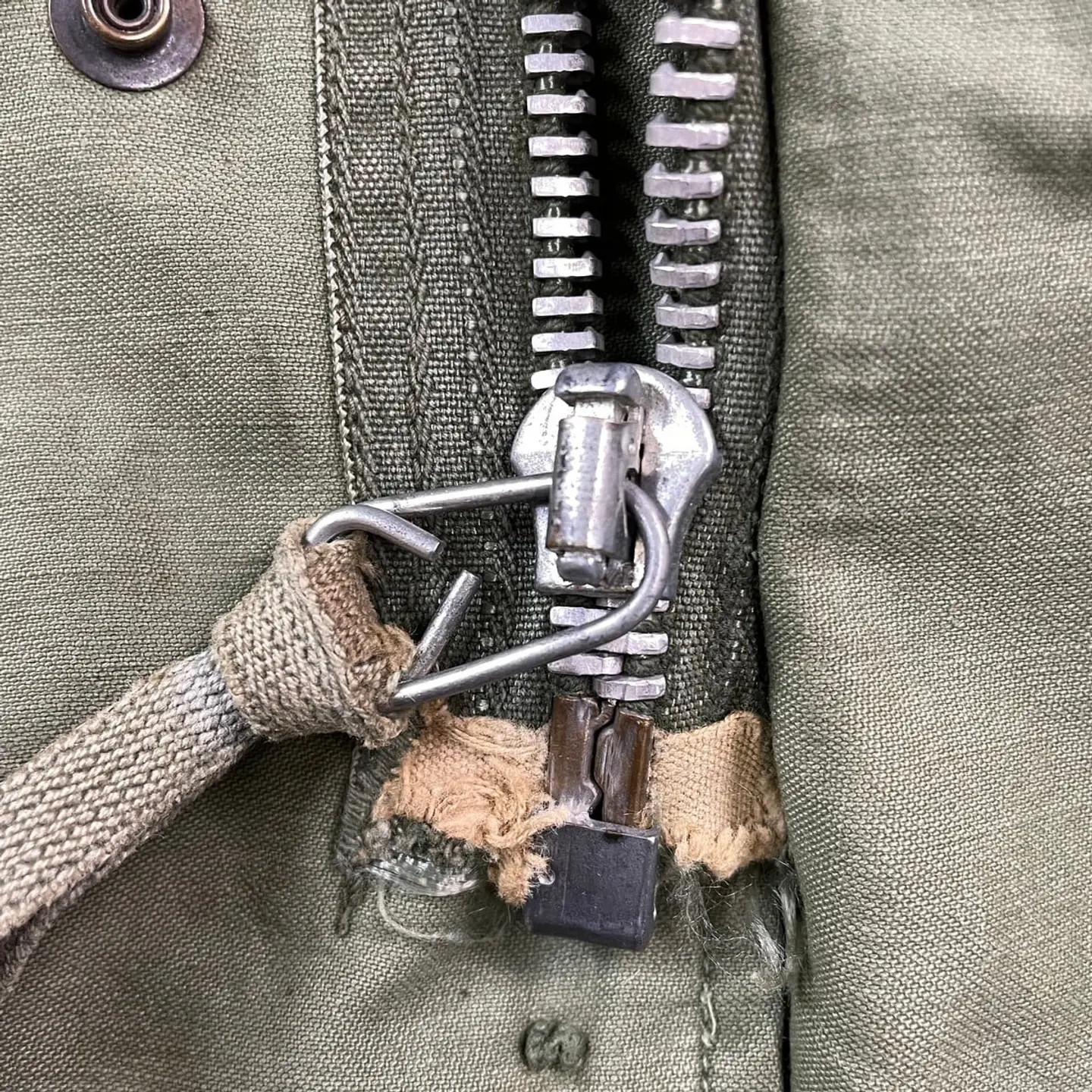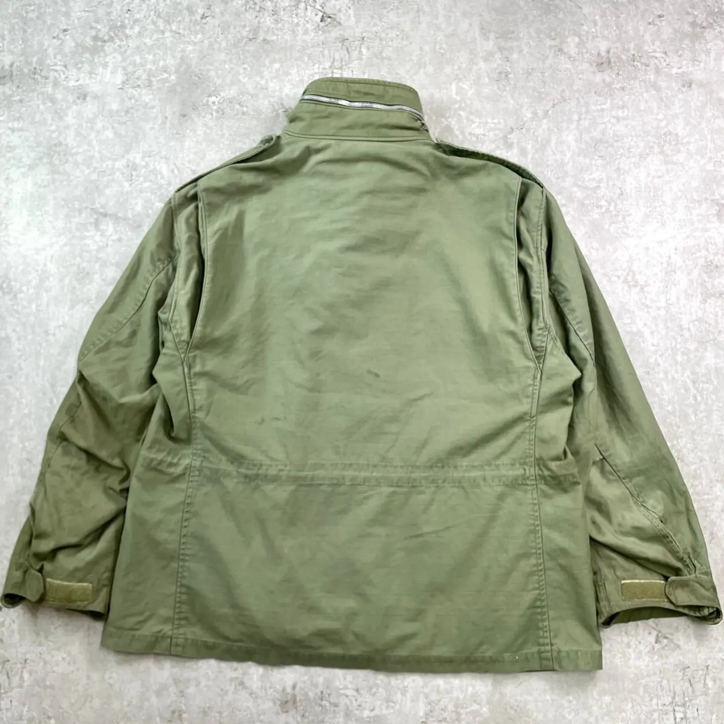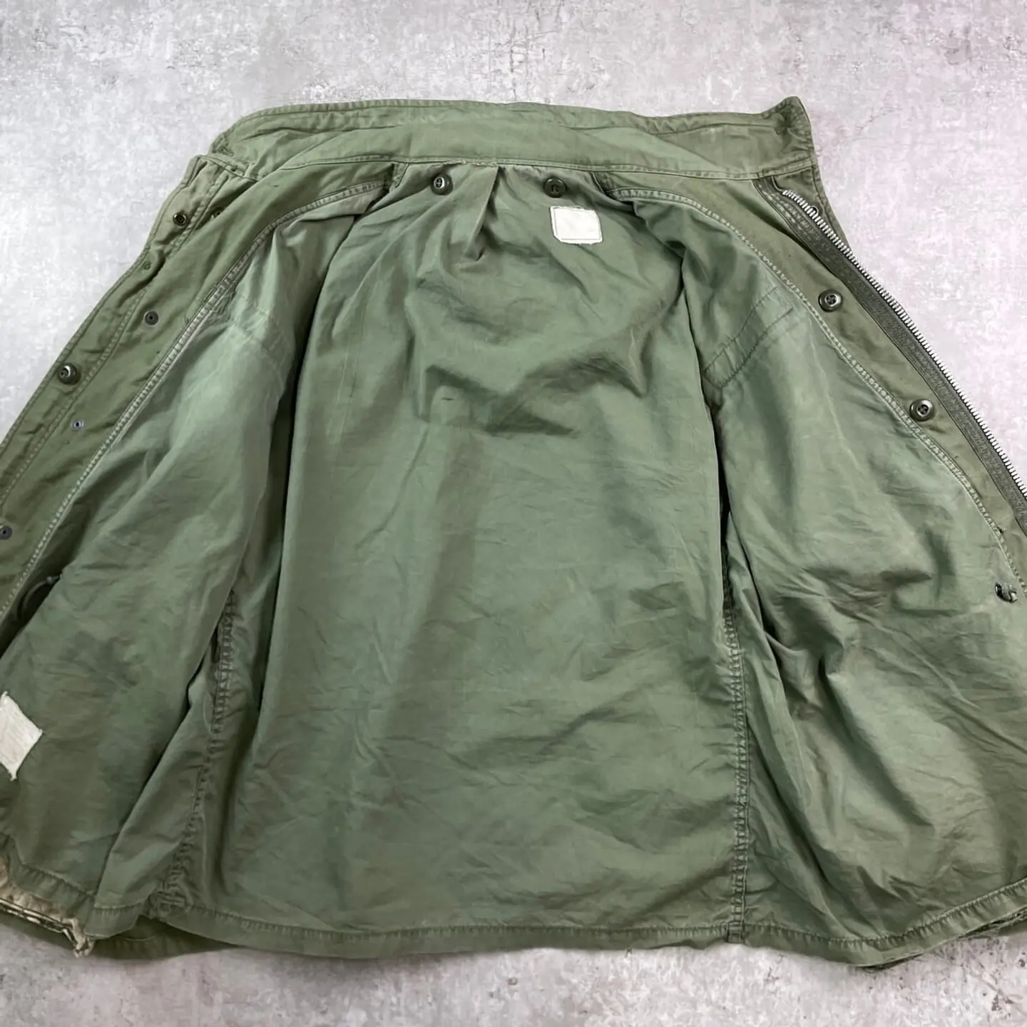 ■古着 U.S.ARMY 米軍実品 M-65 2nd フィールドジャケット メンズXL相当 60年代~ 60s 70s アルミジップ ヴィンテージ VINTAGE USED カーキグリーン【ミリタリージャケット】/カーキグリーン 【サイズ】表記不明(実寸メンズXL相当) モデル身長172cm ※計測値をご確認ください。 着丈…74 身幅…64 肩幅…55.5 袖丈…全長64.5(三角フラップ部分6.5cm) 【生産国】不明 【素材】ナイロン,コットン 【状態】全体的に使用感による薄汚れがあります。 ポケット裏にも汚れがございます。 右袖フラップ付近に小さなダメージがあります。 画像にてご確認ください。 【c251215102】 ※古着は洗濯、検品などのケアを行っております。(新品・デッドストックは洗濯していません。) ※モニターの発色により実物と異なる場合がございます。予めご了承ください。 ※ 海外直輸入USED品になります。