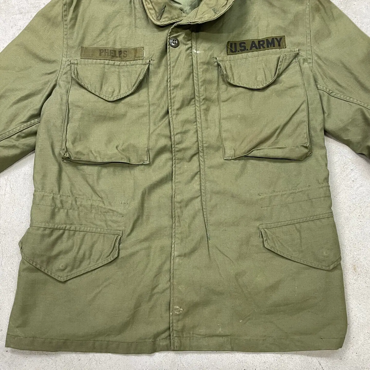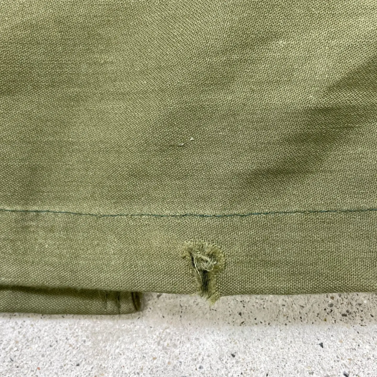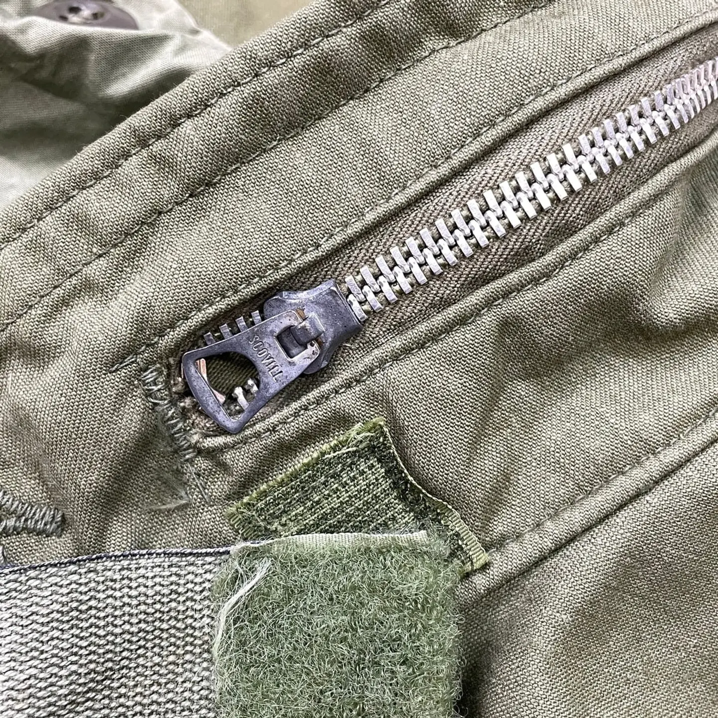 ■古着 U.S.ARMY 米軍実品 M-65 2nd フィールドジャケット メンズS相当 60年代~ 60s アルミジップ ヴィンテージ VINTAGE USED SCOVILLジップ カーキグリーン【ミリタリージャケット】/カーキグリーン 【サイズ】表記不明(実寸メンズS相当) モデル身長172cm ※計測値をご確認ください。 着丈…71 身幅…55 肩幅…48 袖丈…全長64(三角フラップ部分7cm) 【生産国】不明 【素材】ナイロン,コットン 【状態】フロントに薄汚れ、袖にダメージや汚れがあります。 ジップ元が若干緩くなっております。 画像にてご確認ください。 【c251212117】 ※古着は洗濯、検品などのケアを行っております。(新品・デッドストックは洗濯していません。) ※モニターの発色により実物と異なる場合がございます。予めご了承ください。 ※ 海外直輸入USED品になります。