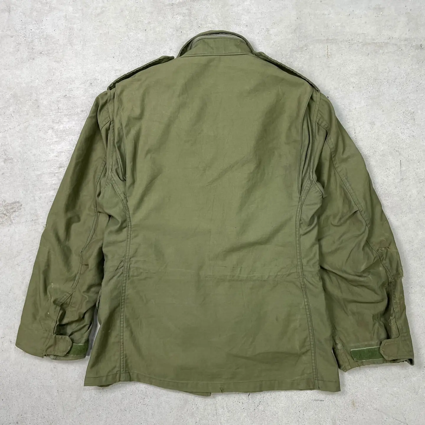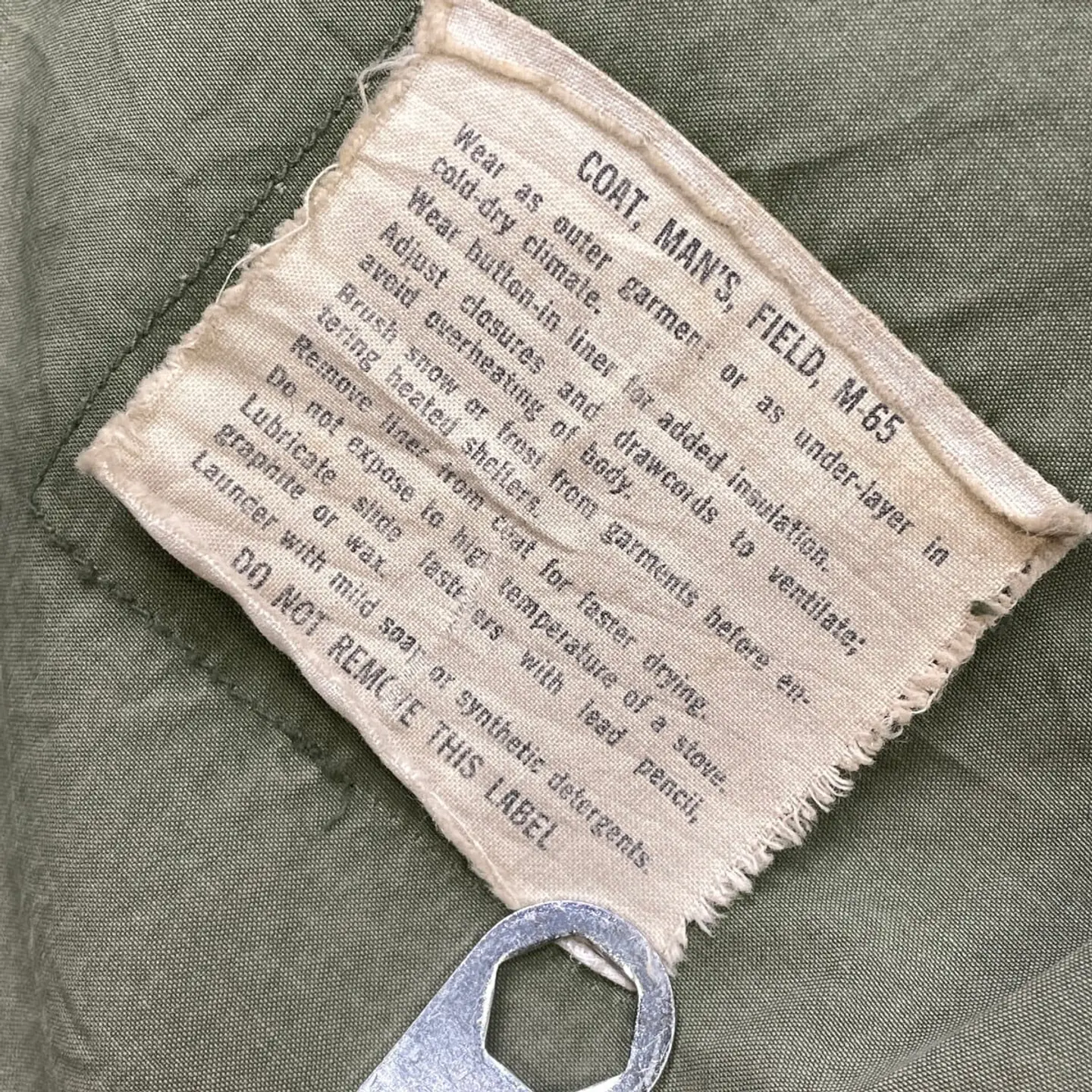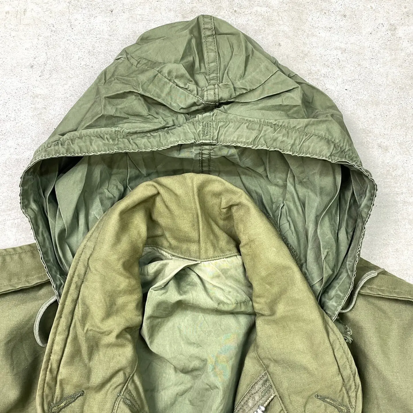 ■古着 U.S.ARMY 米軍実品 M-65 2nd フィールドジャケット メンズS相当 60年代~ 60s アルミジップ ヴィンテージ VINTAGE USED SCOVILLジップ カーキグリーン【ミリタリージャケット】/カーキグリーン 【サイズ】表記不明(実寸メンズS相当) モデル身長172cm ※計測値をご確認ください。 着丈…71 身幅…55 肩幅…48 袖丈…全長64(三角フラップ部分7cm) 【生産国】不明 【素材】ナイロン,コットン 【状態】フロントに薄汚れ、袖にダメージや汚れがあります。 ジップ元が若干緩くなっております。 画像にてご確認ください。 【c251212117】 ※古着は洗濯、検品などのケアを行っております。(新品・デッドストックは洗濯していません。) ※モニターの発色により実物と異なる場合がございます。予めご了承ください。 ※ 海外直輸入USED品になります。