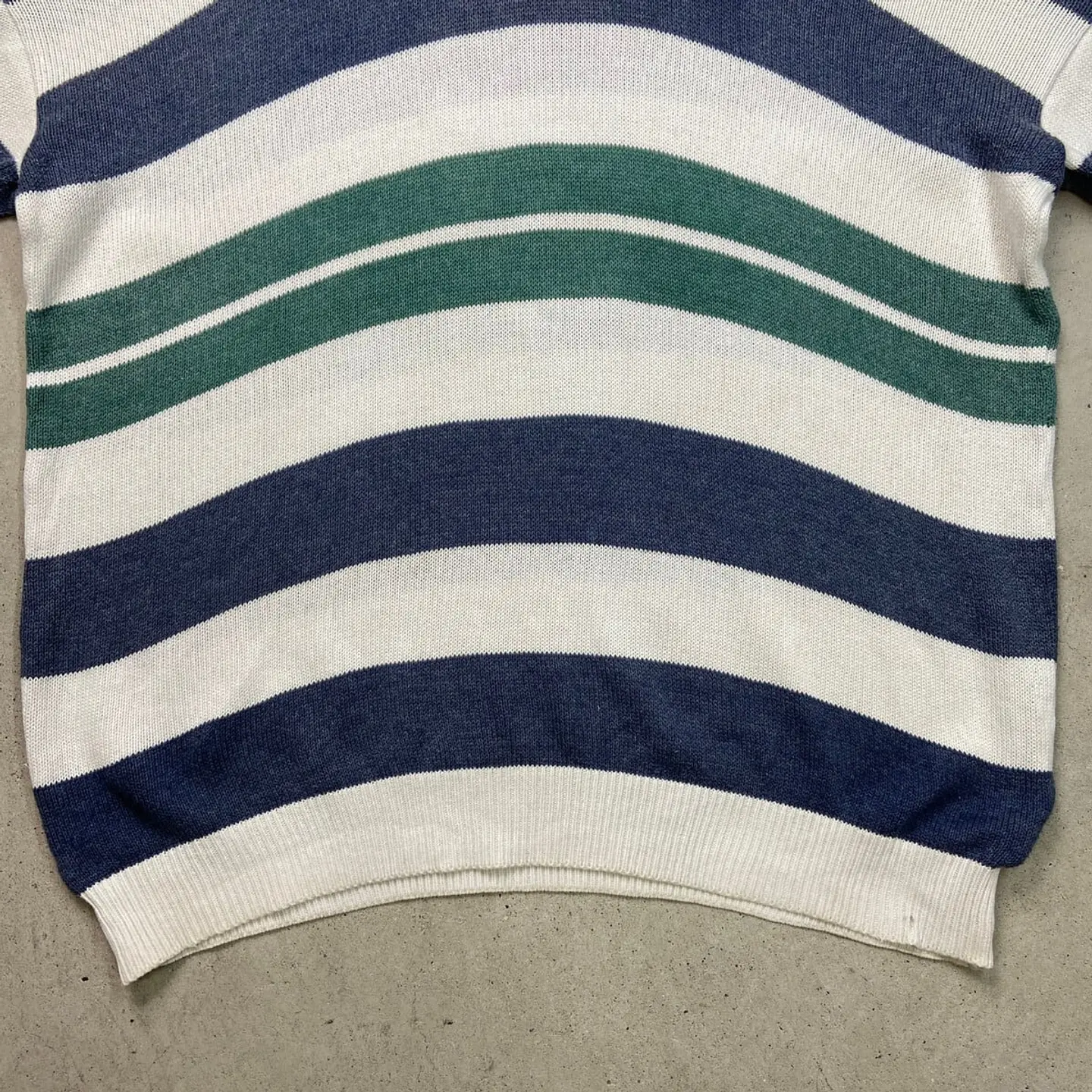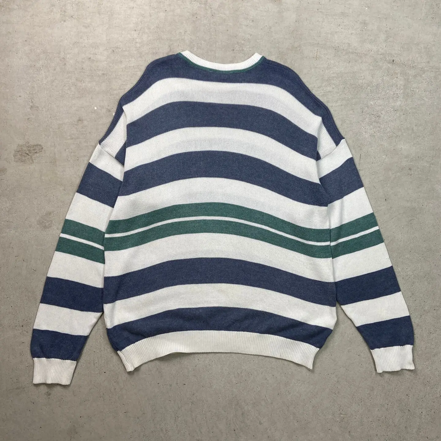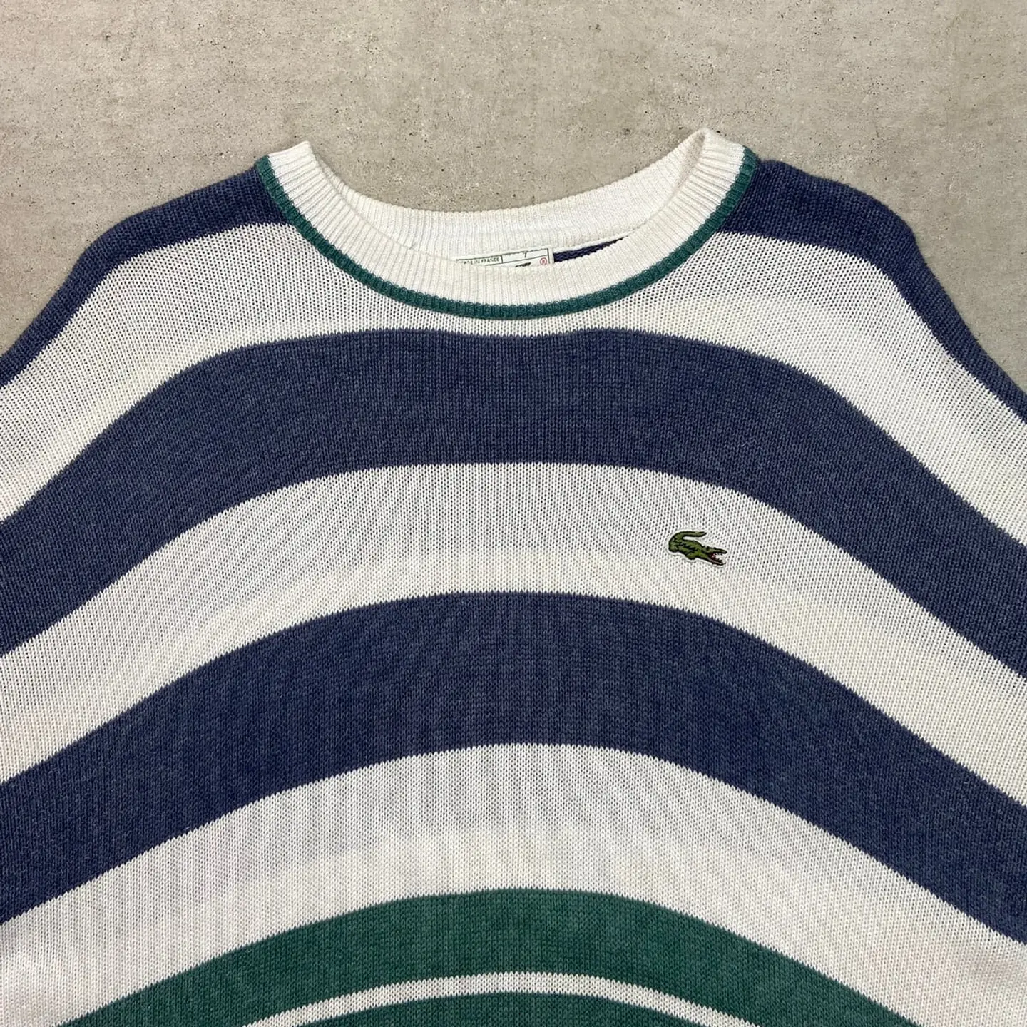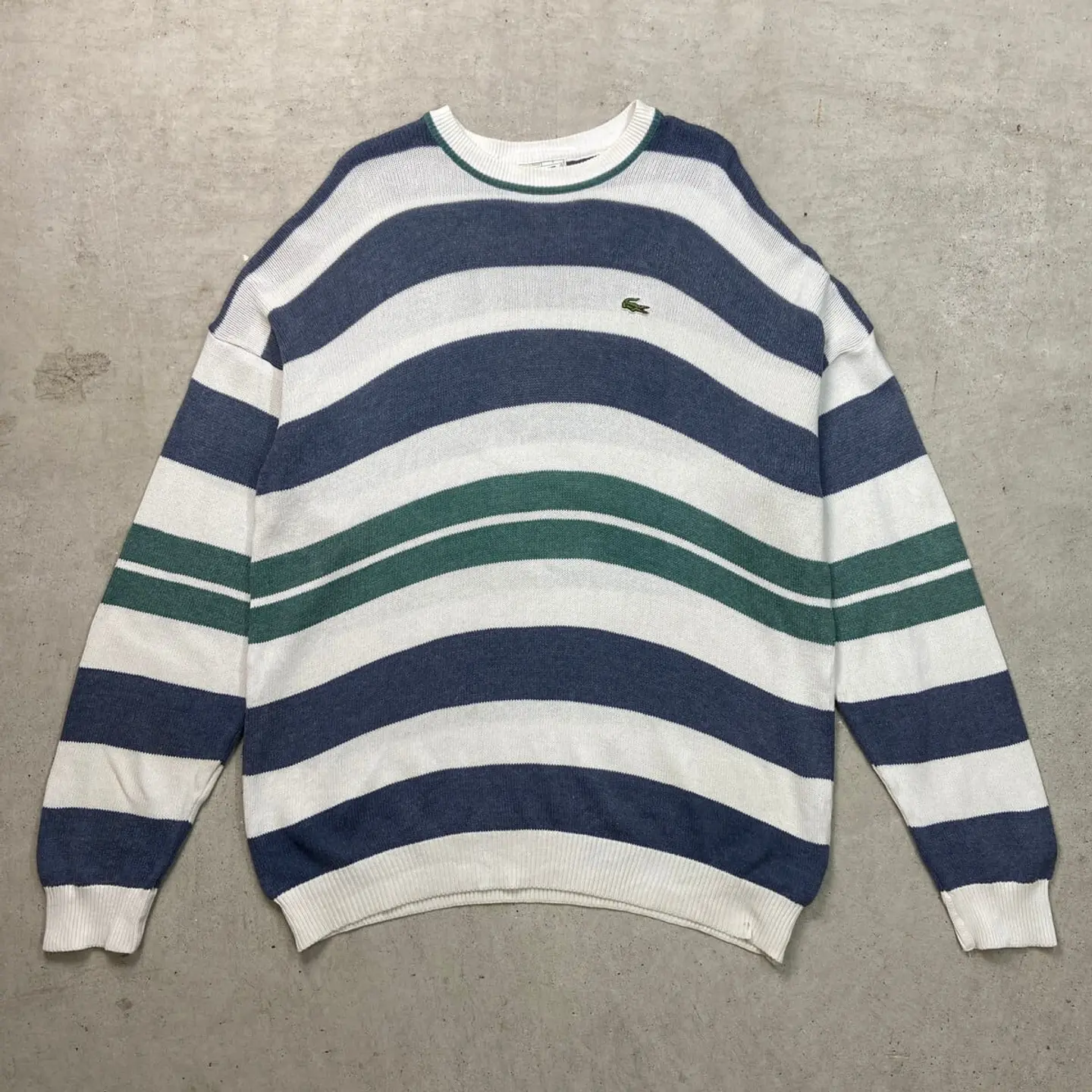 ■90年代 LACOSTE ラコステ ボーダー コットンニットセーター メンズM 古着 90s VINTAGE ヴィンテージ エメラルドグリーン ネイビー 緑 紺色【ニットセーター】/マルチカラー 【ブランド】LACOSTE ラコステ 【サイズ】表記 7(実寸メンズ2XL相当) ※計測値をご確認ください。 着丈…72 身幅…68 肩幅…77 袖丈…62 【生産国】フランス製 【素材】コットン80%、アクリル20% 【状態】袖やフロント裾に汚れがございます。 肩や袖が使用感により、生地が伸びております。 画像にてご確認ください。 【c251212105】 ※古着は洗濯、検品などのケアを行っております。(新品・デッドストックは洗濯していません。) ※モニターの発色により実物と異なる場合がございます。予めご了承ください。 ※ 海外直輸入USED品になります。
