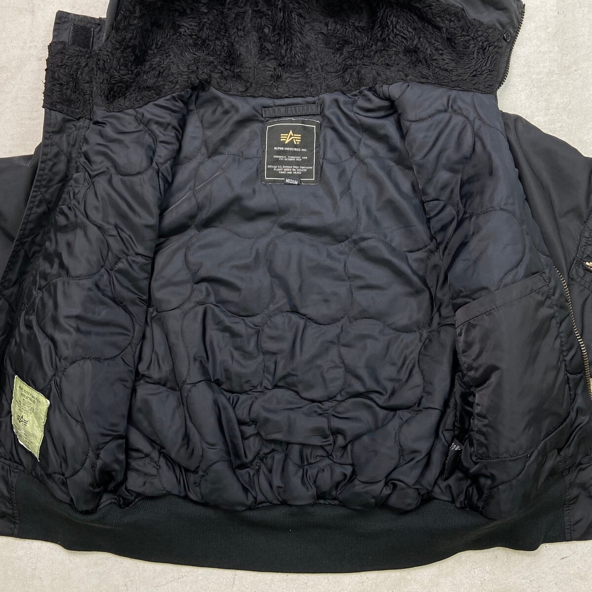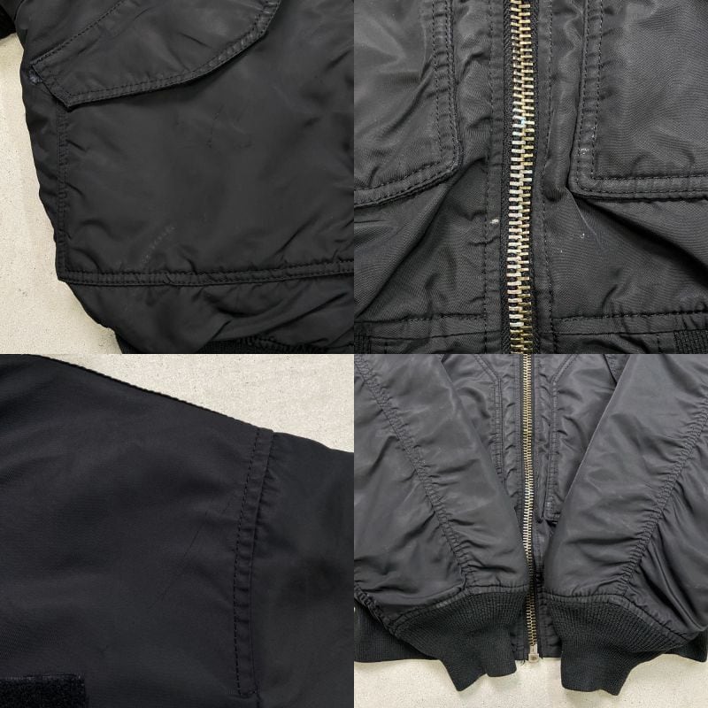 ■古着 ALPHA INDUSTRIES アルファインダストリーズ CWU-45P ボアフード付き ミリタリー フライトジャケット メンズL相当 古着 民間品 中綿入り ボンバージャケット 黒【ミリタリージャケット】/ブラック 【ブランド】ALPHA INDUSTRIES 【サイズ】表記 MEDIUM(実寸メンズL相当) モデル身長172cm 計測値をご確認ください。 着丈…61.5 身幅…60.5 肩幅…52.5 袖丈…63 【生産国】不明 【素材】ナイロン100% 中綿 ポリエステル100% 【状態】フロントの左肩やポケット付近に傷があります。 バックサイド下部に一部表面劣化がございます。 画像にてご確認ください。 【c251210119】 ※古着は洗濯、検品などのケアを行っております。(新品・デッドストックは洗濯していません。) ※モニターの発色により実物と異なる場合がございます。予めご了承ください。 ※ 海外直輸入USED品になります。