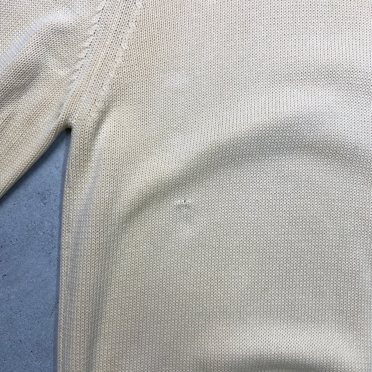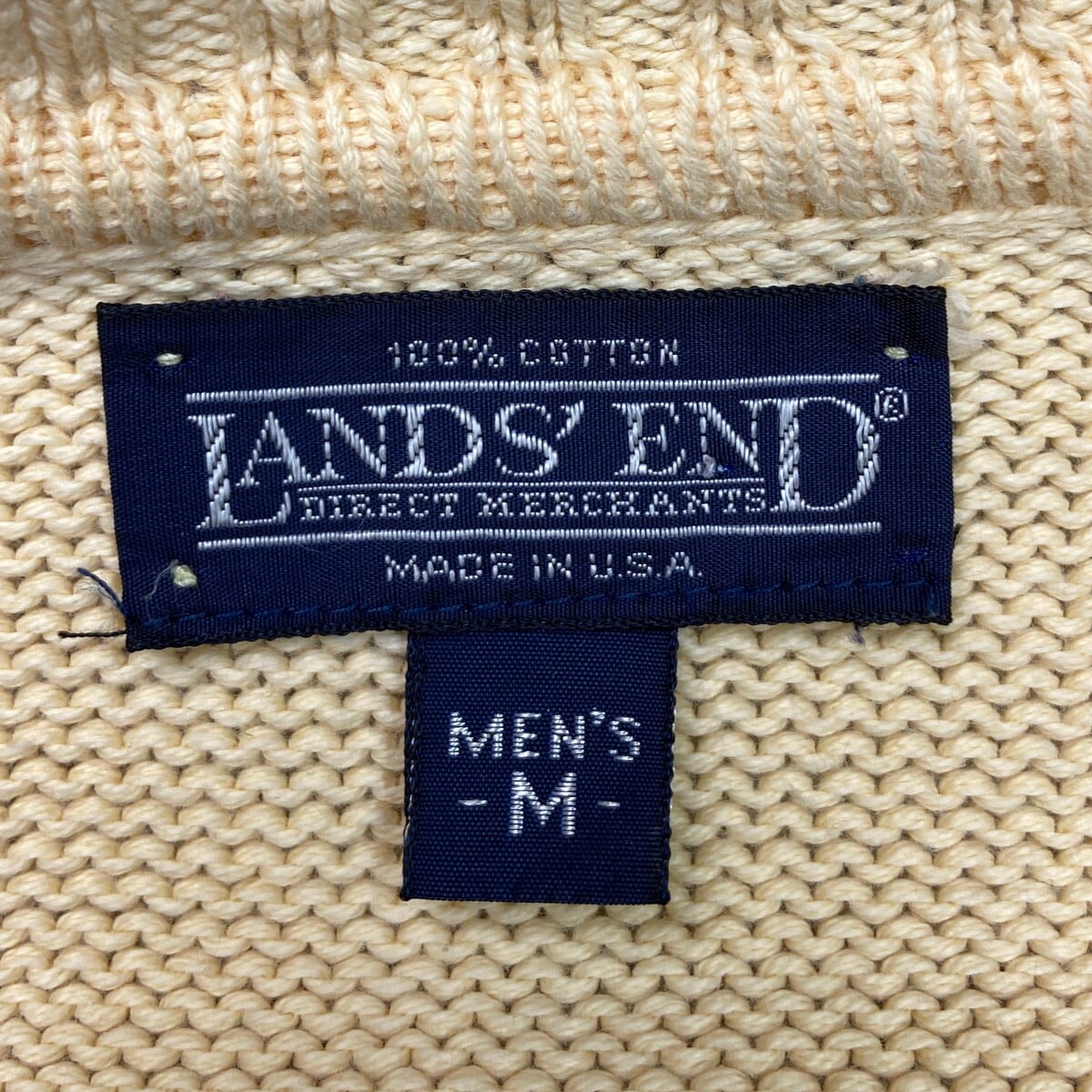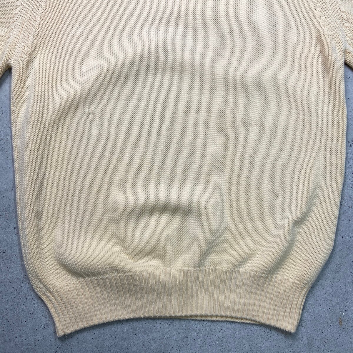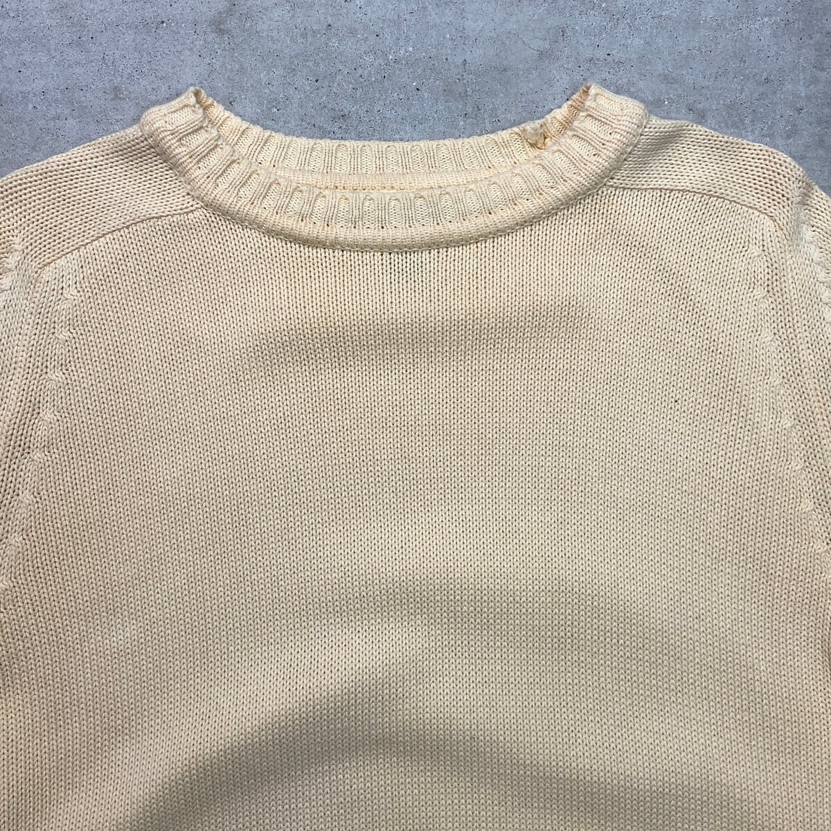 ■古着 LANDS'END ランズエンド コットンニットセーター メンズM 90年代 90s VINTAGE ヴィンテージ USA製 USED 無地 クルーネック ライトイエロー【ニットセーター】/イエロー ◎実物はカスタードクリーム色に近いです。 【ブランド】 LANDS'END ランズエンド 【サイズ】表記 M ※計測値をご確認ください。 着丈…68.5 身幅…55.5 裄丈…83 袖丈(袖下計測)…49 【生産国】USA製 【素材】コットン100% 【状態】フロントに一部ダメージがございます。 袖に目立たない程度の薄汚れがあります。 画像にてご確認ください。 【c251210108】 ※古着は洗濯、検品などのケアを行っております。(新品・デッドストックは洗濯していません。) ※モニターの発色により実物と異なる場合がございます。予めご了承ください。 ※ 海外直輸入USED品になります。