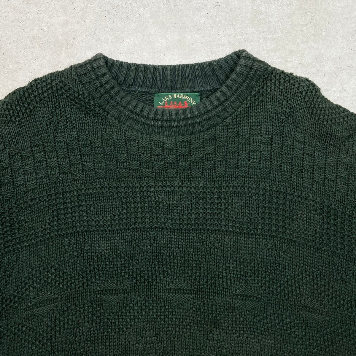 ■古着 LAKE HARMONY コットンニットセーター メンズXL 90年代 90s VINTAGE ヴィンテージ USA製 USED 立体編み 深緑色【ニットセーター】/グリーン 【ブランド】LAKE HARMONY 【サイズ】表記 XL ※計測値をご確認ください。 着丈…67.5 身幅…66 肩幅…70 袖丈…64.5 【生産国】USA製 【素材】コットン100% 【状態】多少の使用感は御座いますが、目立ったダメージや汚れは御座いません。 画像にてご確認ください。 【c251210102】 ※古着は洗濯、検品などのケアを行っております。(新品・デッドストックは洗濯していません。) ※モニターの発色により実物と異なる場合がございます。予めご了承ください。 ※ 海外直輸入USED品になります。