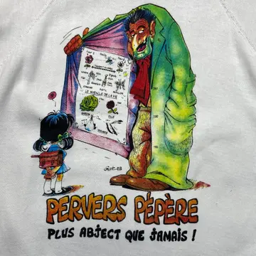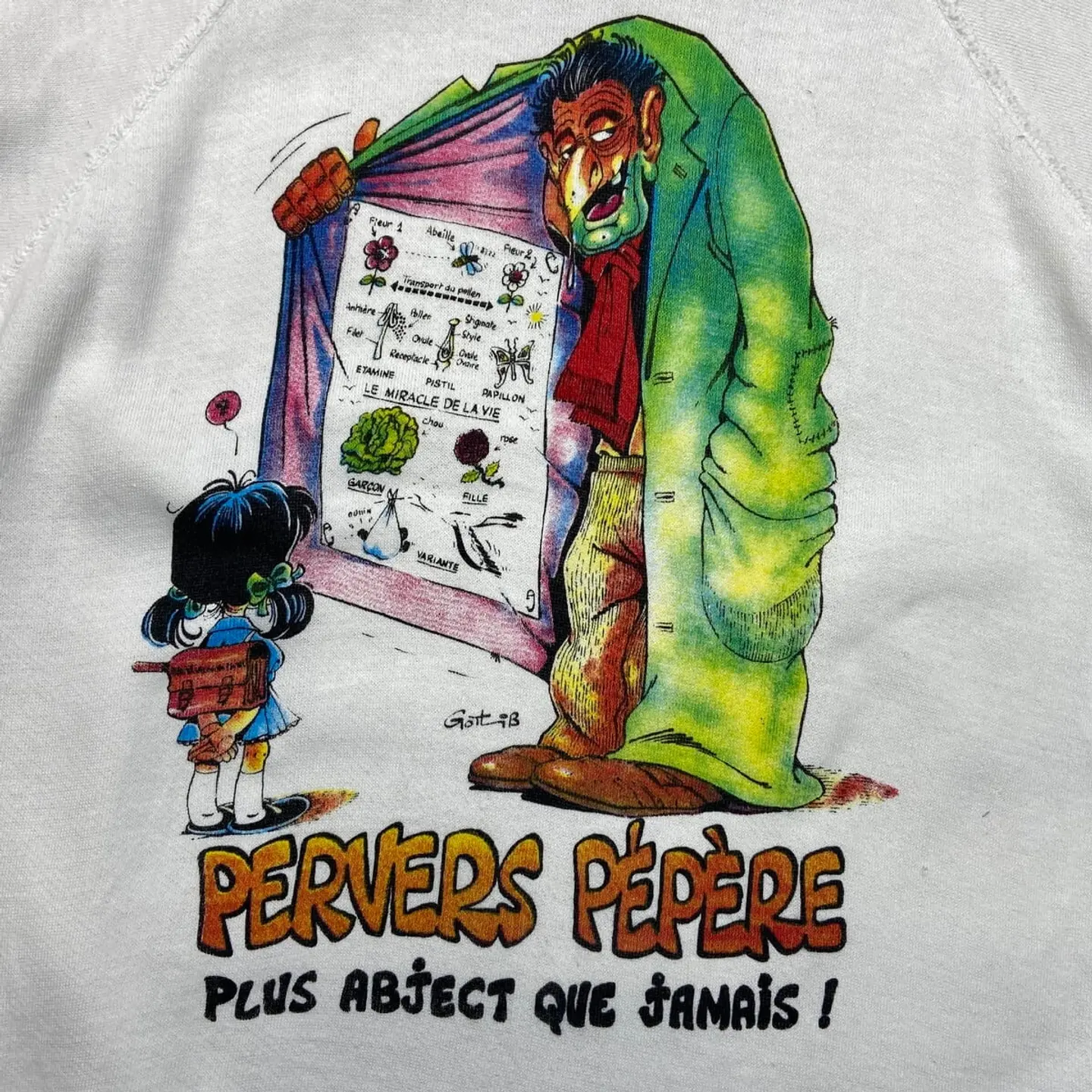 ■古着 ユーロ キャラクタープリント スウェットシャツ メンズXS レディースS相当 80s ヴィンテージ VINTAGE USA製 USED ジョーク ファニー フランス風刺漫画 フルイド・グラシアル ラグランスリーブ 白色【スウェット】/ホワイト 【サイズ】表記 M(実寸メンズXS相当) ※計測値をご確認ください。 着丈…58.5 身幅…47 肩幅…72 袖丈…52.5 【生産国】USA製 【素材】不明(おそらくコットンとアクリルの混紡かと思われます) 【状態】フロント左わき腹付近に一部ほつれ、袖口にシミ汚れがあります。 画像にてご確認ください。 【c251209109】 ※古着は洗濯、検品などのケアを行っております。(新品・デッドストックは洗濯していません。) ※モニターの発色により実物と異なる場合がございます。予めご了承ください。 ※ 海外直輸入USED品になります。