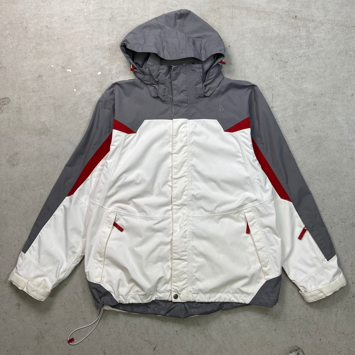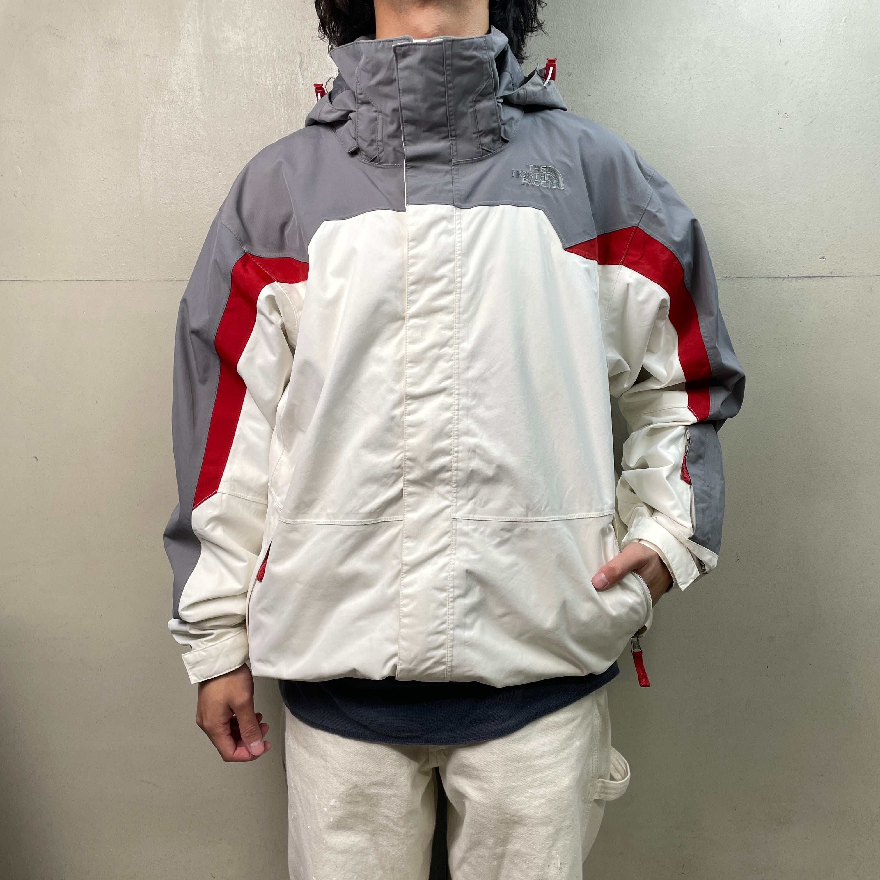 ■古着 THE NORTH FACE ザノースフェイス マウンテンパーカー メンズL USED HYVENT ハイベント 切り替えデザイン ナイロンジャケット フード着脱式 裾ドローコード付き ホワイト グレー レッド【アウトドアジャケット】/マルチカラー 【ブランド】THE NORTH FACE ザ ノースフェイス 【サイズ】表記 MENS L モデル身長172cm ※計測値をご確認ください。 着丈…78 身幅…63.5 肩幅…53.5 袖丈…64 【生産国】中国製 【素材】ナイロン100% 【状態】フロント、バックサイド中心付近、袖に汚れがございます。 その他目立ったダメージはありません。 画像にてご確認ください。 【c251208104】 ※古着は洗濯、検品などのケアを行っております。(新品・デッドストックは洗濯していません。) ※モニターの発色により実物と異なる場合がございます。予めご了承ください。 ※ 海外直輸入USED品になります。